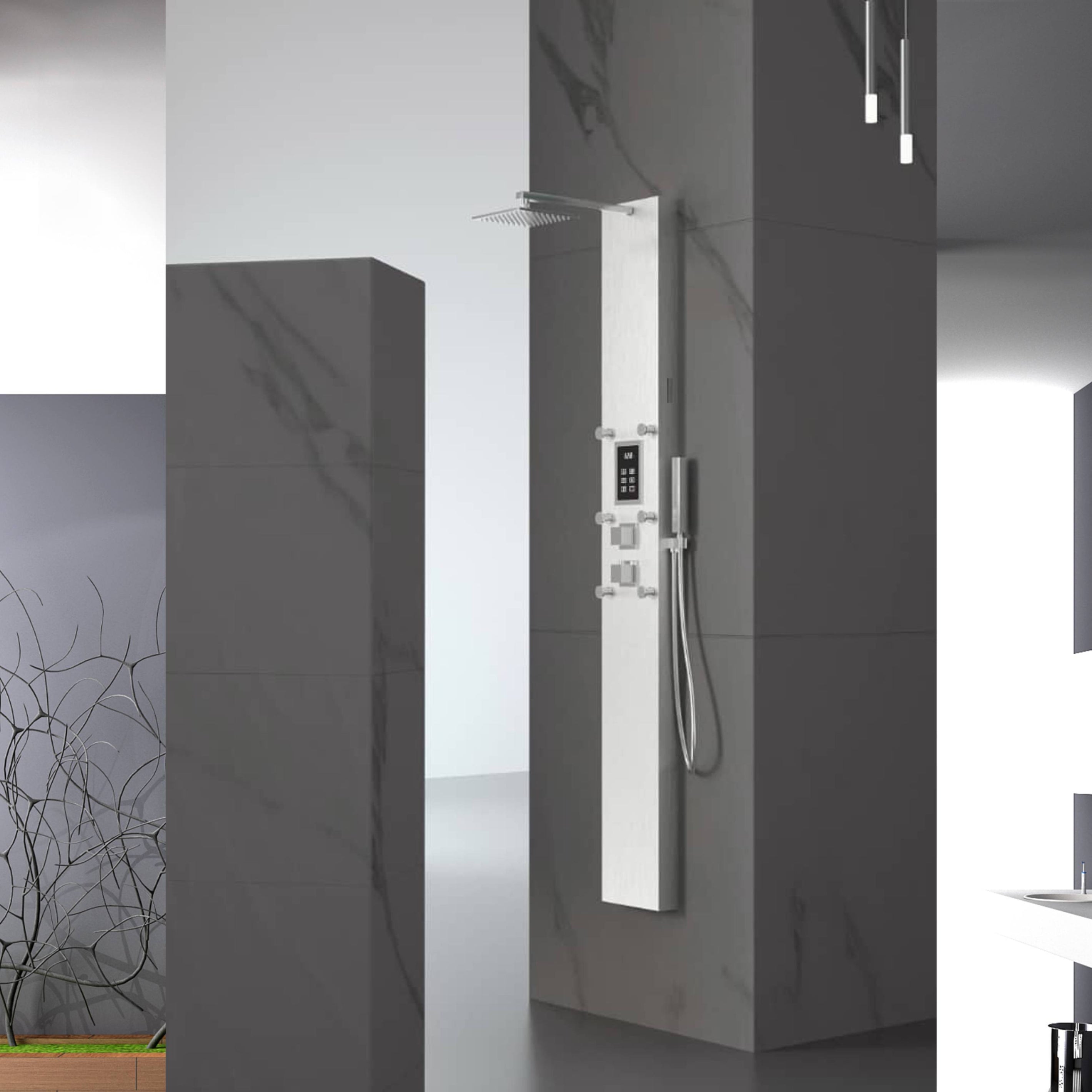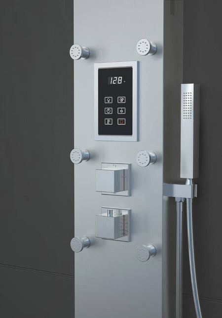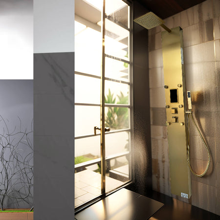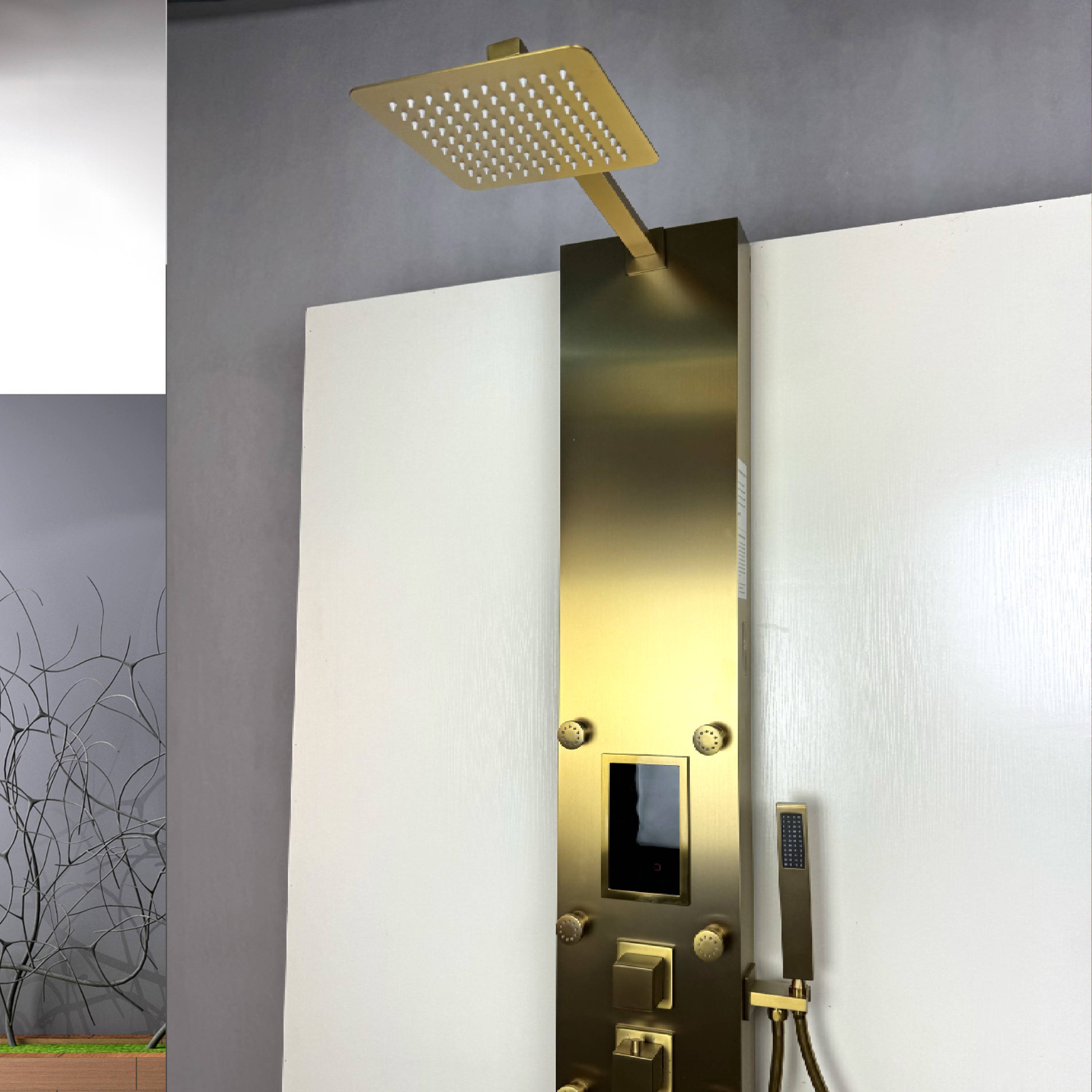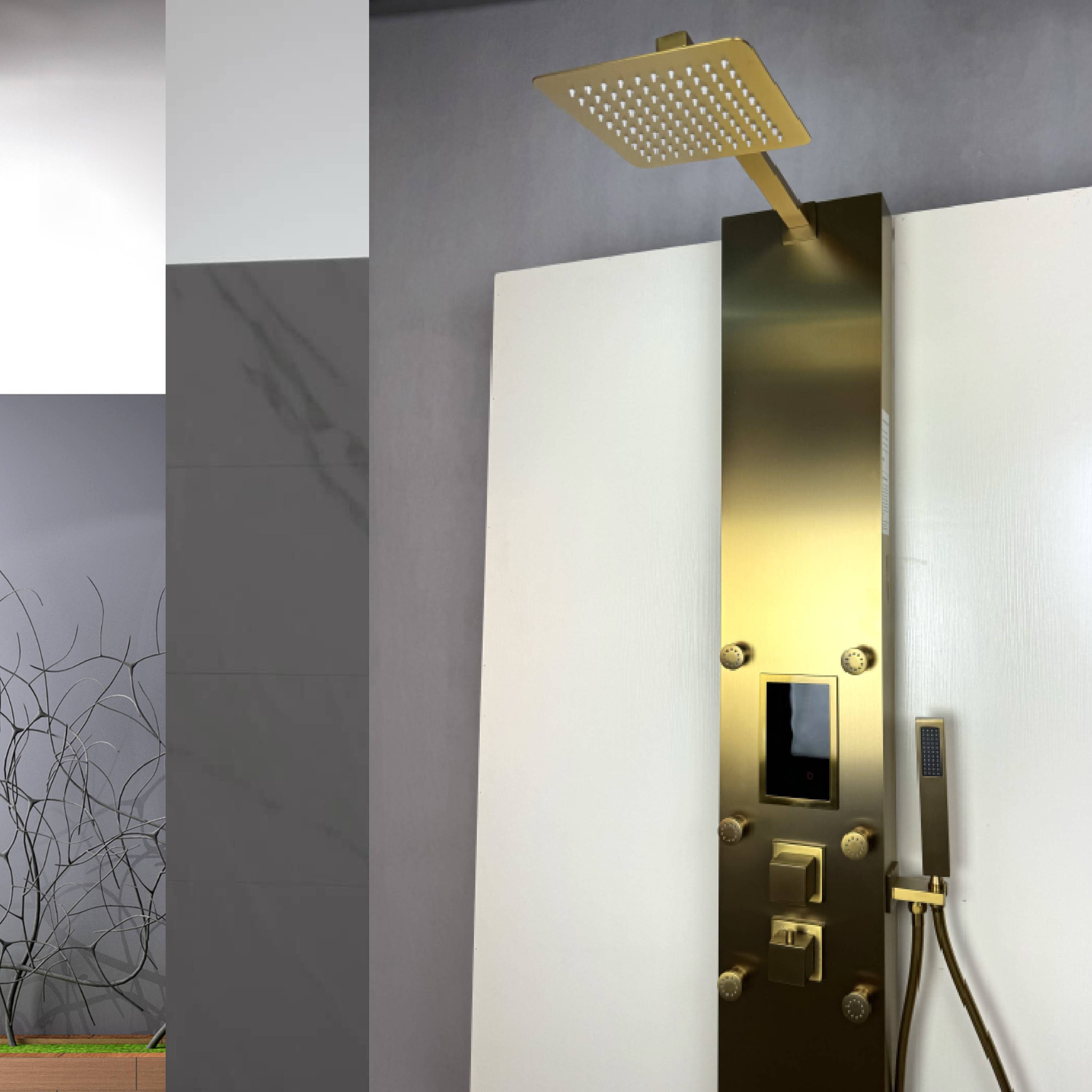Steam Shower Panel Bluetooth Music, Brushed Nicke or Brushed Gold Shower Panel with Fahrenheit Display, Rainfall, Body Jets, and 6 KW Steam Generator