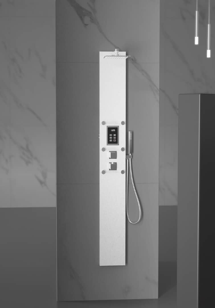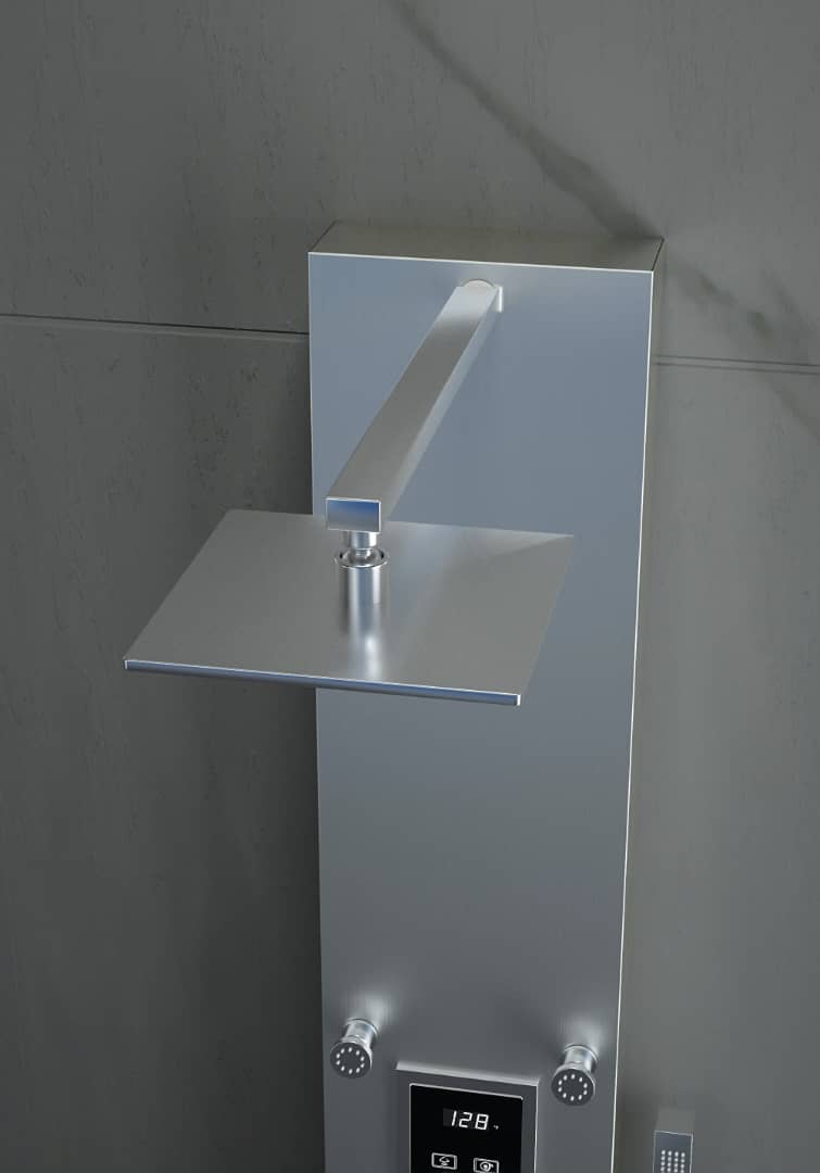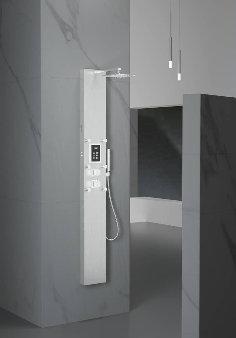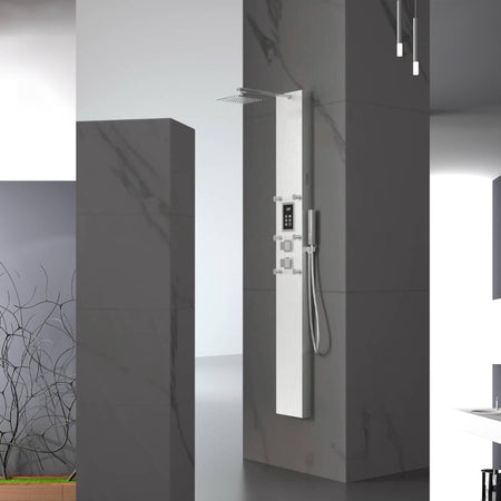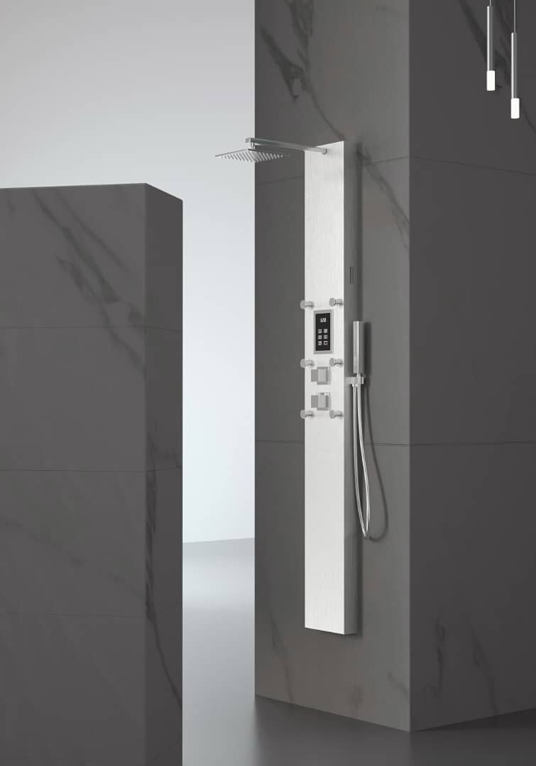 Steam Shower Panel Bluetooth Music, Brushed Nicke or Brushed Gold Shower Panel with Fahrenheit Display, Rainfall, Body Jets, and 6 KW Steam Generator
