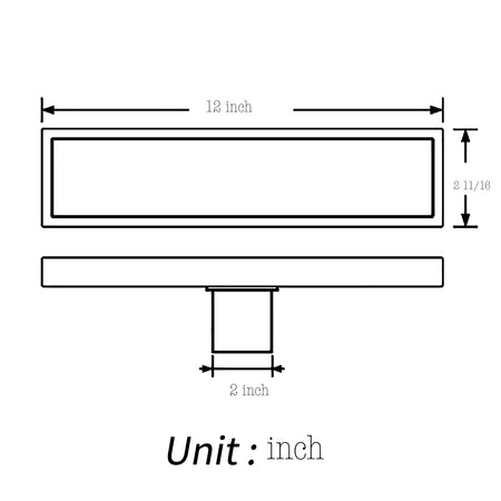 The Linear Shower Drain is expertly crafted with precise dimensions of 11.8 inches in length, 2 11/16 inches in width, and features a central outlet of 2 inches. With a high flow capability of 36 L/min, this drain efficiently channels water away, preventing any water accumulation or unpleasant smells. The base flange is designed to connect seamlessly to the drain pipe, fitting standard U.S. plumbing connections with ease.