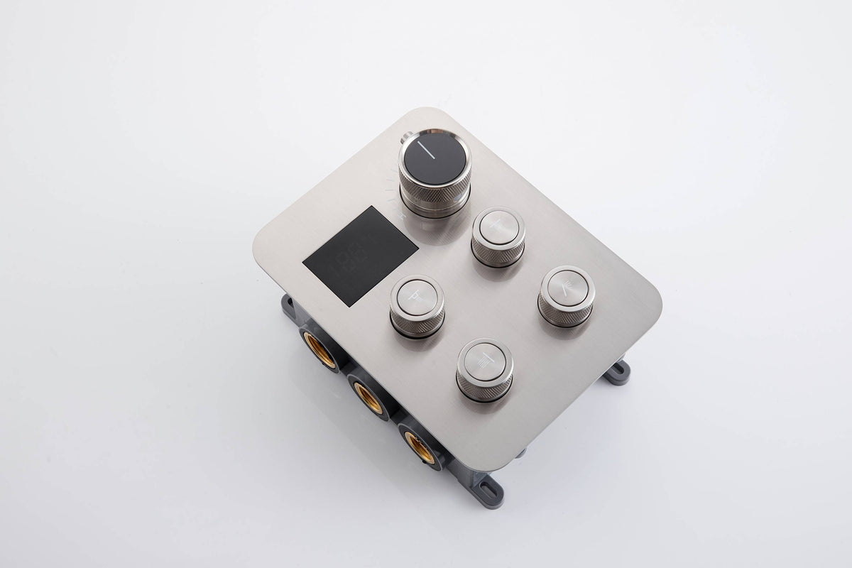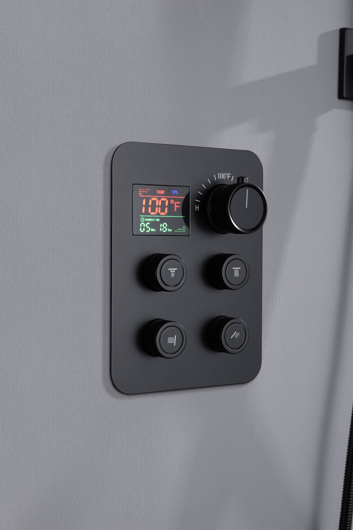 4-Function Thermostatic Valve: This feature allows all functions to work simultaneously or separately, offering a customizable shower experience. The thermostatic valve maintains a constant, desired water temperature, ensuring your safety with an anti-scald feature.The digital display for the faucet operates solely through water flow, eliminating the need for batteries.