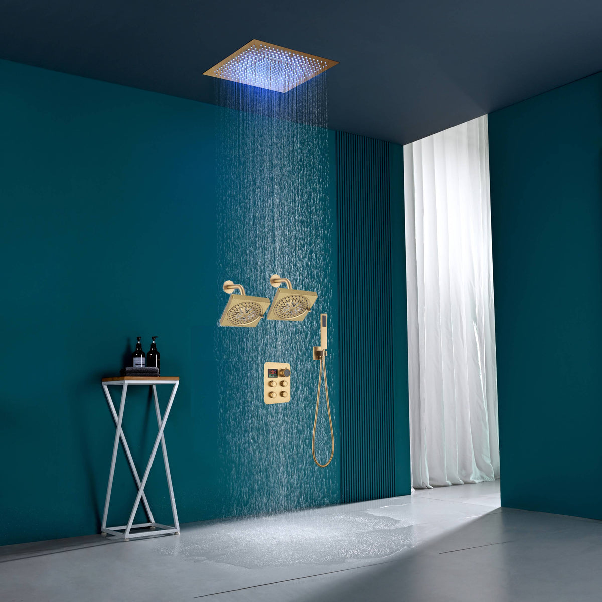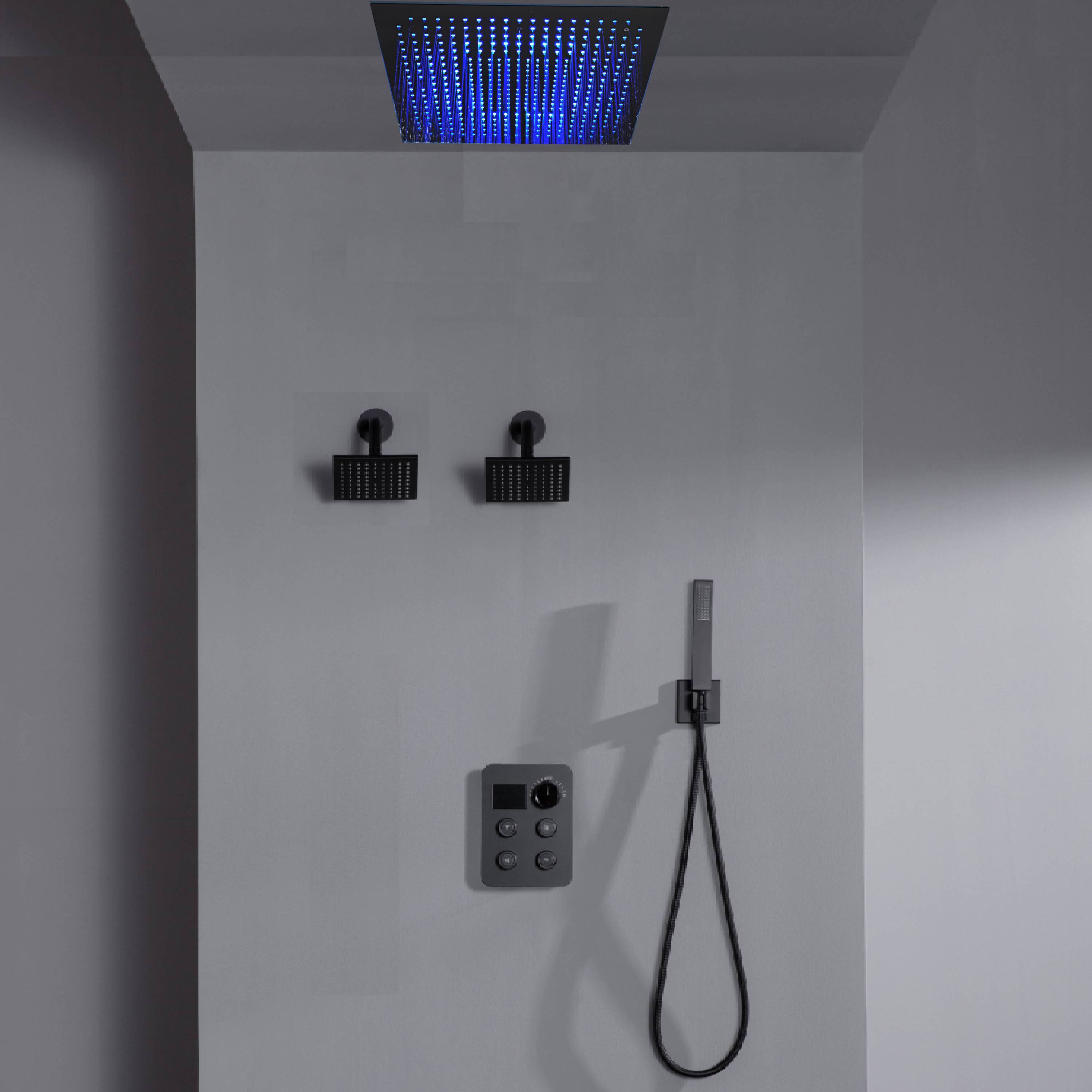 16" or 20" Flush Mount LED Rain Head Shower System with Dual Regular Heads