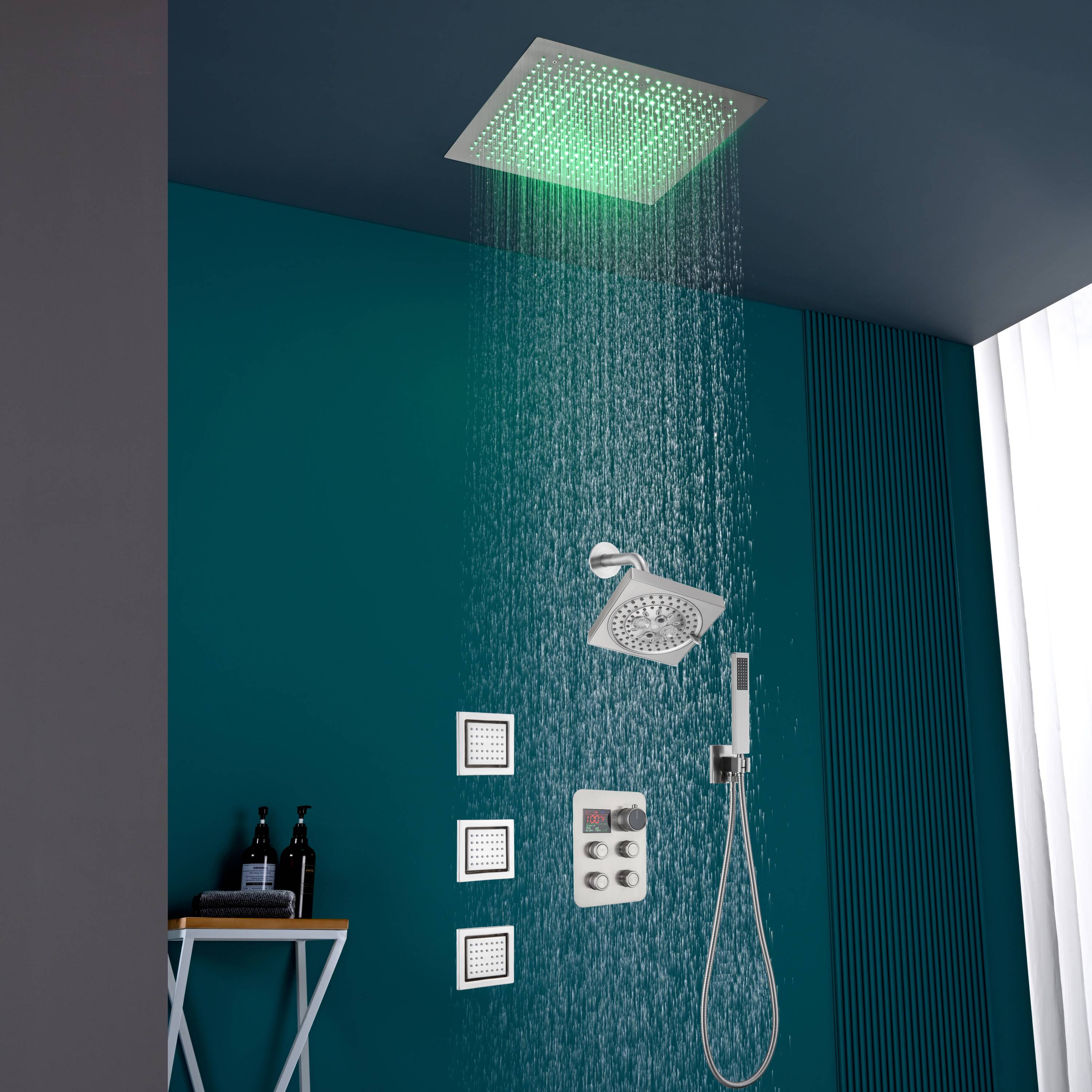 16" or 20" Flush Mount LED Rain Head Shower System with Regular Head and 3 Body Jets