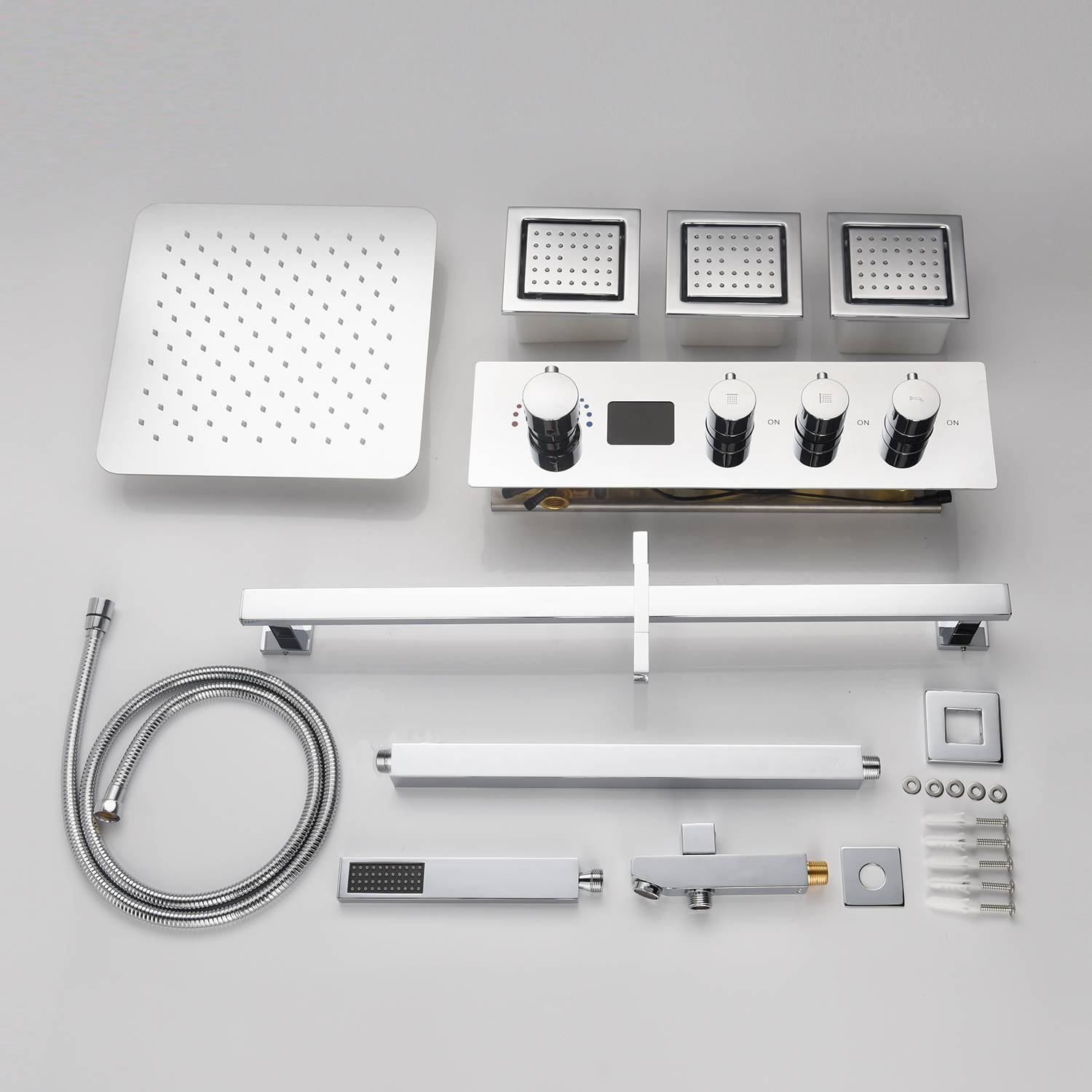 Indulge in a luxurious shower experience with our 3-way digital display thermostatic shower system. This comprehensive set includes a variety of features designed to elevate your daily routine.