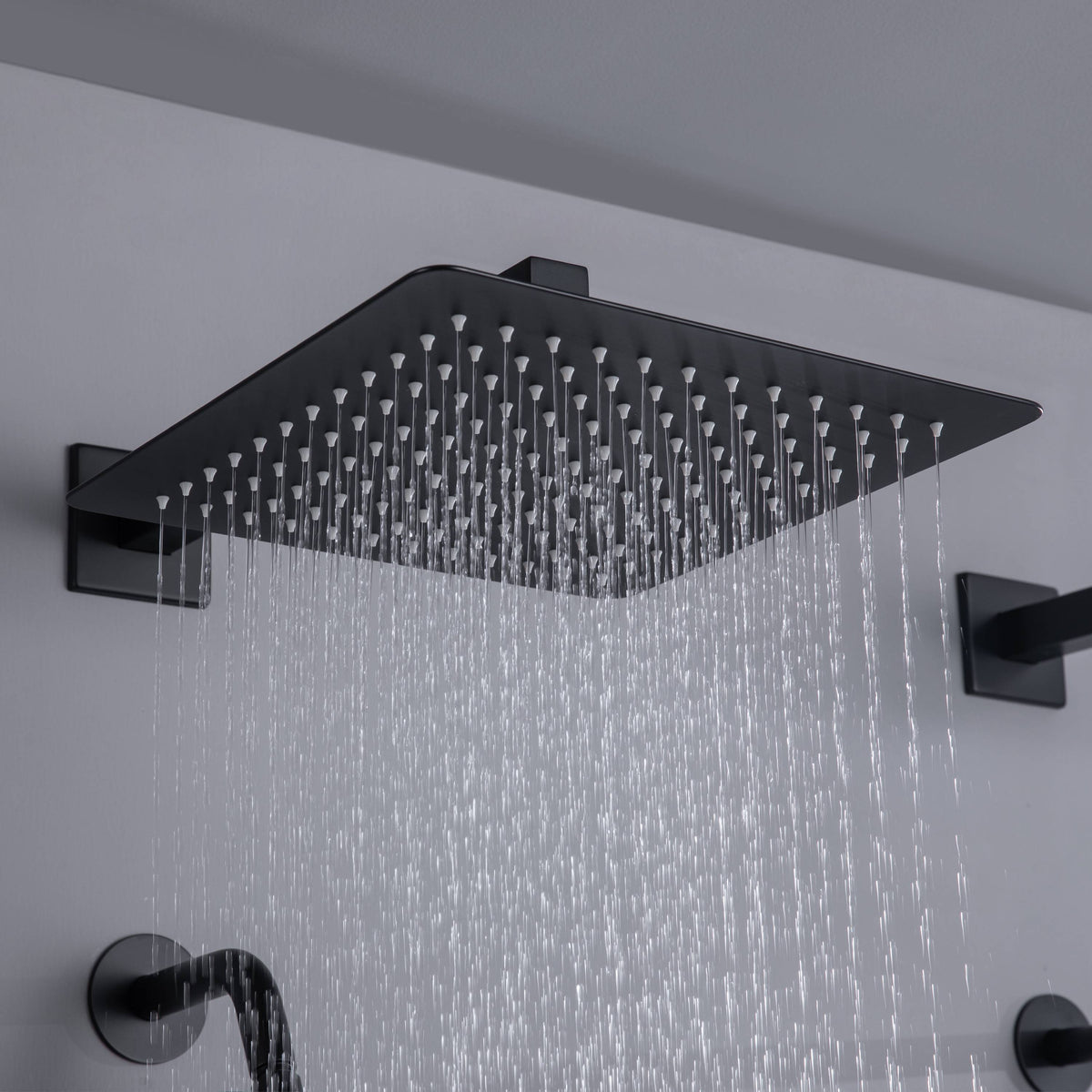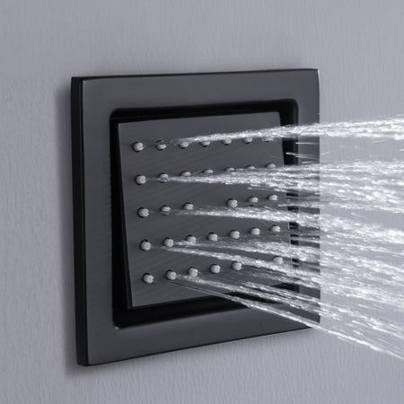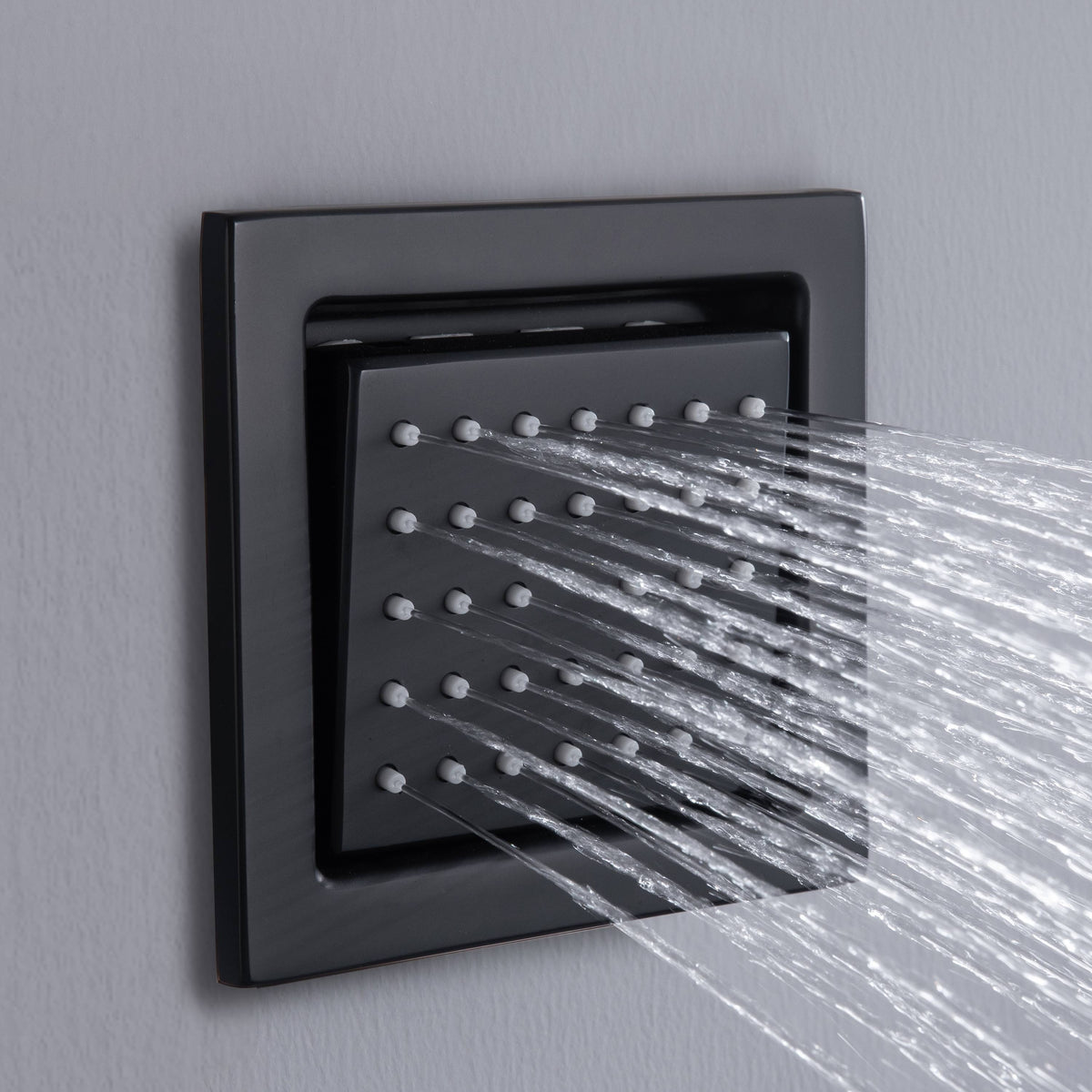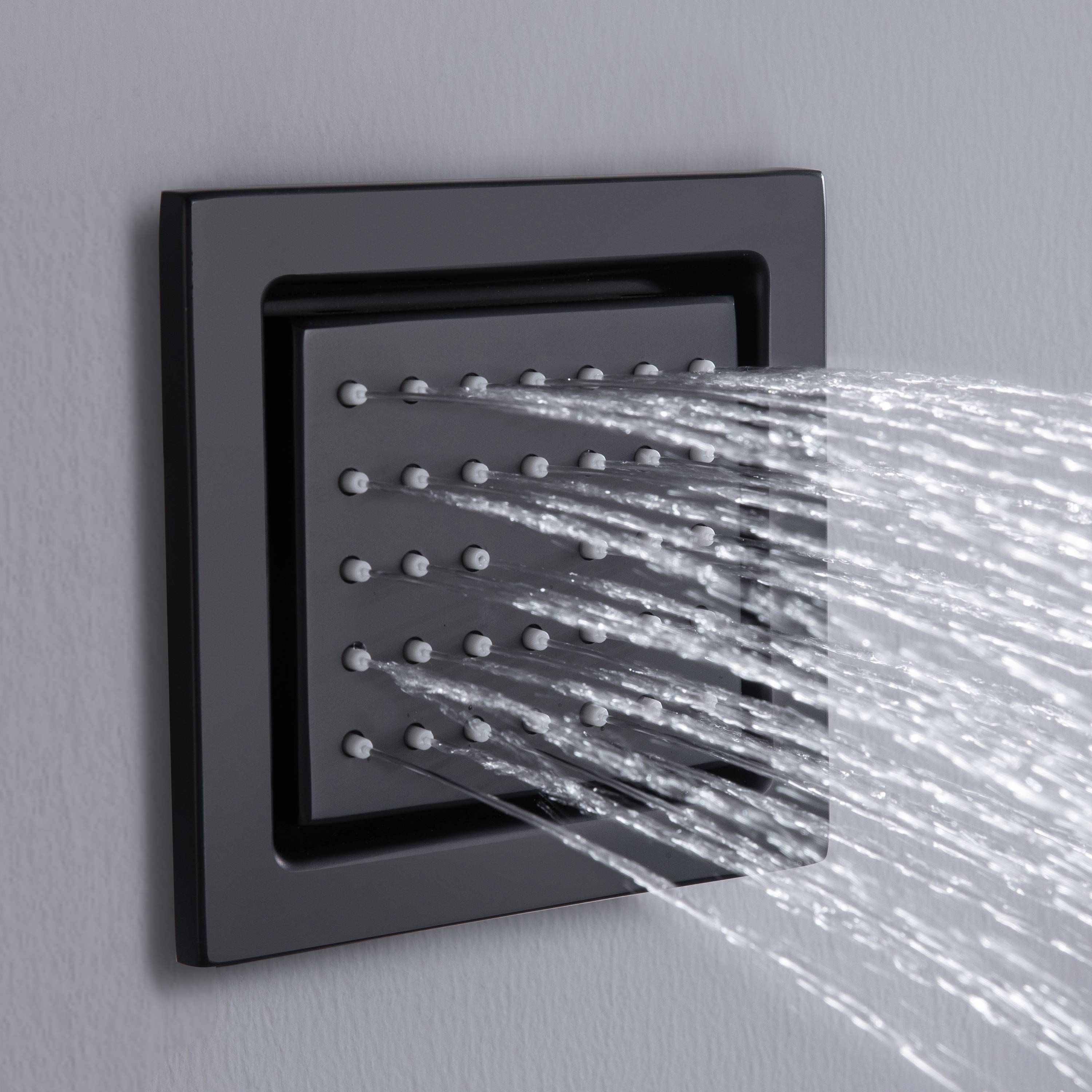 matte black or brushed gold or brushed nickel dual rainfall head 6 way digital display shower faucet with dual 6'' regular heads and 4'' body jets