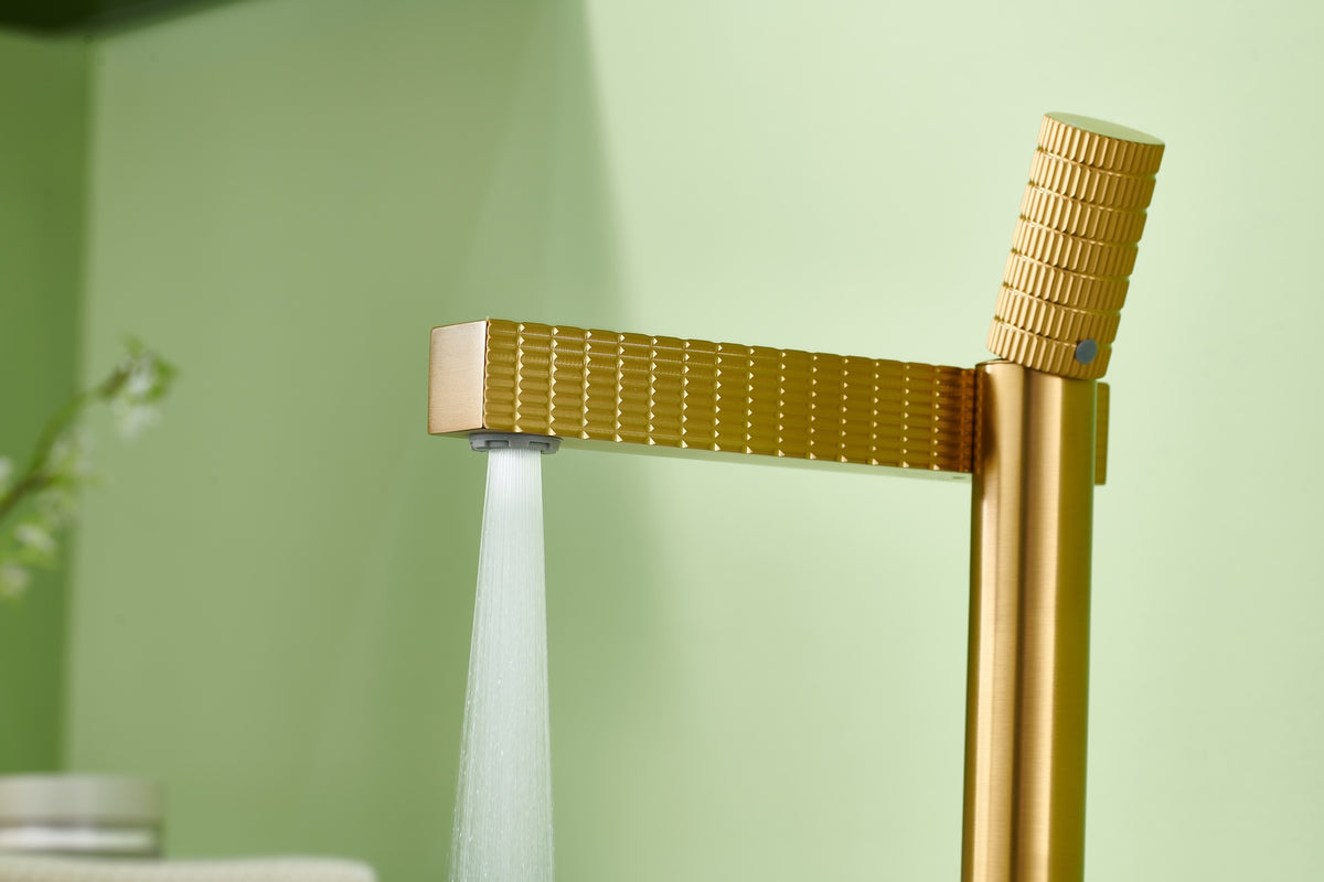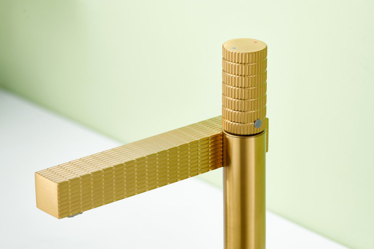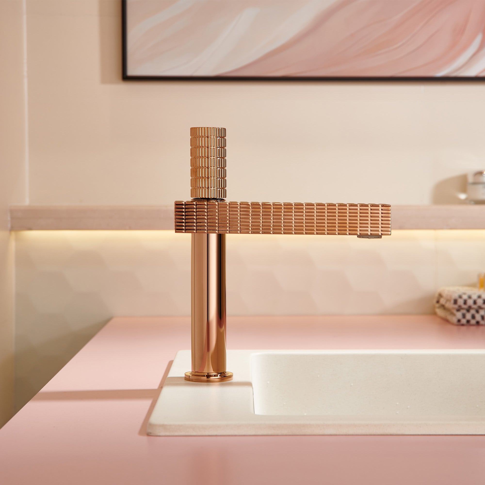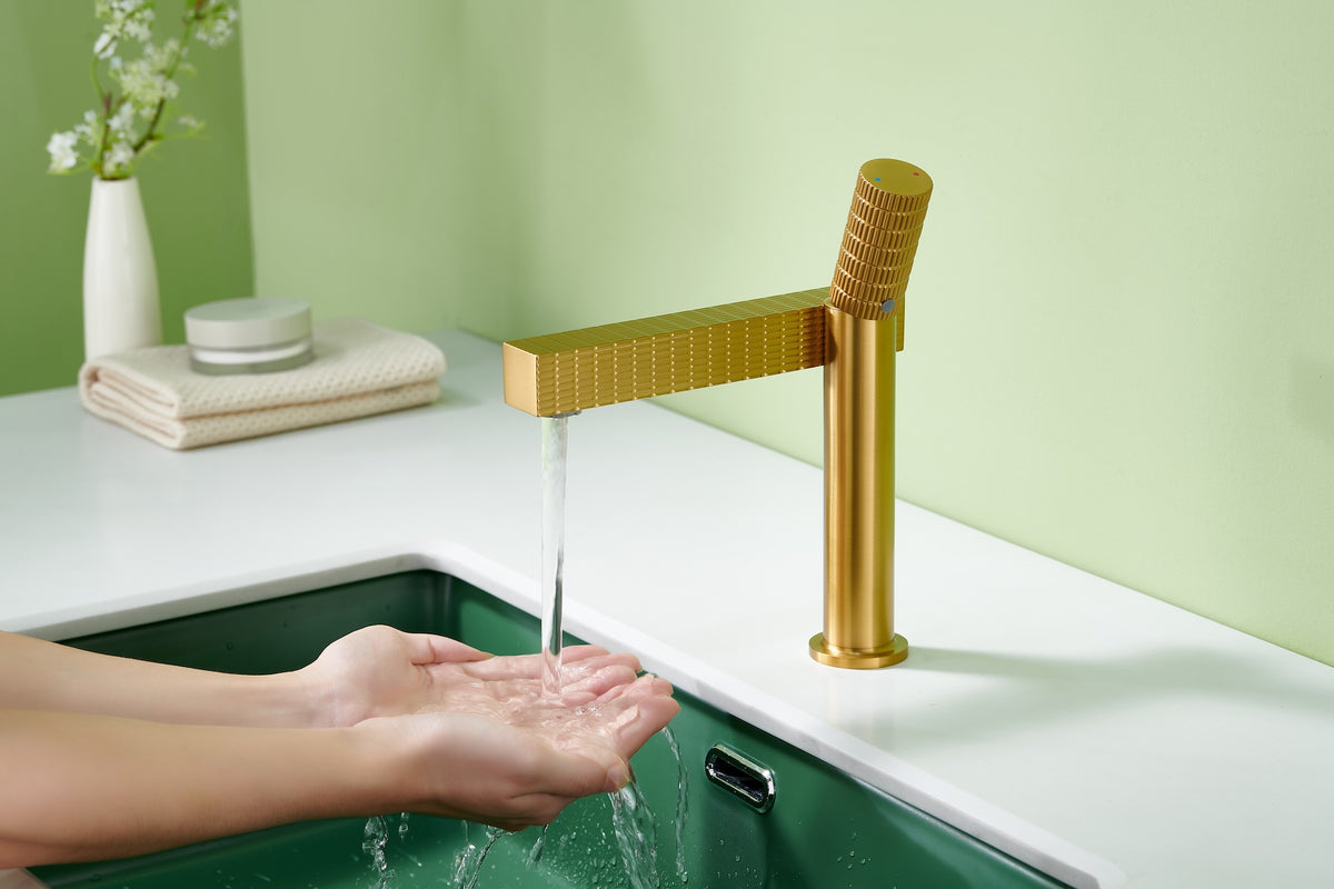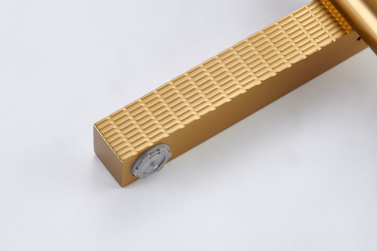 Add a touch of elegance to your bathroom with our brushed gold basin faucet. This deck-mounted fixture combines a robust brass body and a metal handle to offer durability and style, enhancing both the functionality and aesthetic appeal of your basin area.