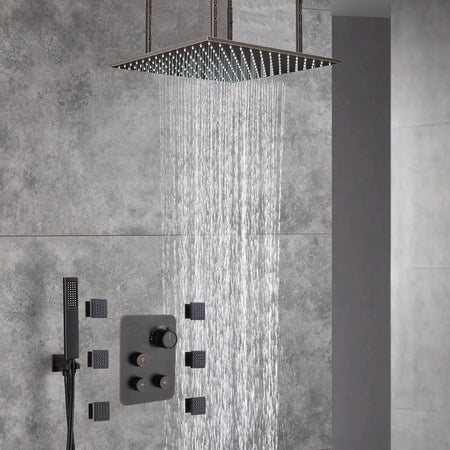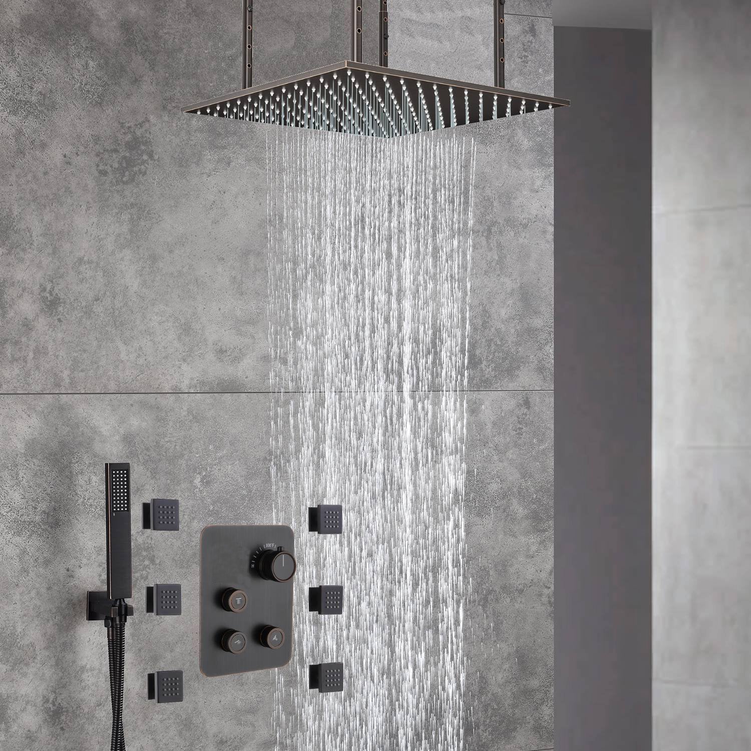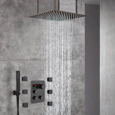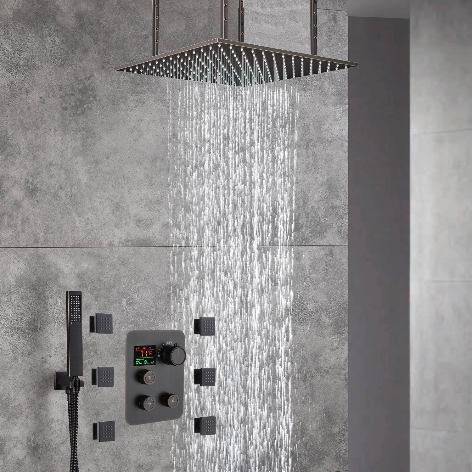LED Oil Rubbed Bronze 20" Ceiling-Mounted 3-Way Thermostatic Shower Faucet