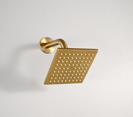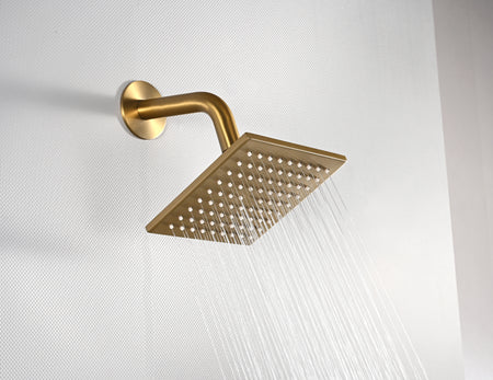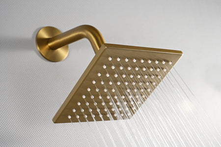 The 6-inch wall shower head is also made of stainless steel. The adjustable ceiling shower arm ranges from 9 to 15 inches, and the wall mount arm ranges from 9 to 13 inches. The 6 x 6-inch regular head comes with an 8-inch wall arm and flange, and is designed for high water pressure.