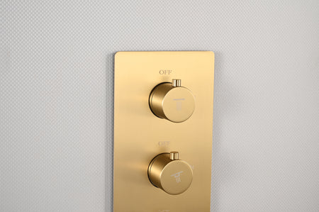 The system boasts a three-way thermostatic faucet with trim, enabling you to control the water flow and pressure for each function. Choose to have all functions work simultaneously or select one or several to work separately. The thermostatic valve ensures a consistent temperature, ideal for those who enjoy a soapy lather and rinse.