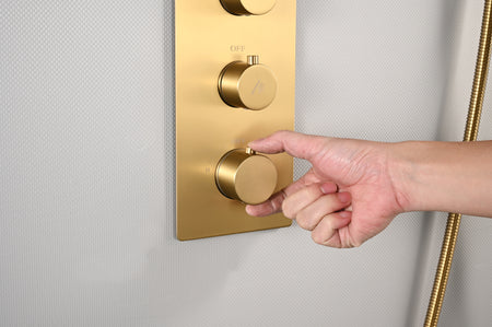 Style X3: Offers precise control with three diverter knobs for water flow and pressure, alongside a temperature knob managed by a thermostatic cartridge. Each function can work simultaneously or individually, catering to your preferred shower experience;The product features 1/2 inch inlets and outlets, necessitating the use of 1/2 inch hot and cold water pipelines, while all other pipelines are also sized at 1/2 inch, and it offers a water flow range of 1.5 to 5.8 GPM.
