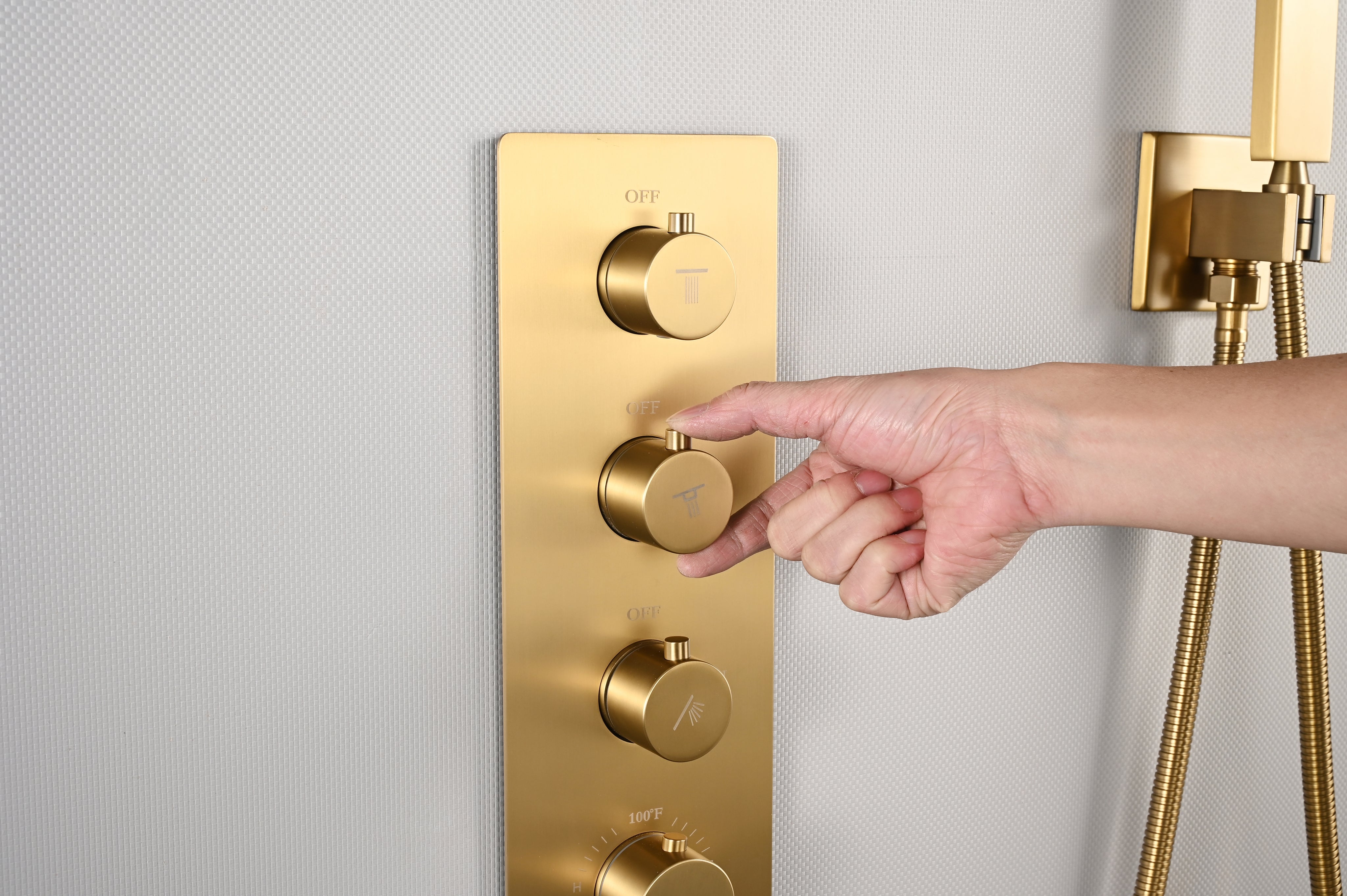 Style Q3: Combines precise control and modern tech. Features three diverter knobs for water flow and pressure, and a thermostatic cartridge-controlled temperature knob. Each function can operate together or separately. Includes a battery-free, water flow-operated digital display.The product features 1/2 inch inlets and outlets, necessitating the use of 1/2 inch hot and cold water pipelines, while all other pipelines are also sized at 1/2 inch, and it offers a water flow range of 1.5 to 5.8 GPM.