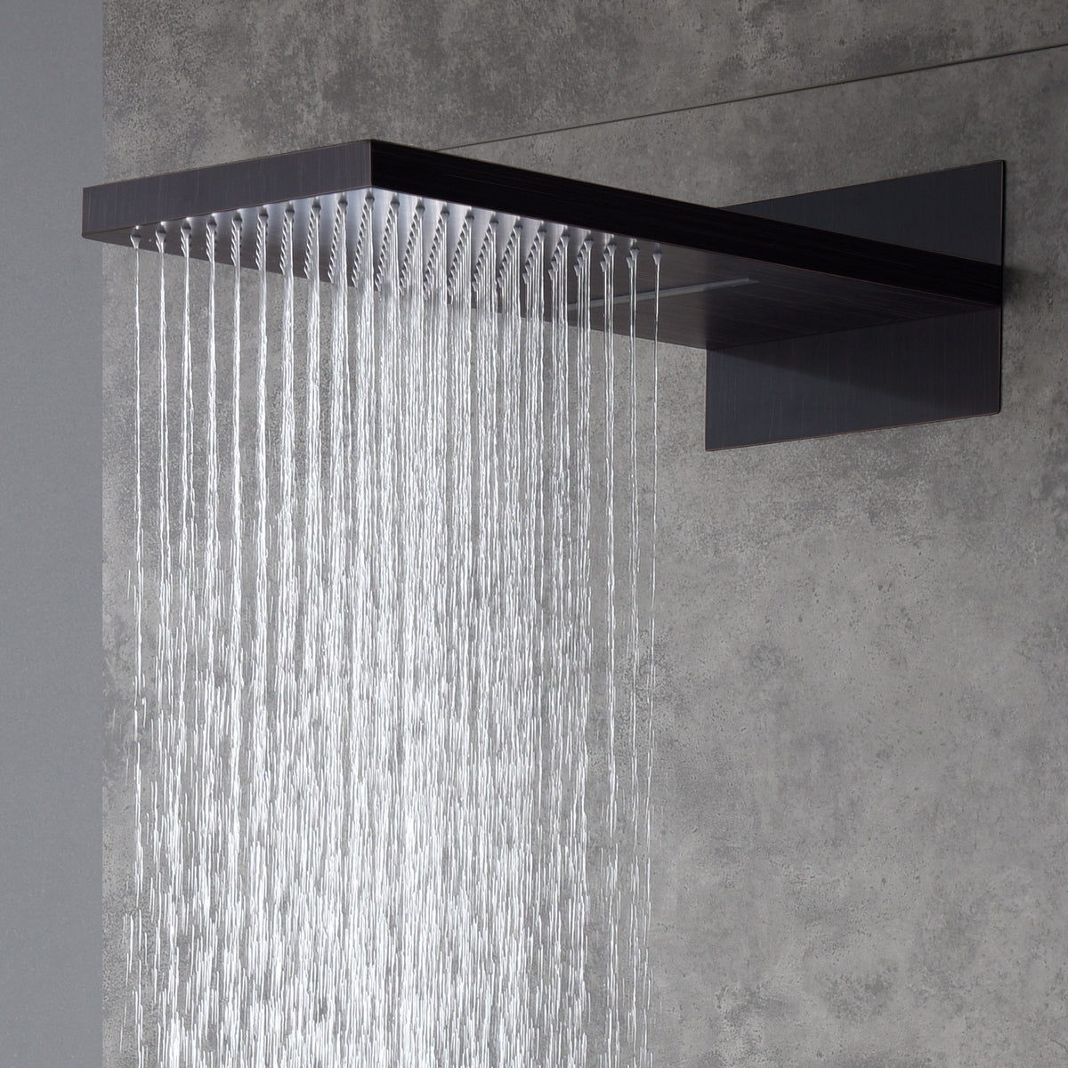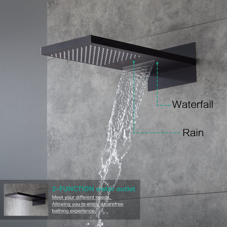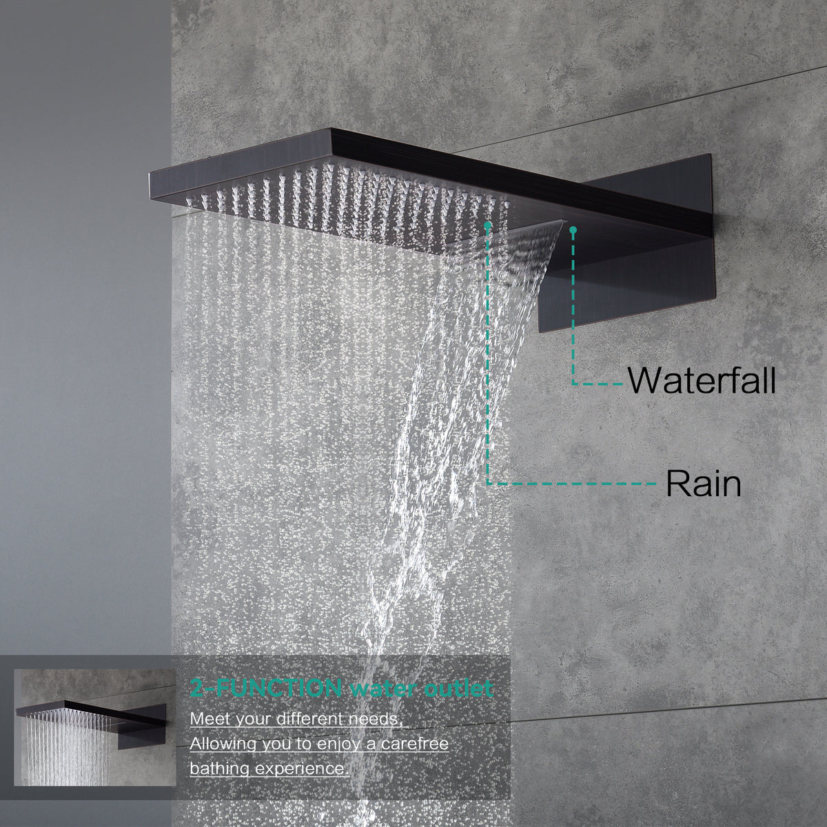 The system includes a 22'' x 9.1'' shower head, offering both rainfall and waterfall functions for a spa-like experience.ย