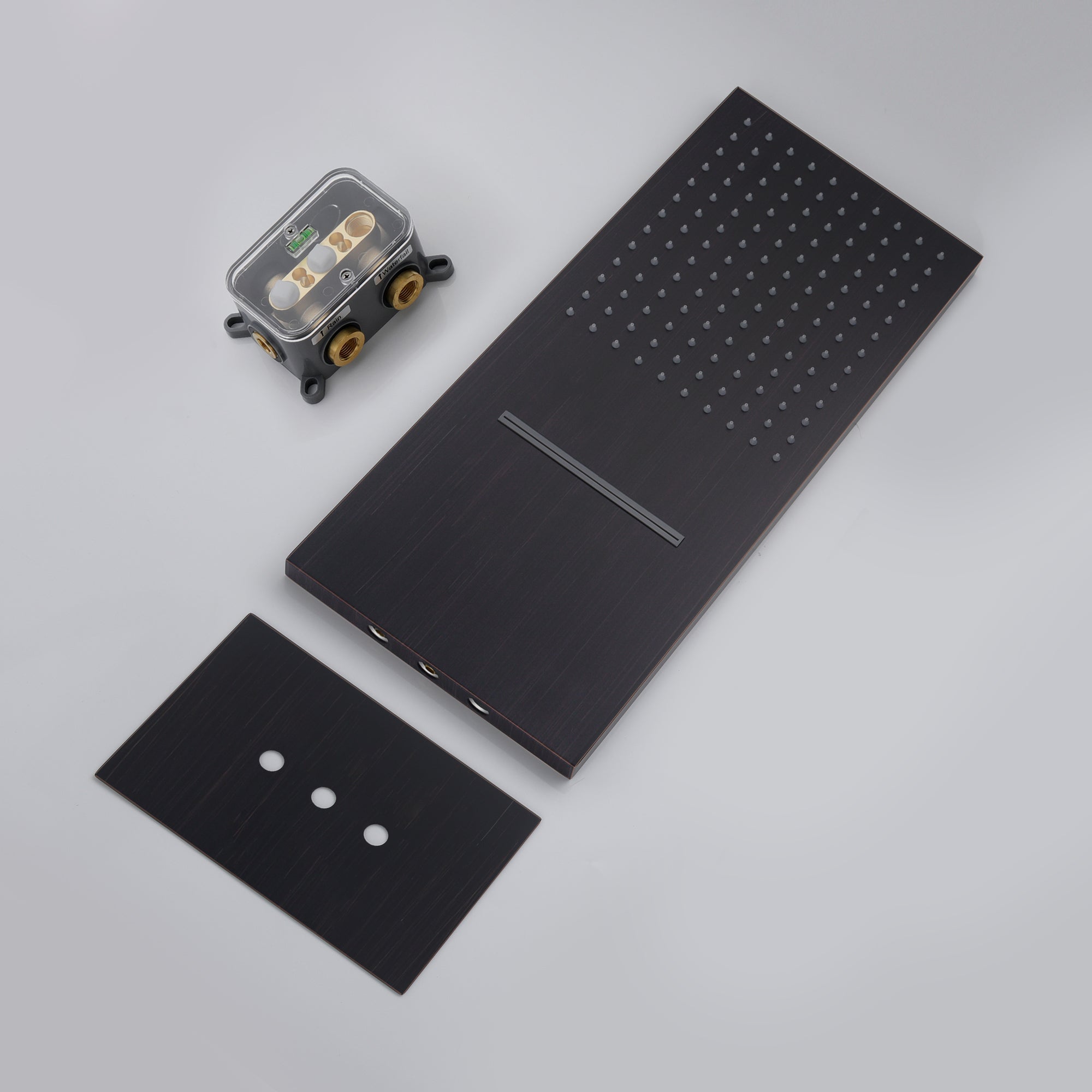 22" oil rubber bronze Rainfall/Waterfall Shower Head with 3-Way Thermostatic Faucet