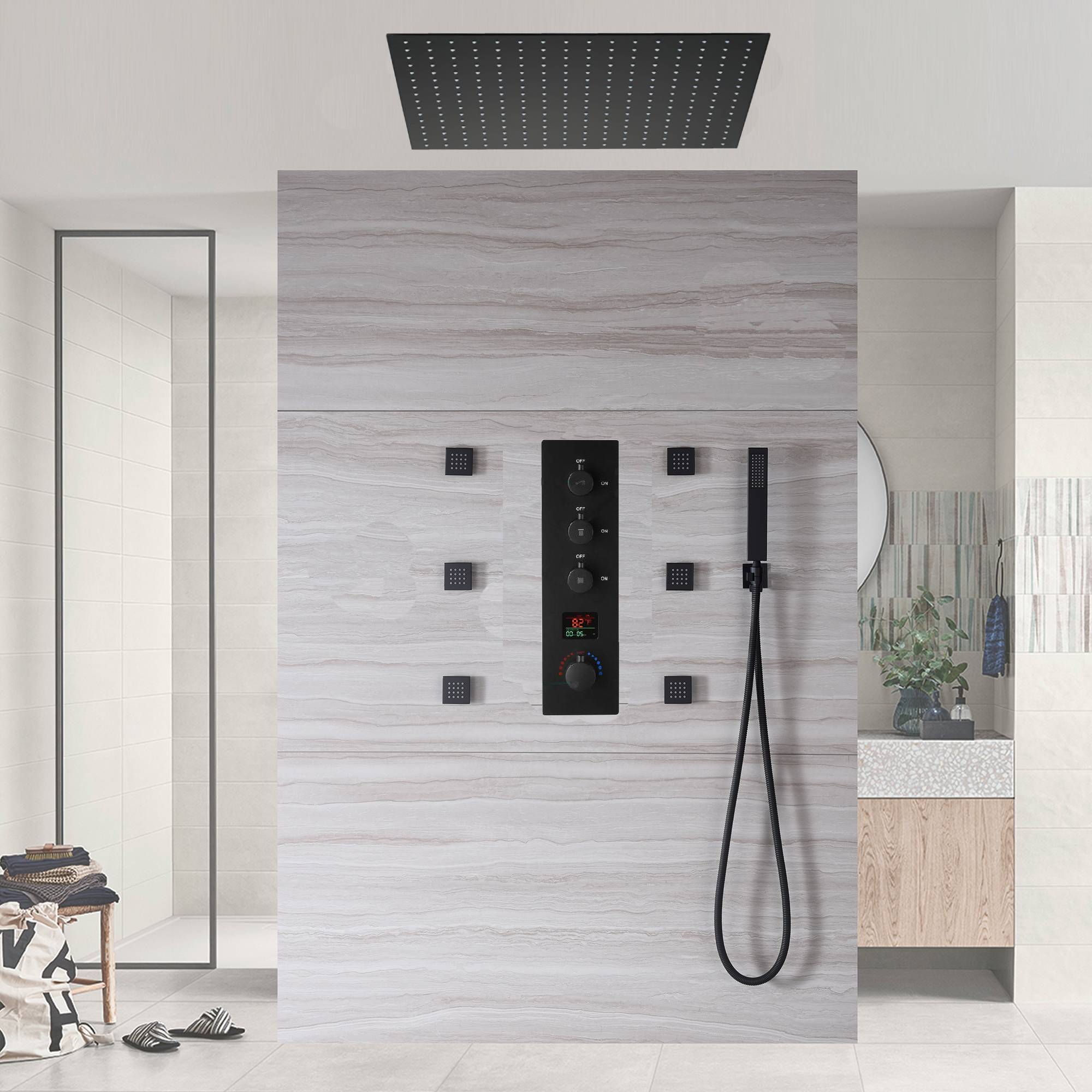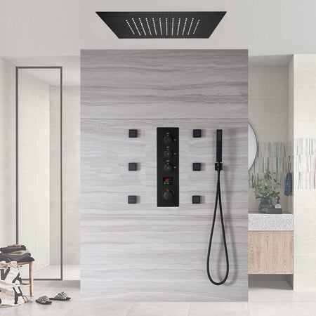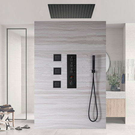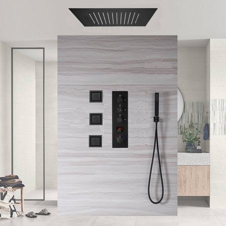 20inch LED Rainfall matte black 3 way digital thermostatic shower faucet with Body jets