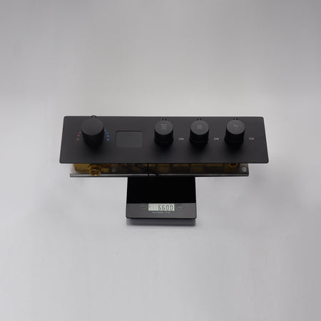 The 3-way digital display thermostatic rough-in valve with trim allows each function to work separately, with a water flow range of 1.5 GPM to 6.5 GPM and a water pressure range of 30~ 100PSI ( recommended 70 ~ 90 PSI);