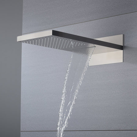 3-Way Brushed Nickel Thermostatic Shower System with LED Rainfall and Waterfall Shower Head:
