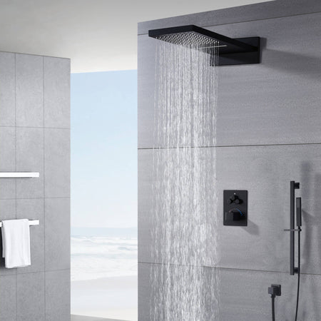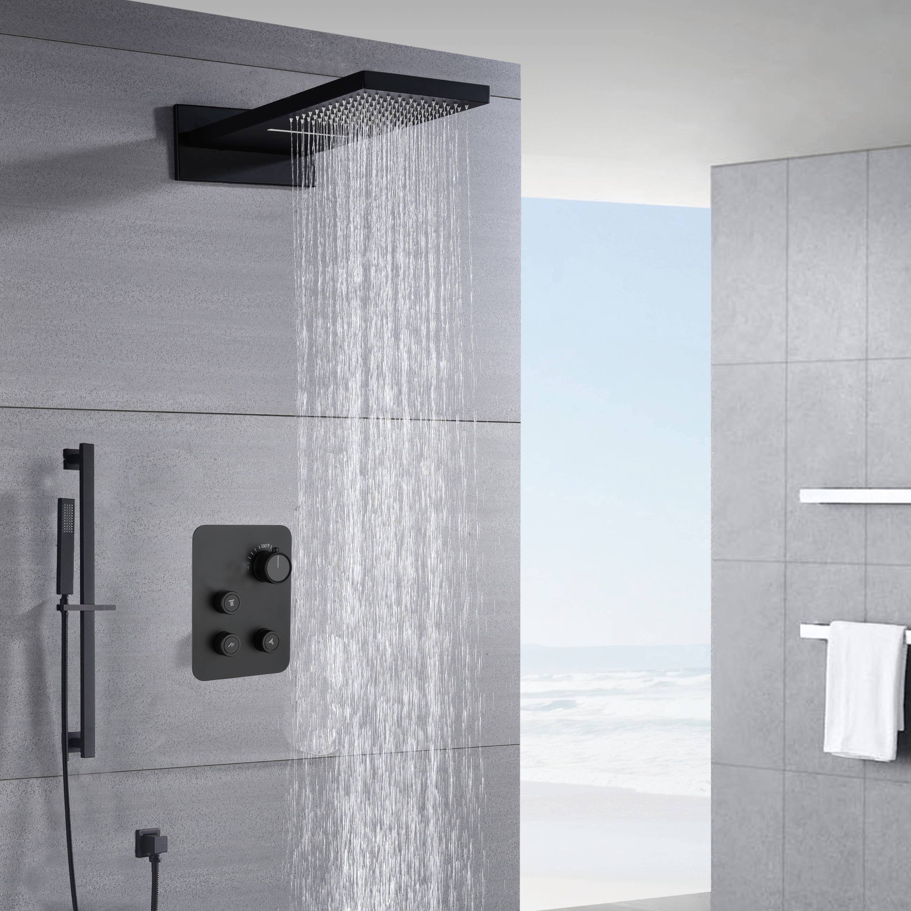 A highlight of this system is its 3-way brass thermostatic valve. Each function - rainfall, waterfall, and handheld shower - can run both separately and at the same time, giving you complete control over your shower experience.