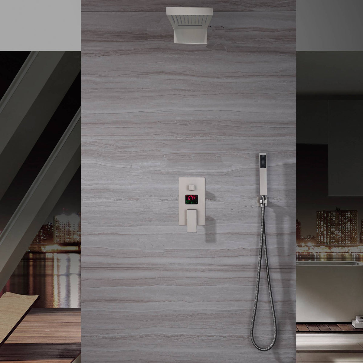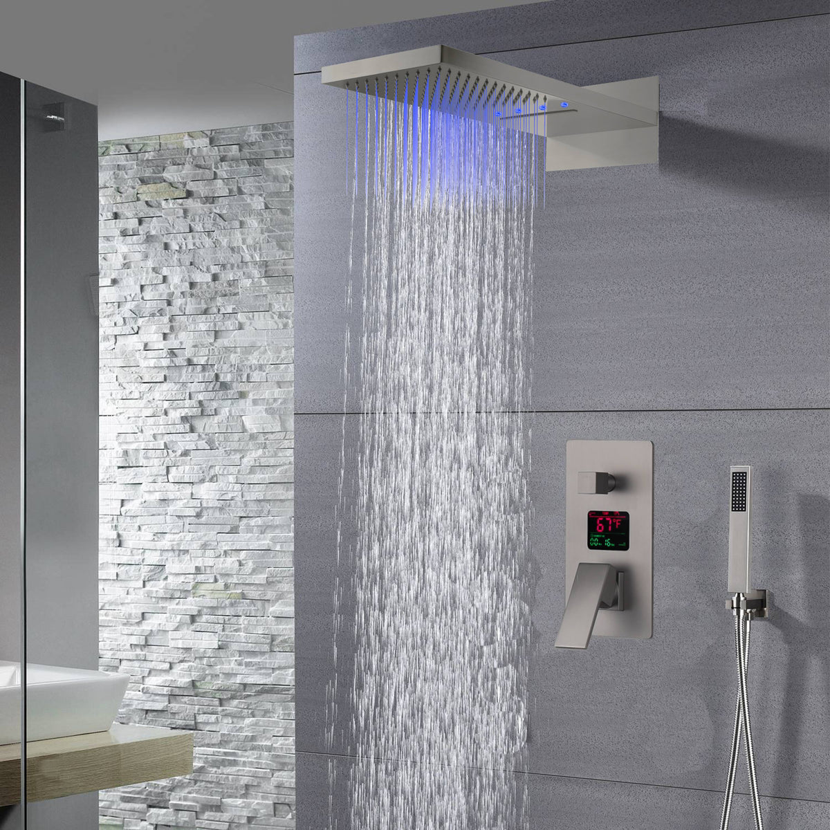 22 inch Brushed Nickel 3 way Digital display anti scald Shower faucet system rainfall and waterfall