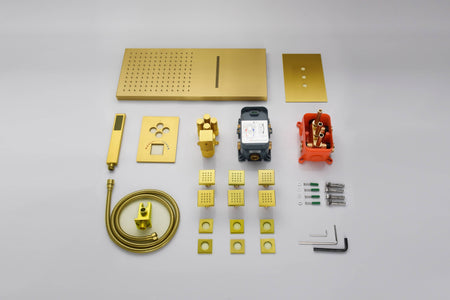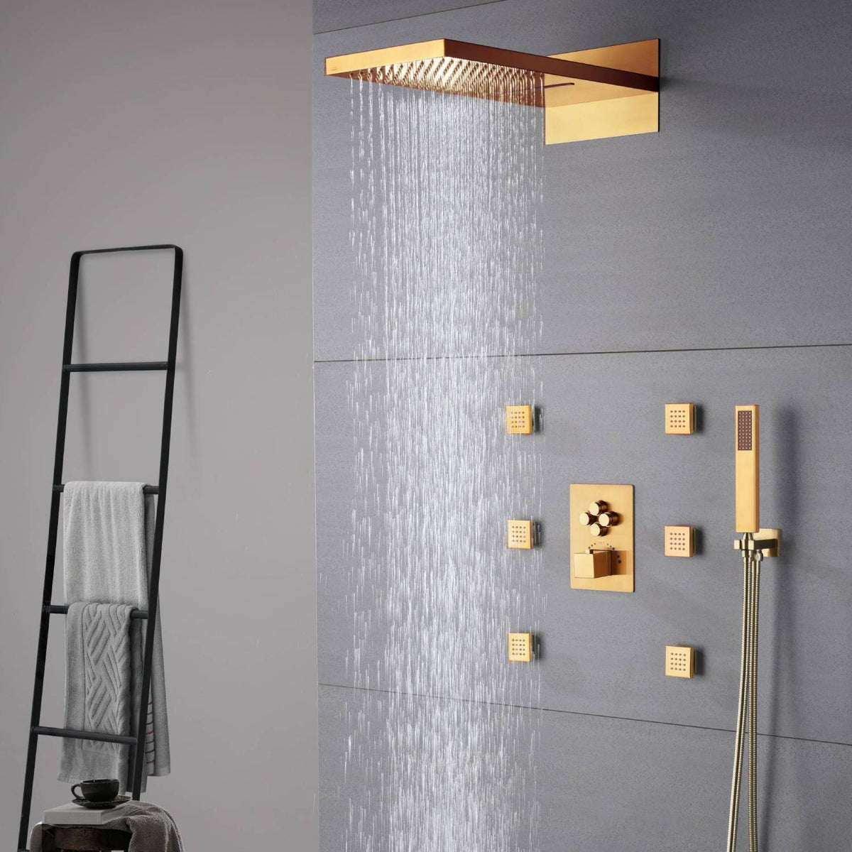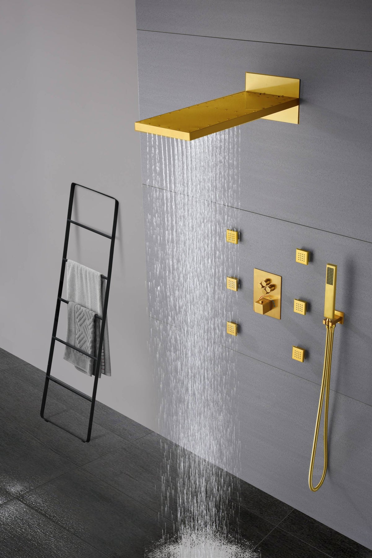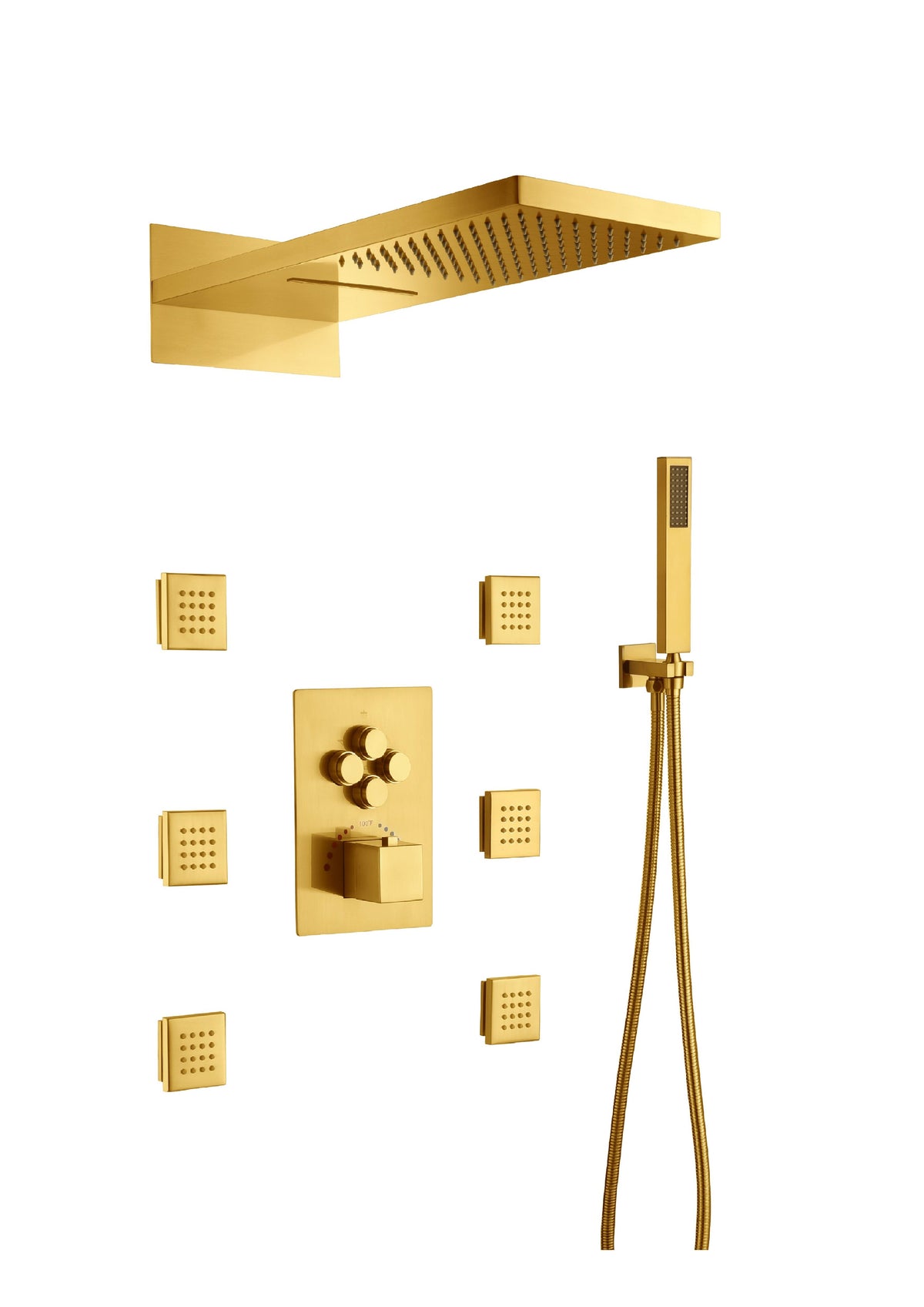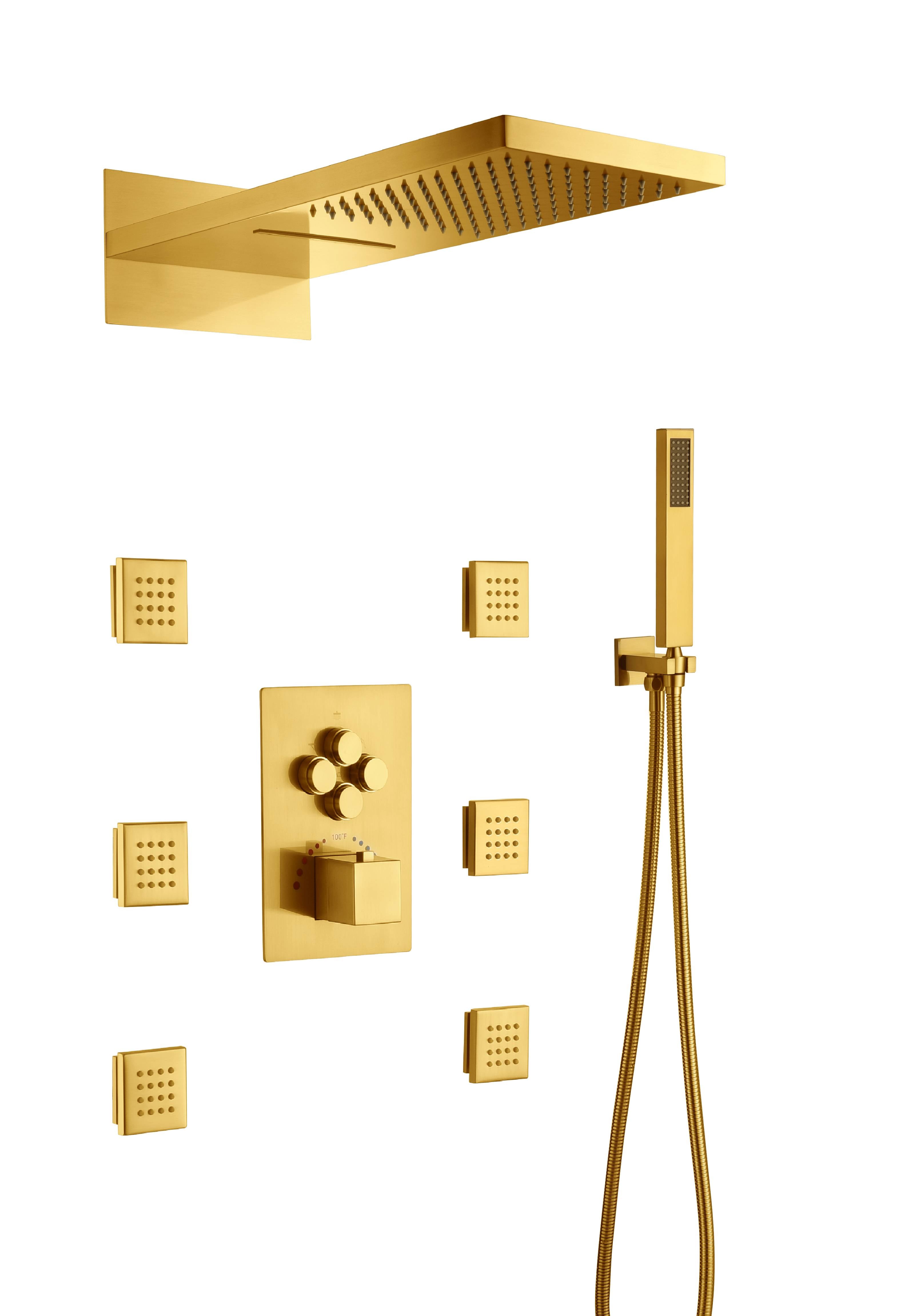 22inch rainfall waterfall Polished gold 4 way Thermostatic Shower valve system that each function run all together and separately