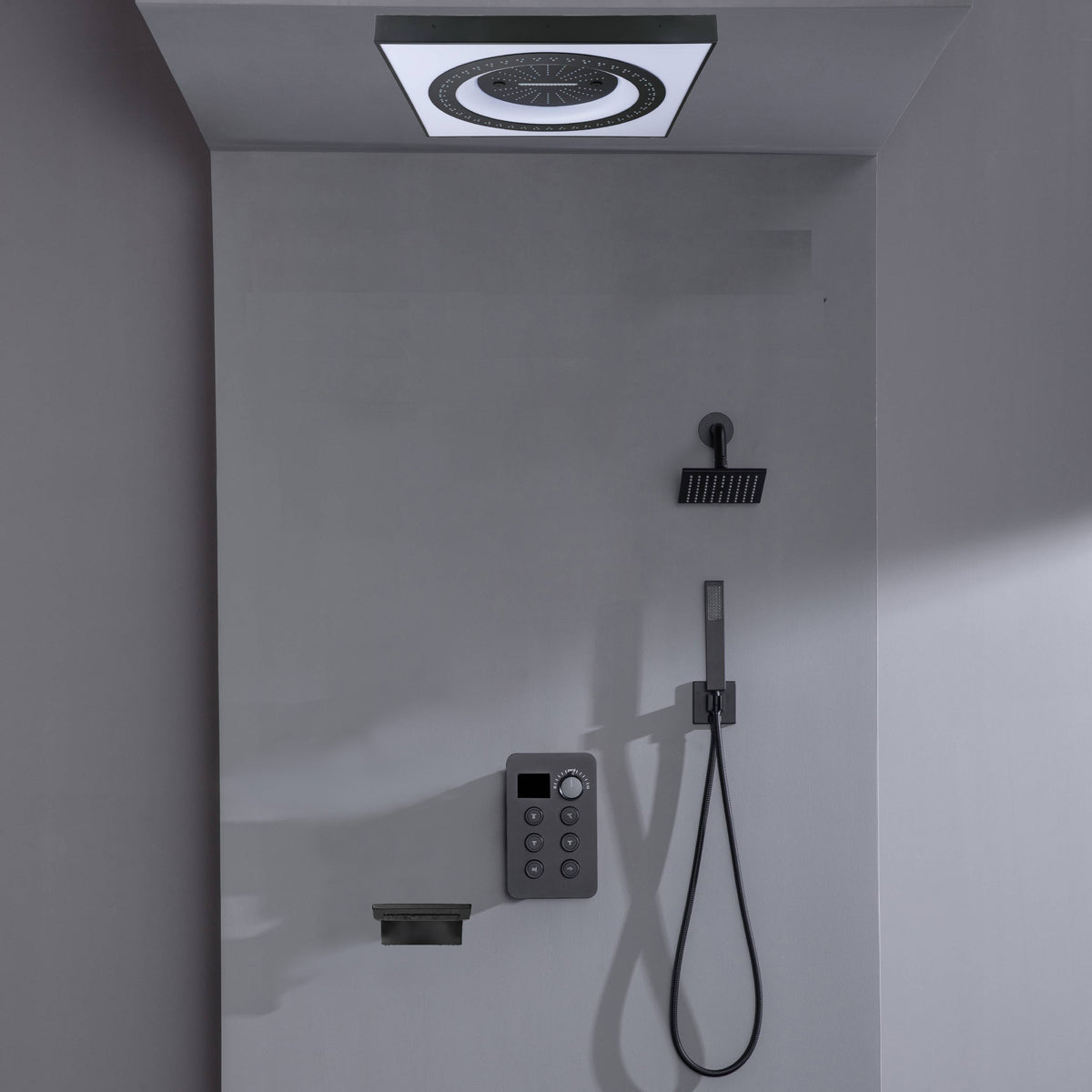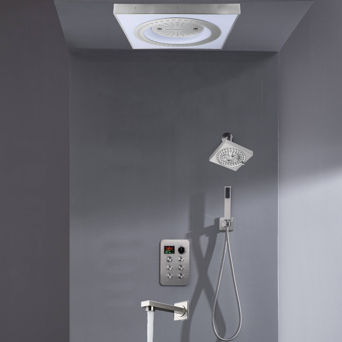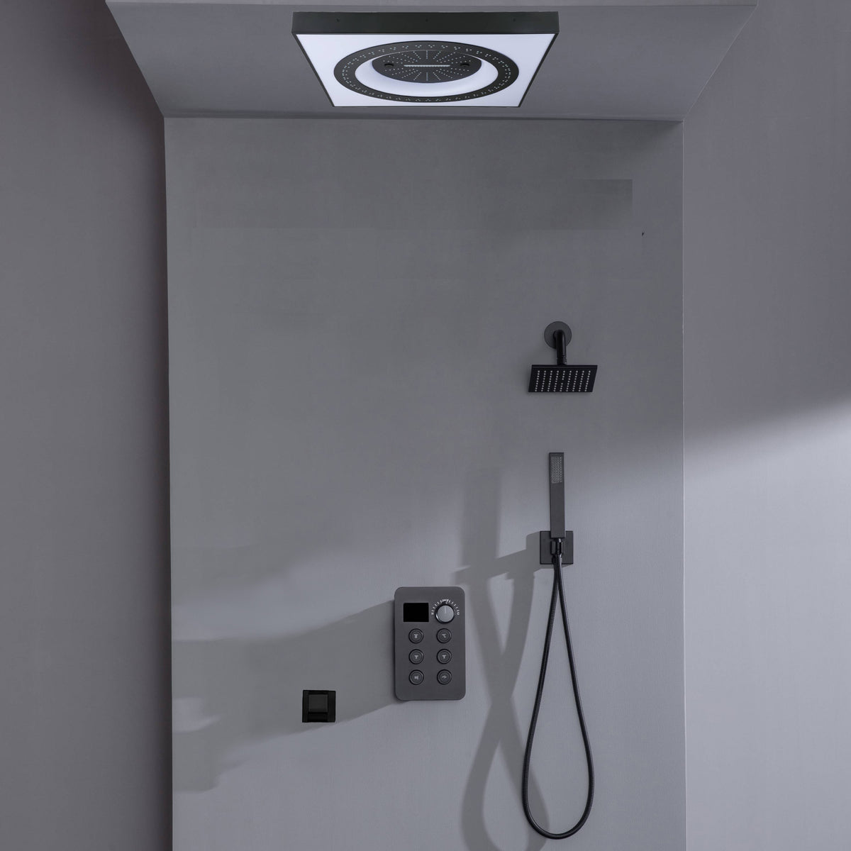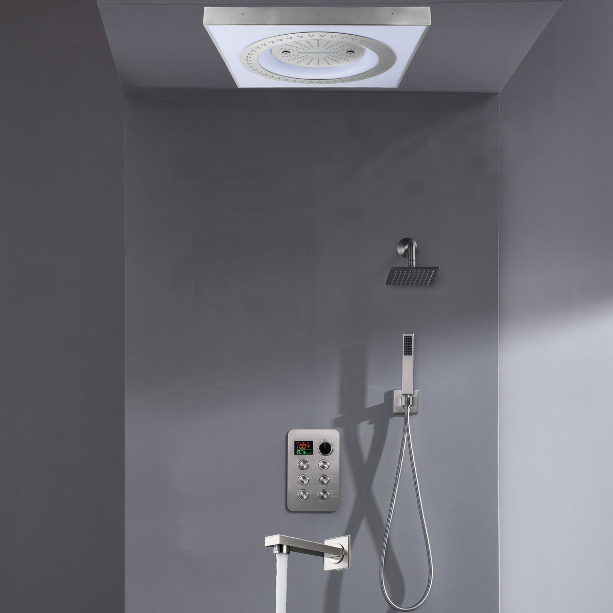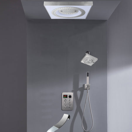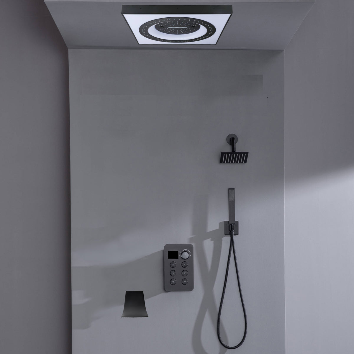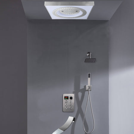 24" Flush Mount Shower Head with 6-Way Digital Faucet, 6" Regular Head, Tub Spout