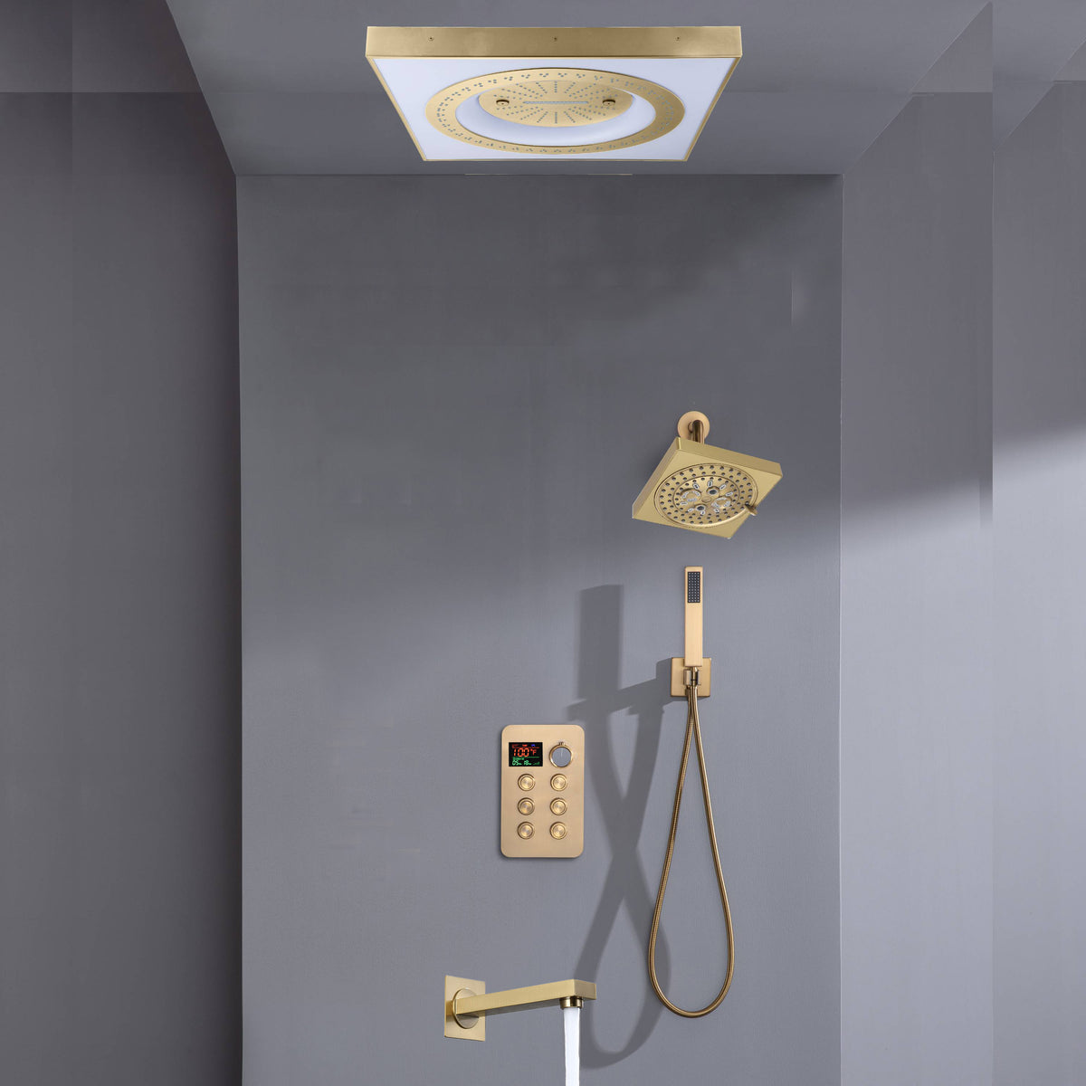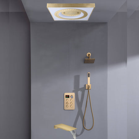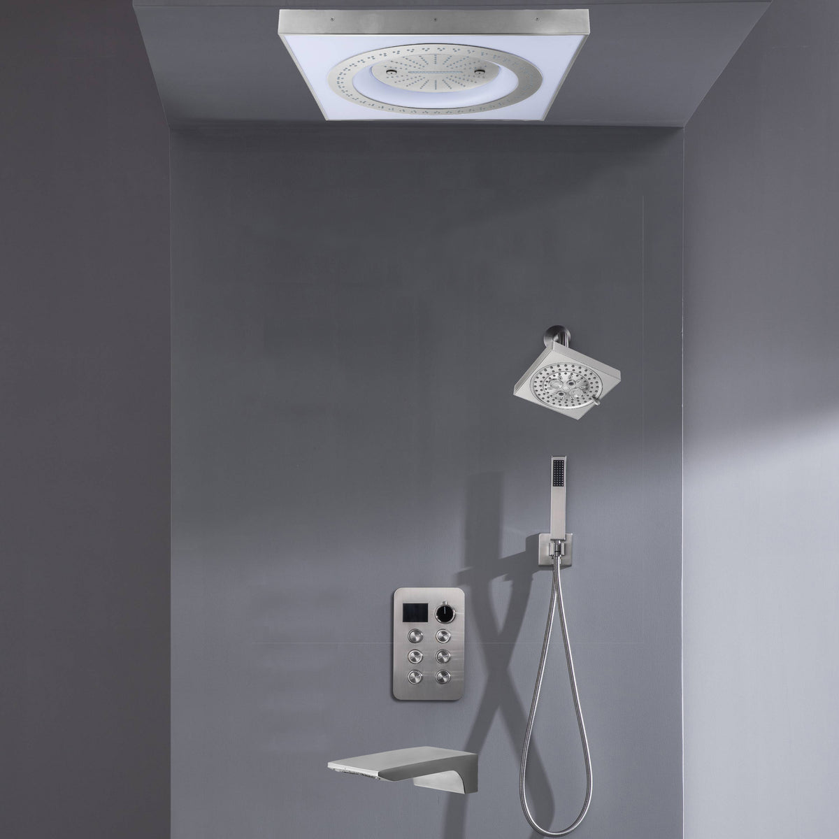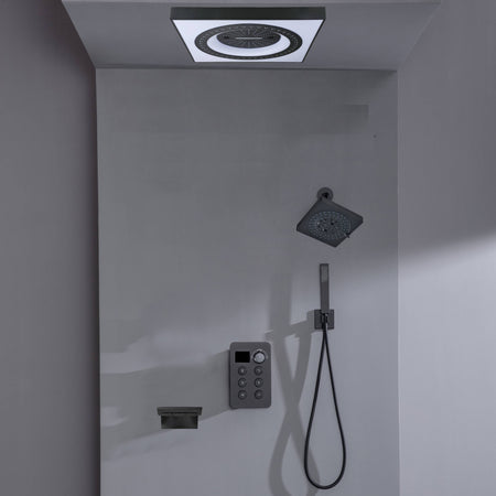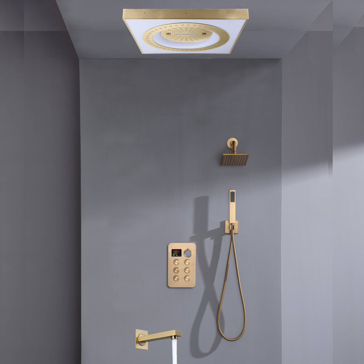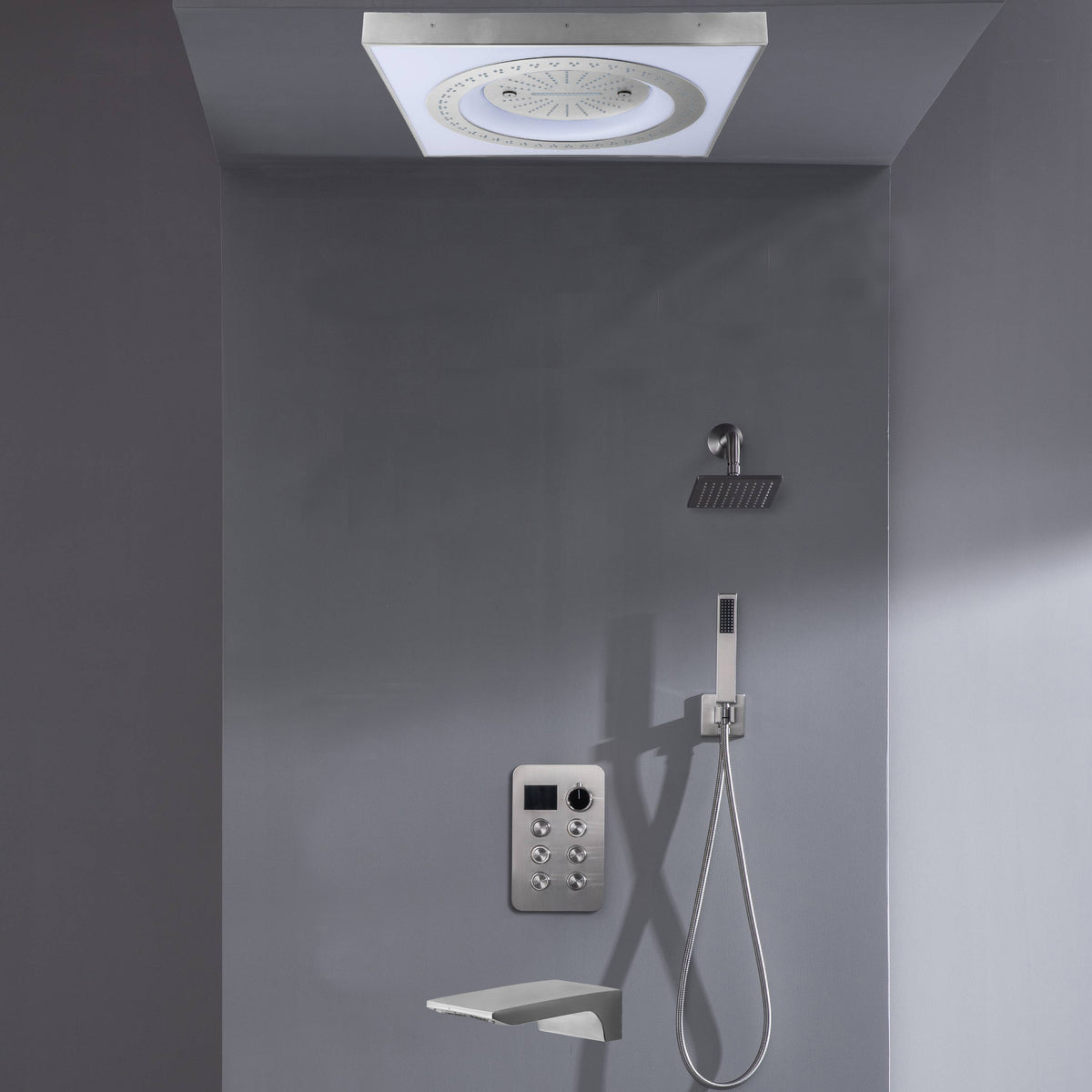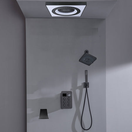 24" Flush Mount Shower Head with 6-Way Digital Faucet, 6" Regular Head, Tub Spout
