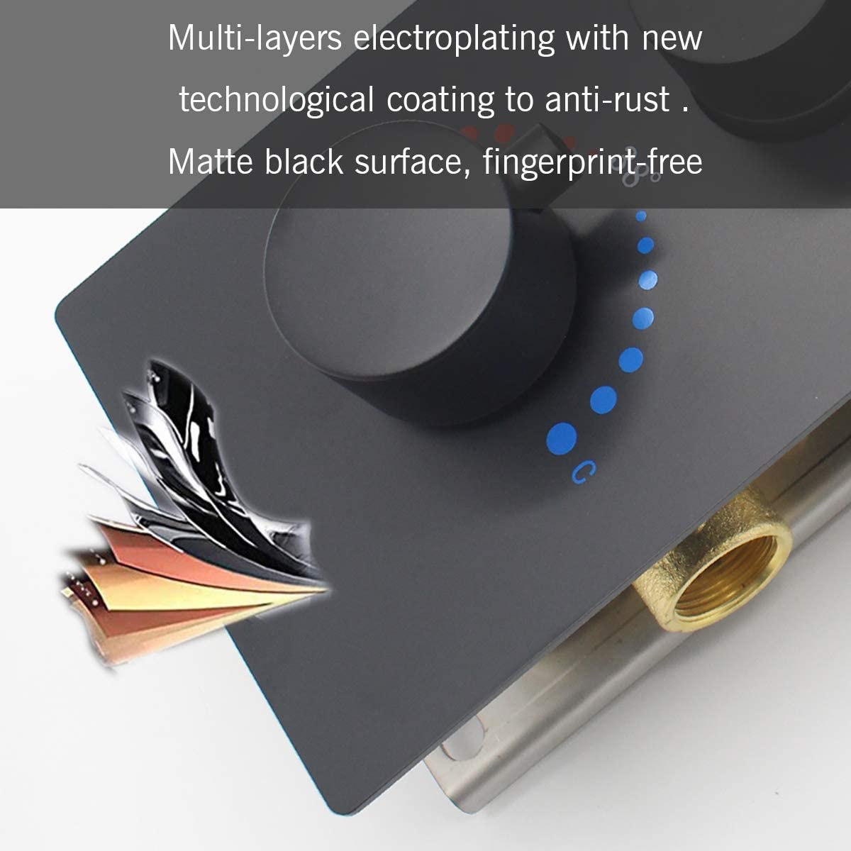 This all-metal shower faucet set is constructed with solid brass and stainless steel, ensuring durability and longevity. The matte black finish adds a touch of sophistication to your bathroom decor. It can be mounted on a concealed installation ceiling or flush mount ceiling for a seamless look.