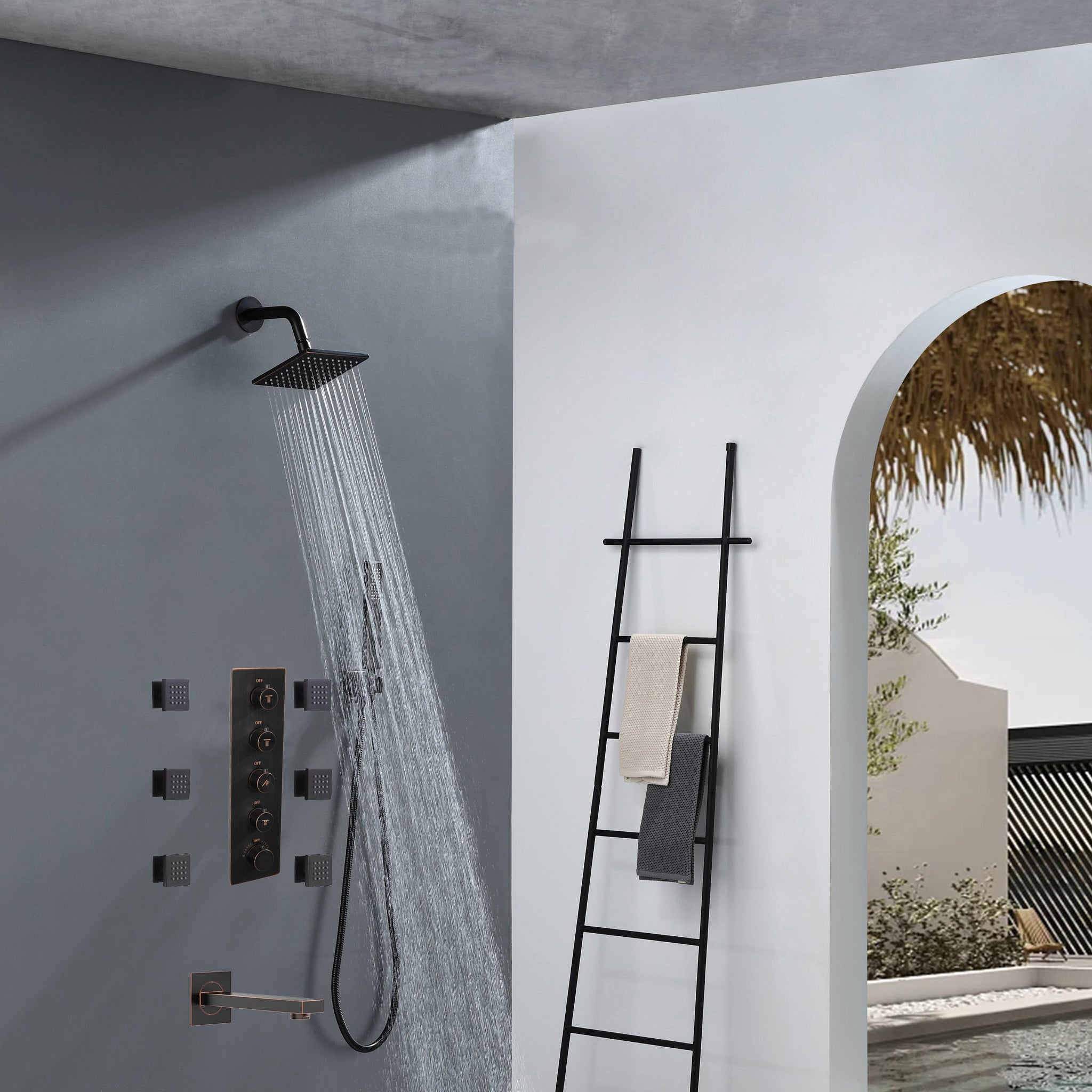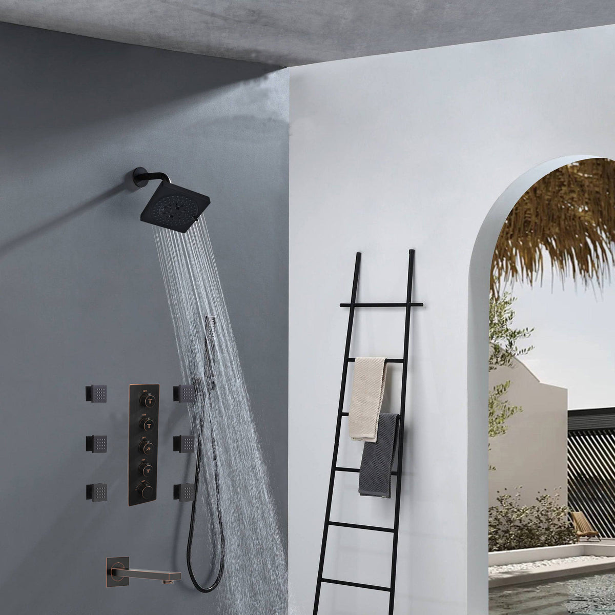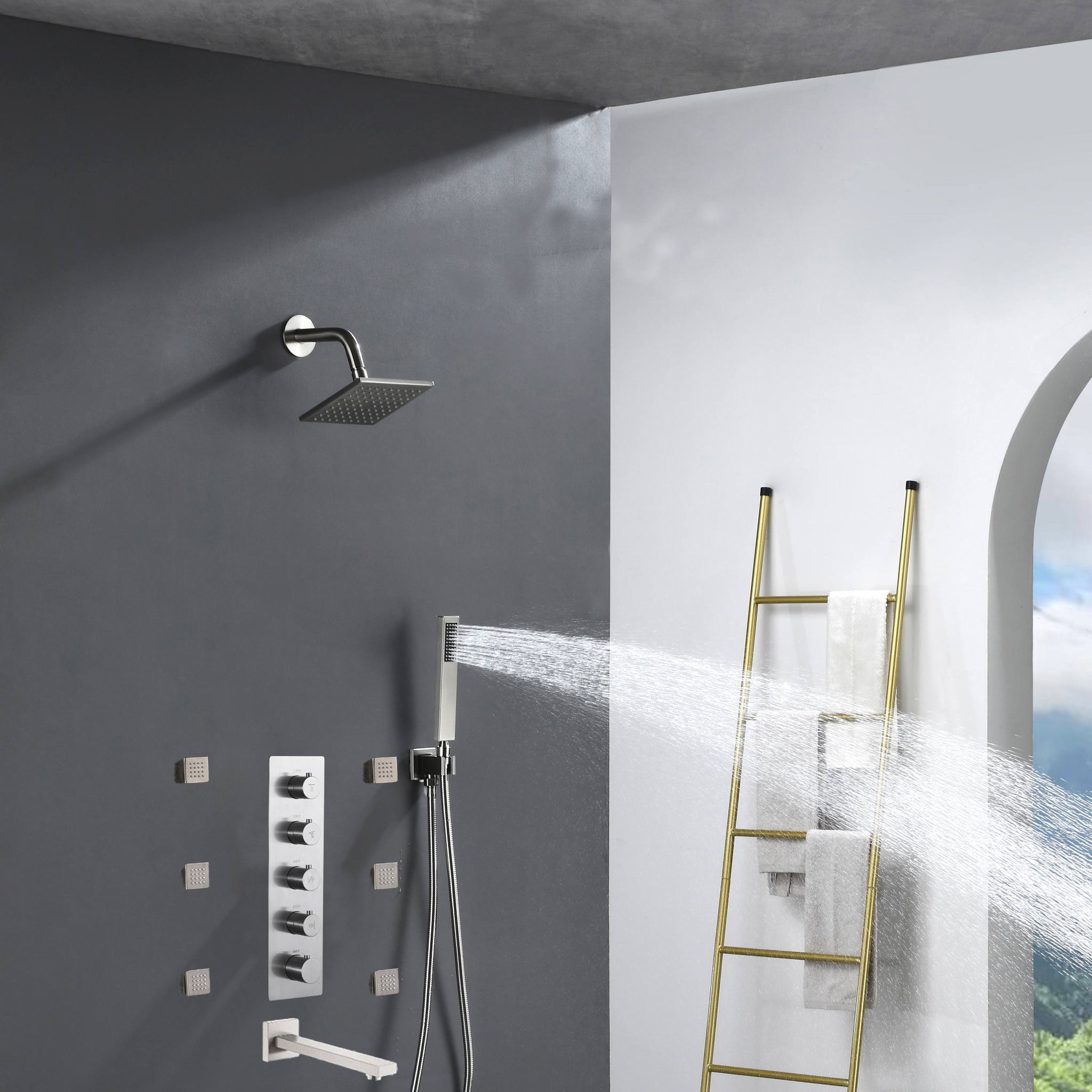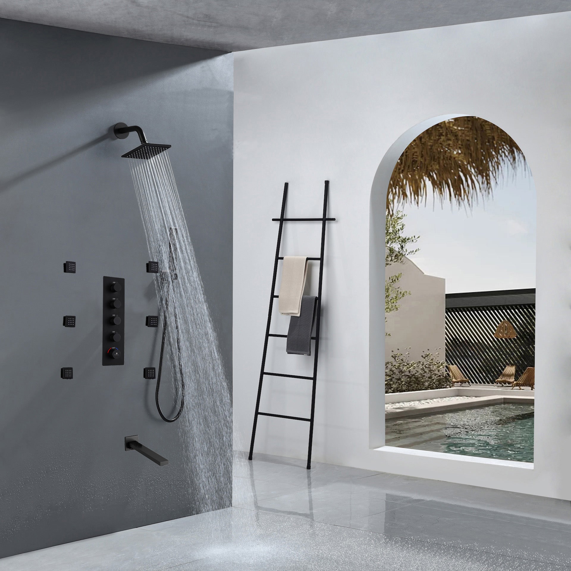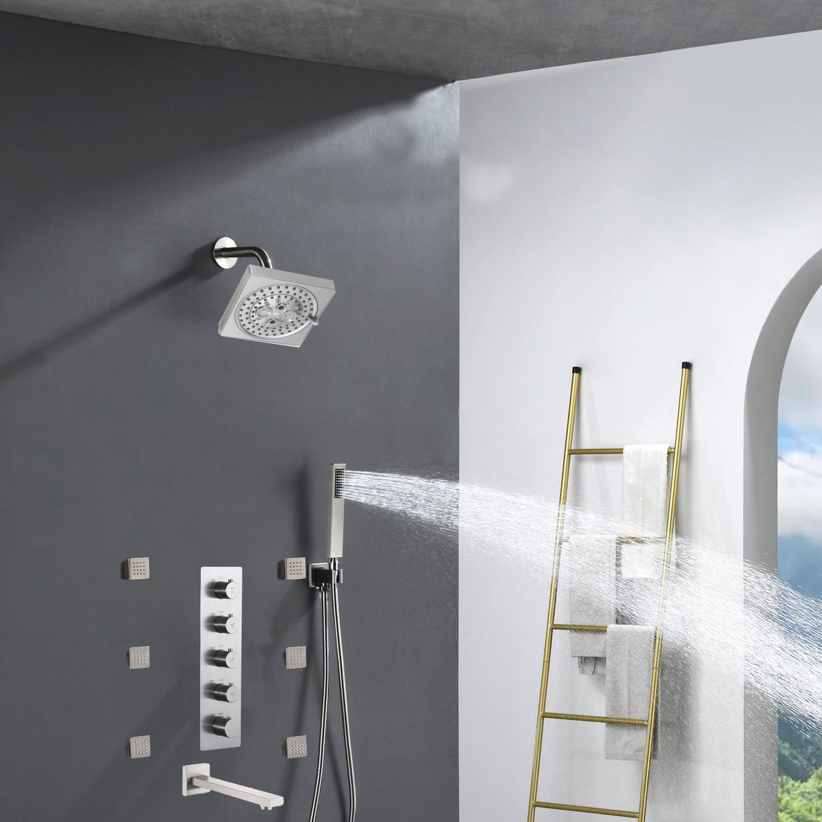 6" Regular Shower Head - 4-Way Thermostatic System with 6 jets and tub spout