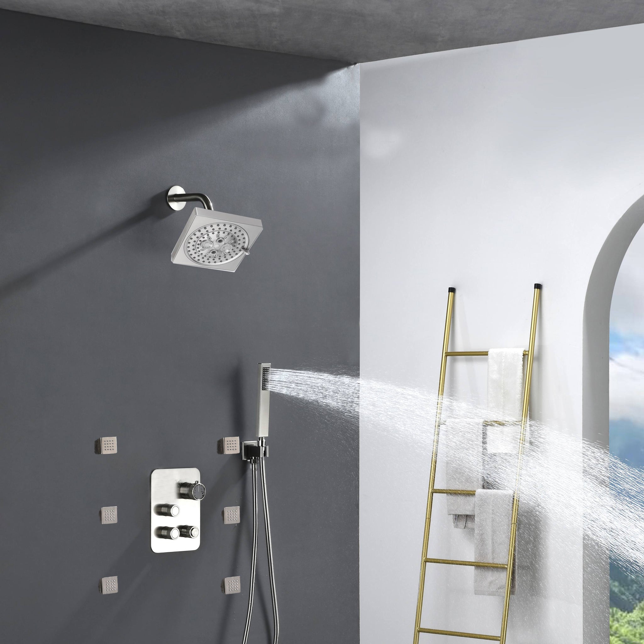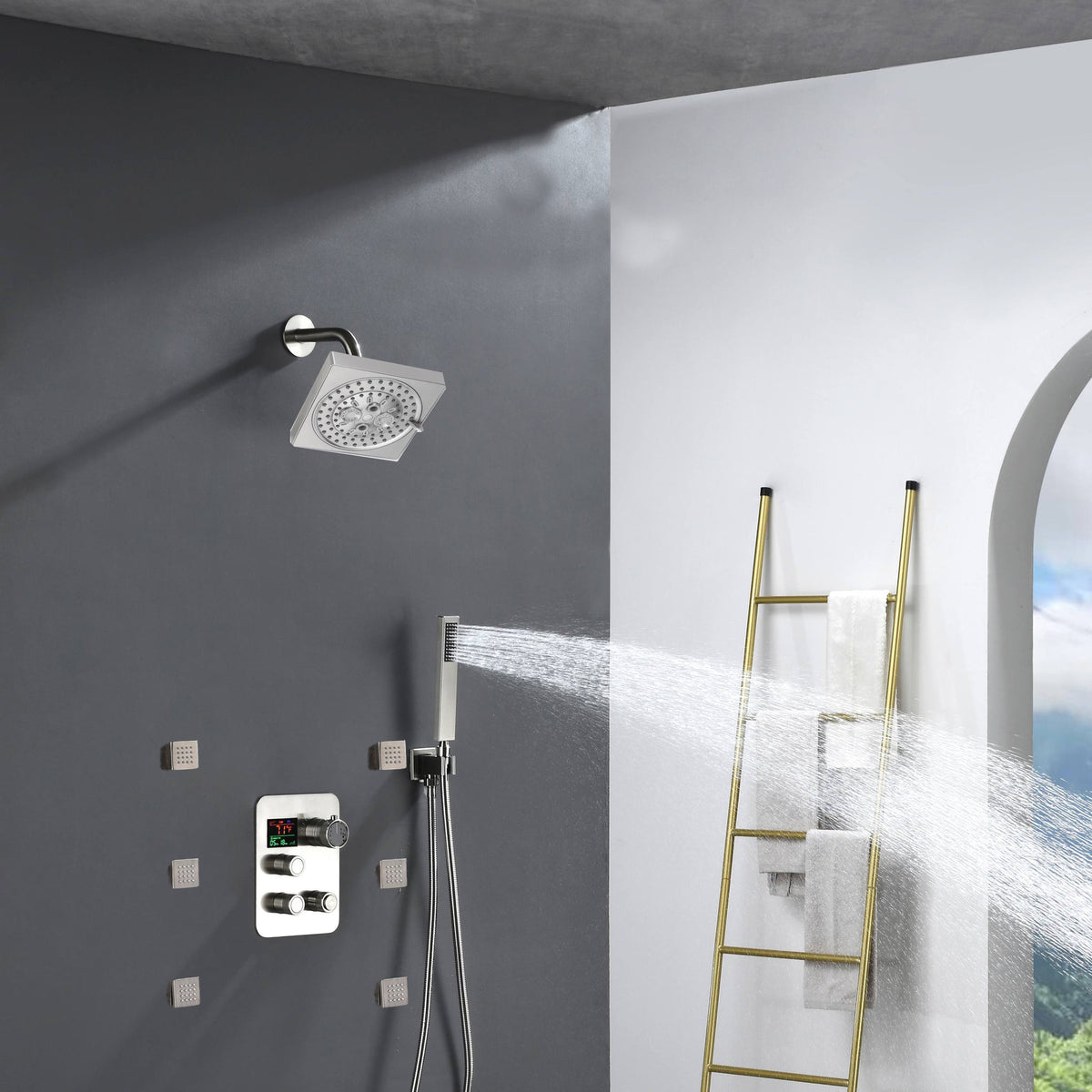 6" Regular Shower Head - 3-Way Digital Thermostatic System with 6 jets