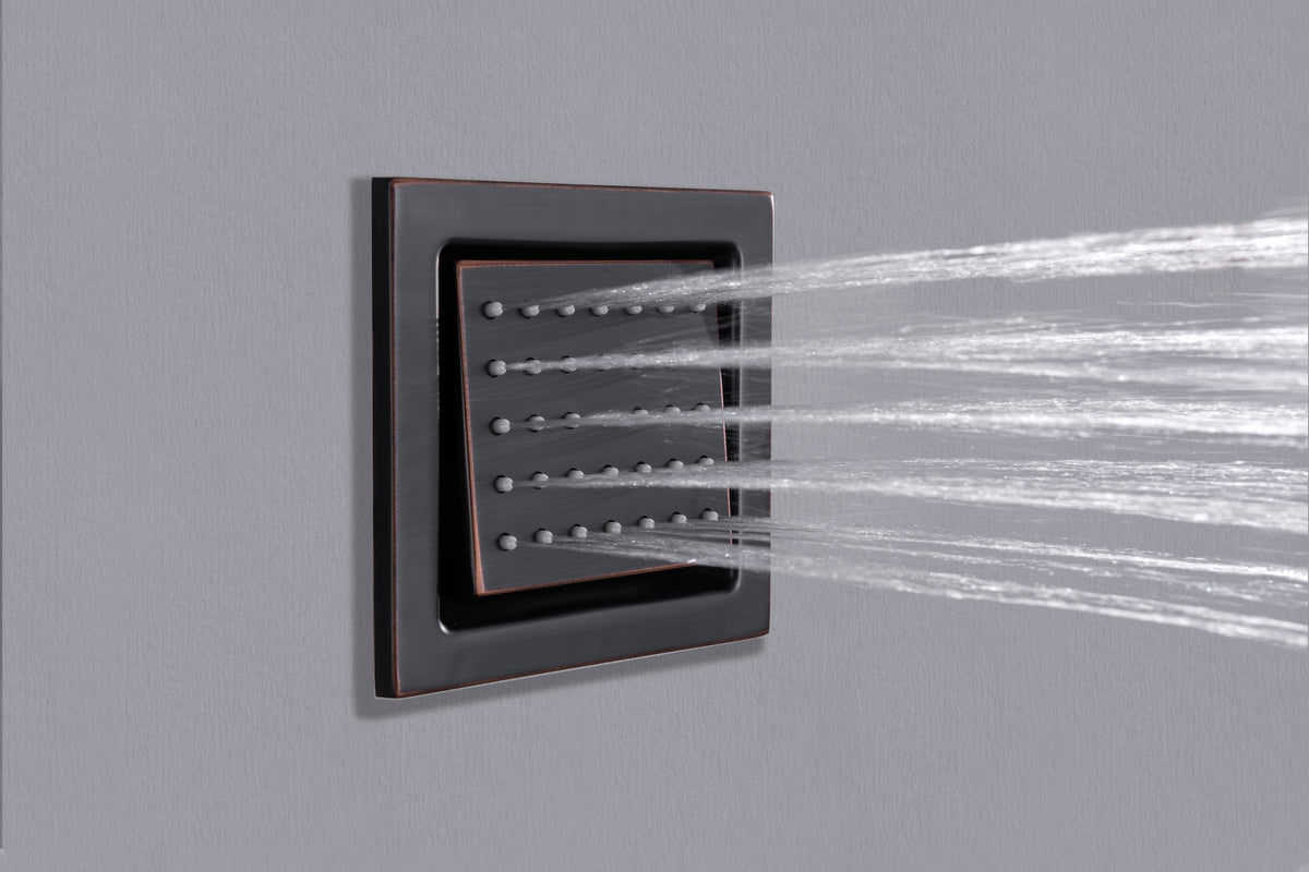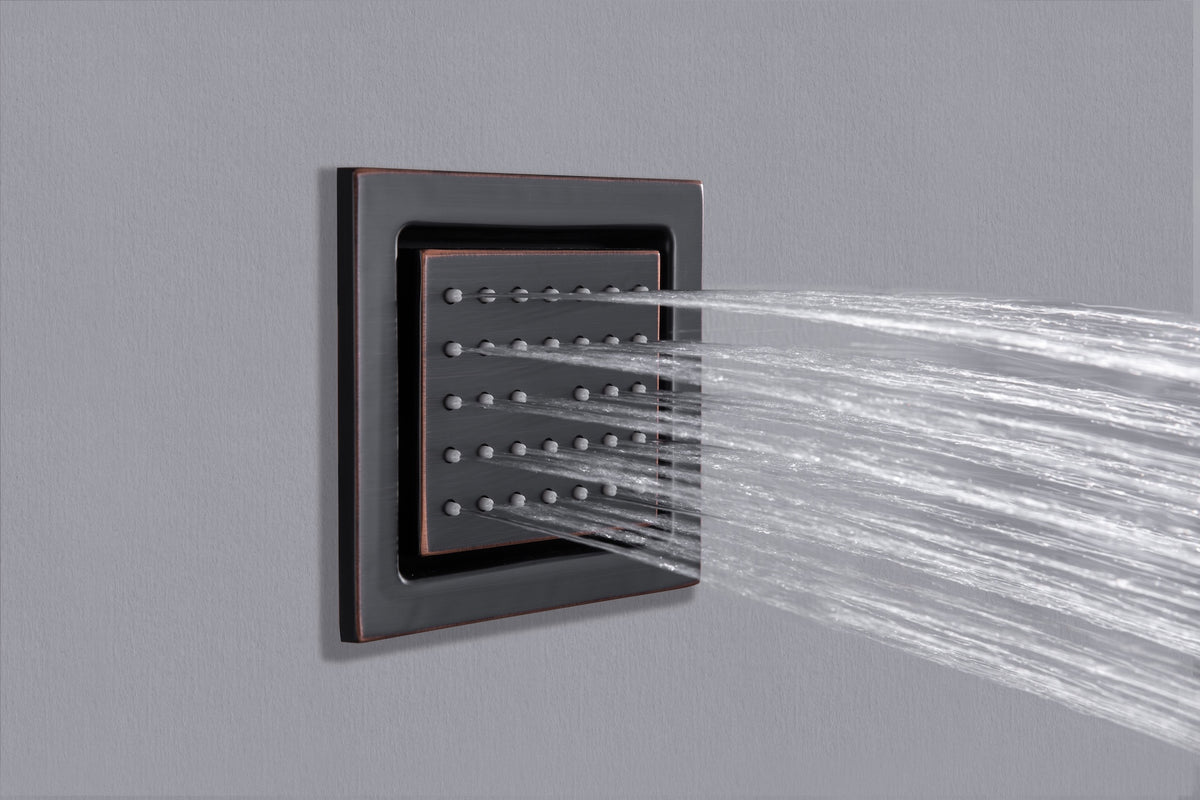 Upgrade your shower to a new level of luxury and functionality with our Oil Rubbed Bronze 6-Way Thermostatic Shower Faucet System. Enjoy the perfect balance of style, comfort, and innovation for a truly indulgent showering experience.