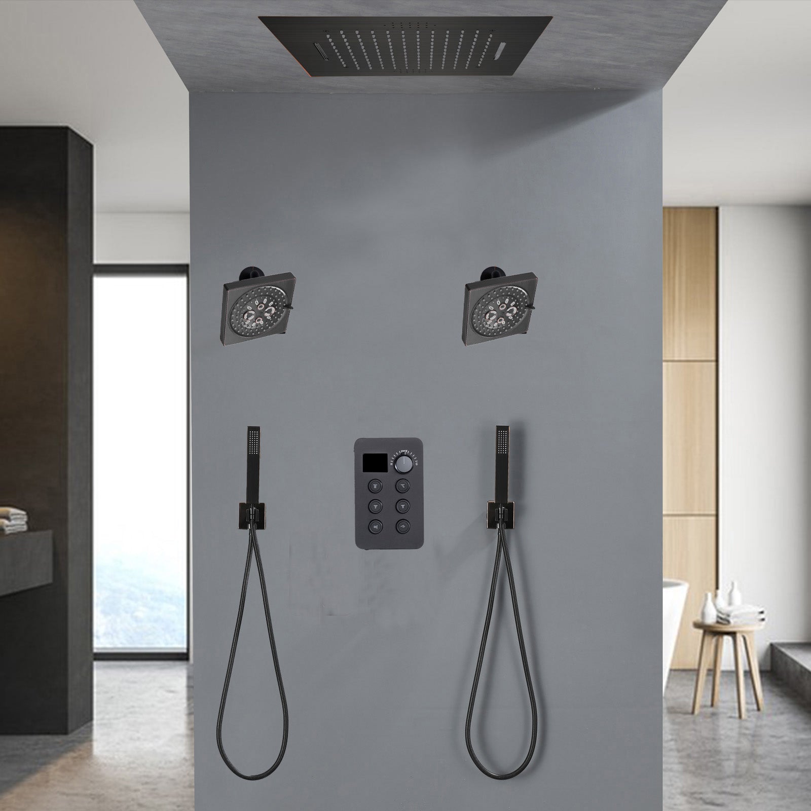 Shower Head: The 20-inch rainfall waterfall shower head, also in ORB color, delivers a wide and soothing rainfall-like experience, enveloping you in pure relaxation. Bluetooth Music and 64 LED light work by electric power.
