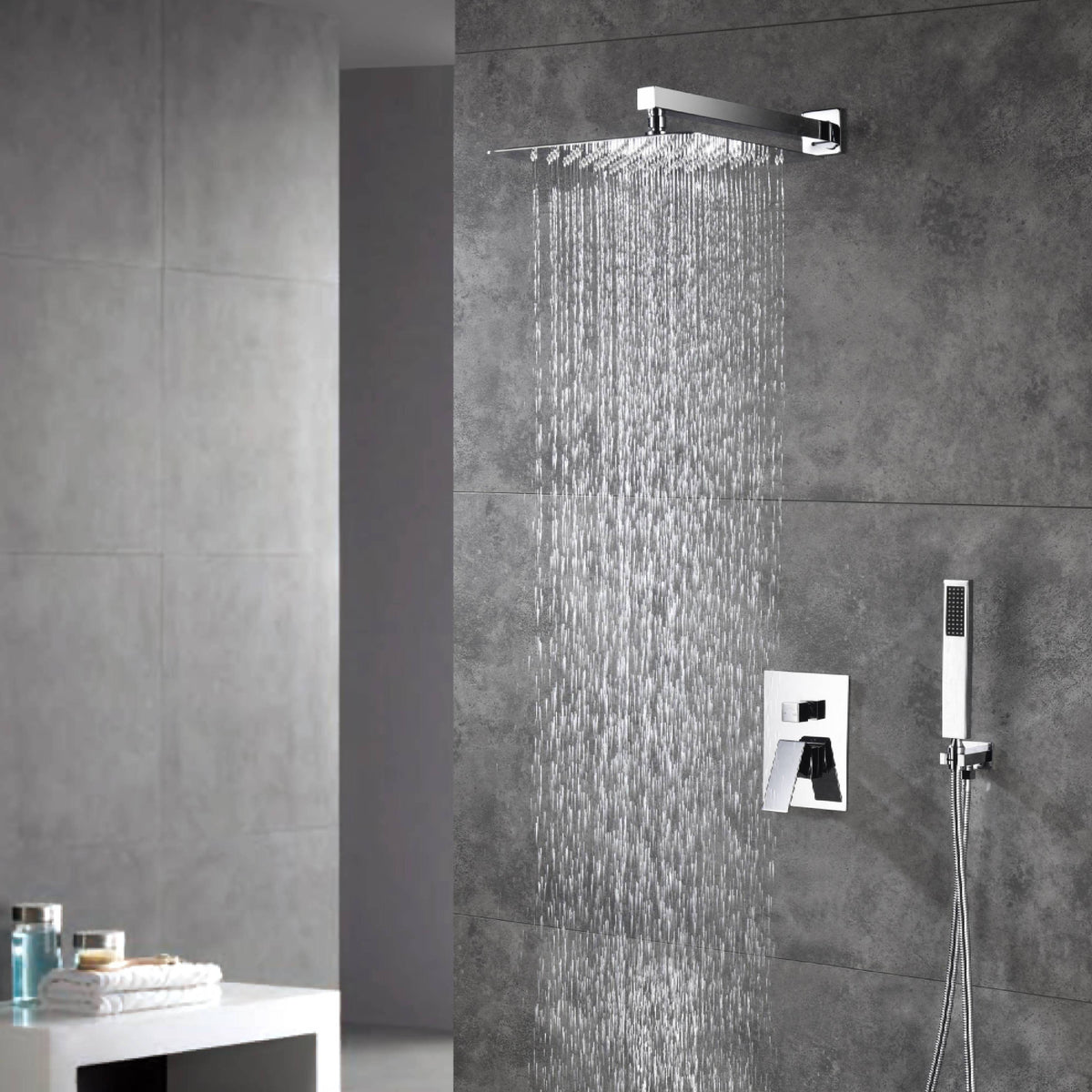 Experience the ultimate shower experience with our Ceiling-Mounted Chrome Shower System.