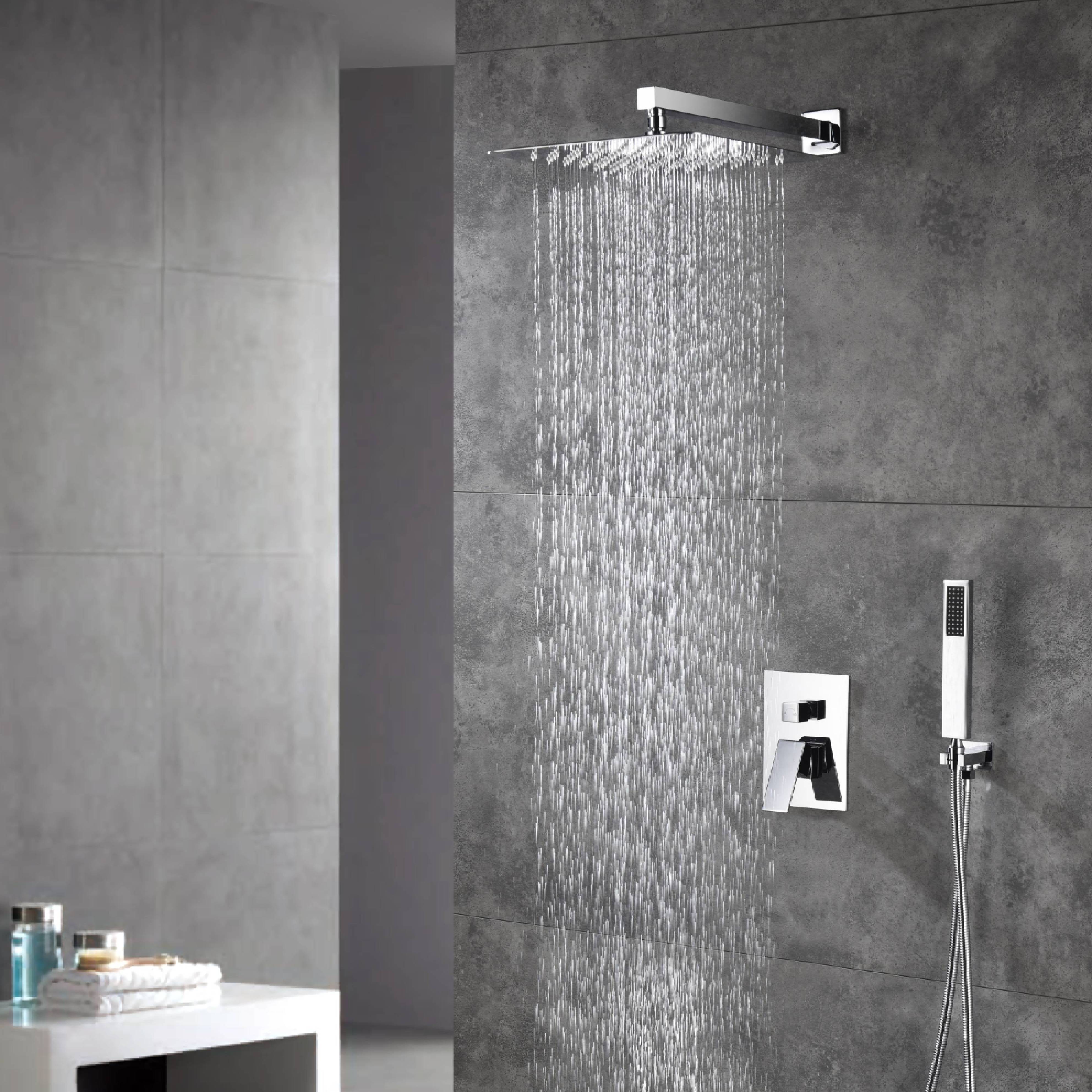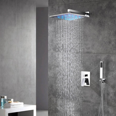 Wall-Mounted Chrome Shower System with Optional LED Light - Available in 12'' or 16'' Sizes, 2-Way Functionality