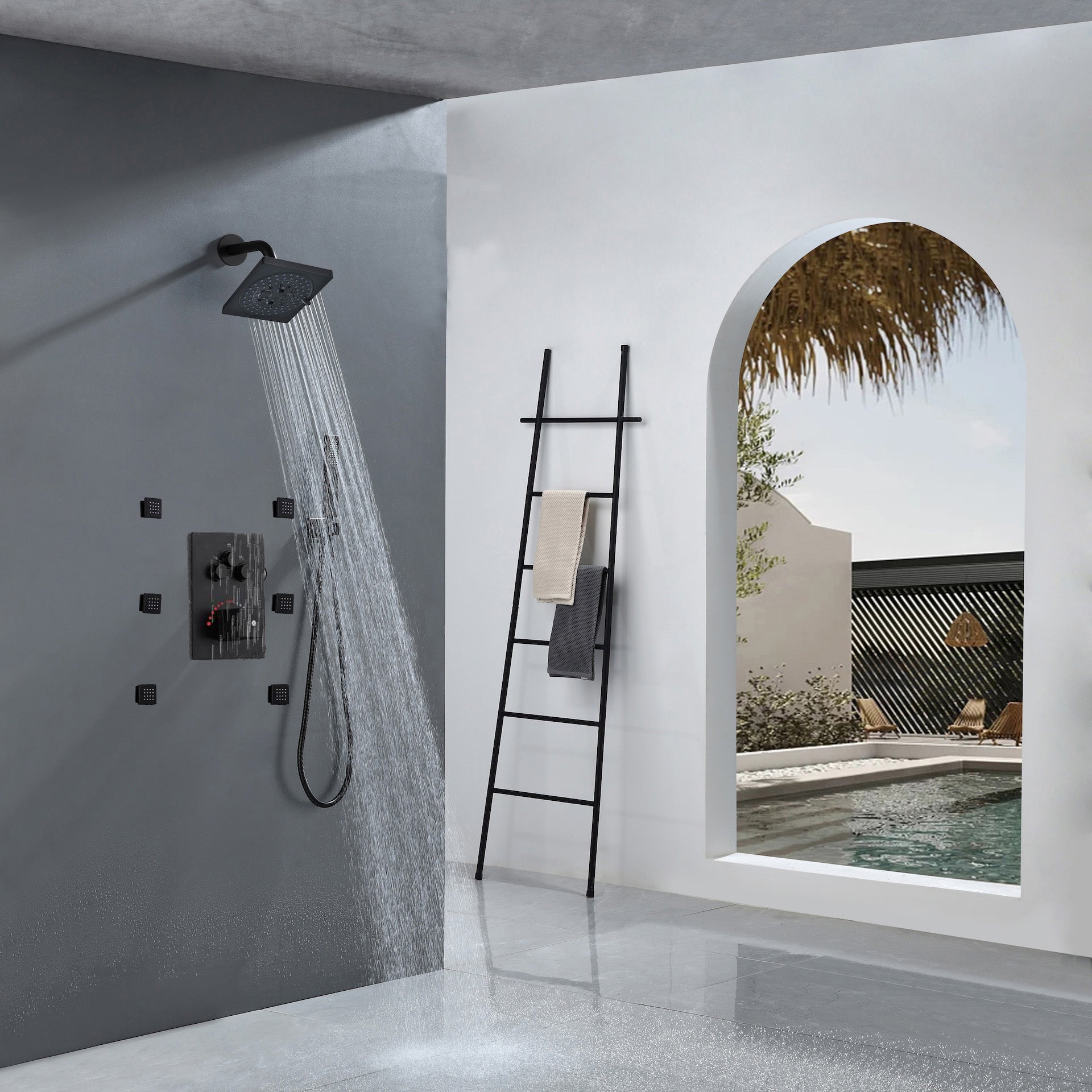 3-Way Matte Black Wall-Mounted Thermostatic Shower System with 12'' or 16'' Rain Head or 6 inch regular headOptional LED Light