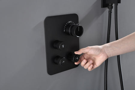 Introducing our multi-functional Matte Black Shower System, integrating style and functionality for an ultimate bathing experience.