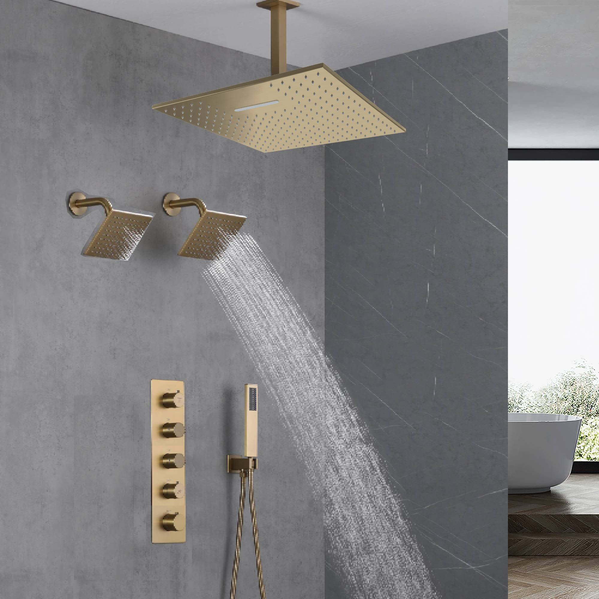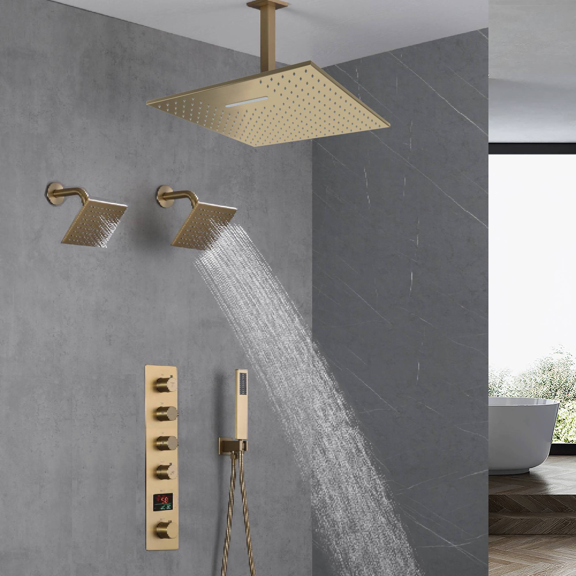 Brushed Gold Ceiling Mount Shower System with 4-Way Thermostatic Faucet