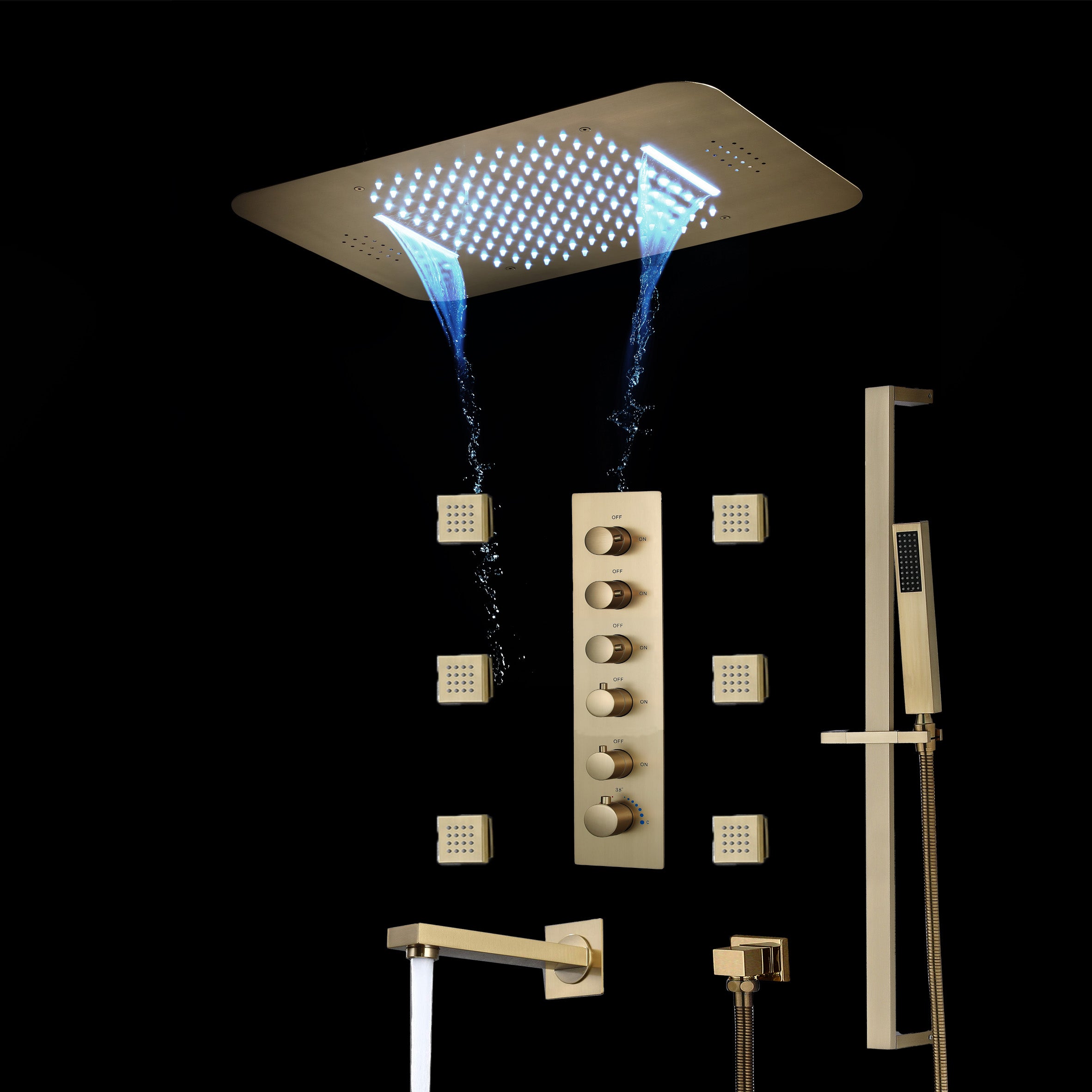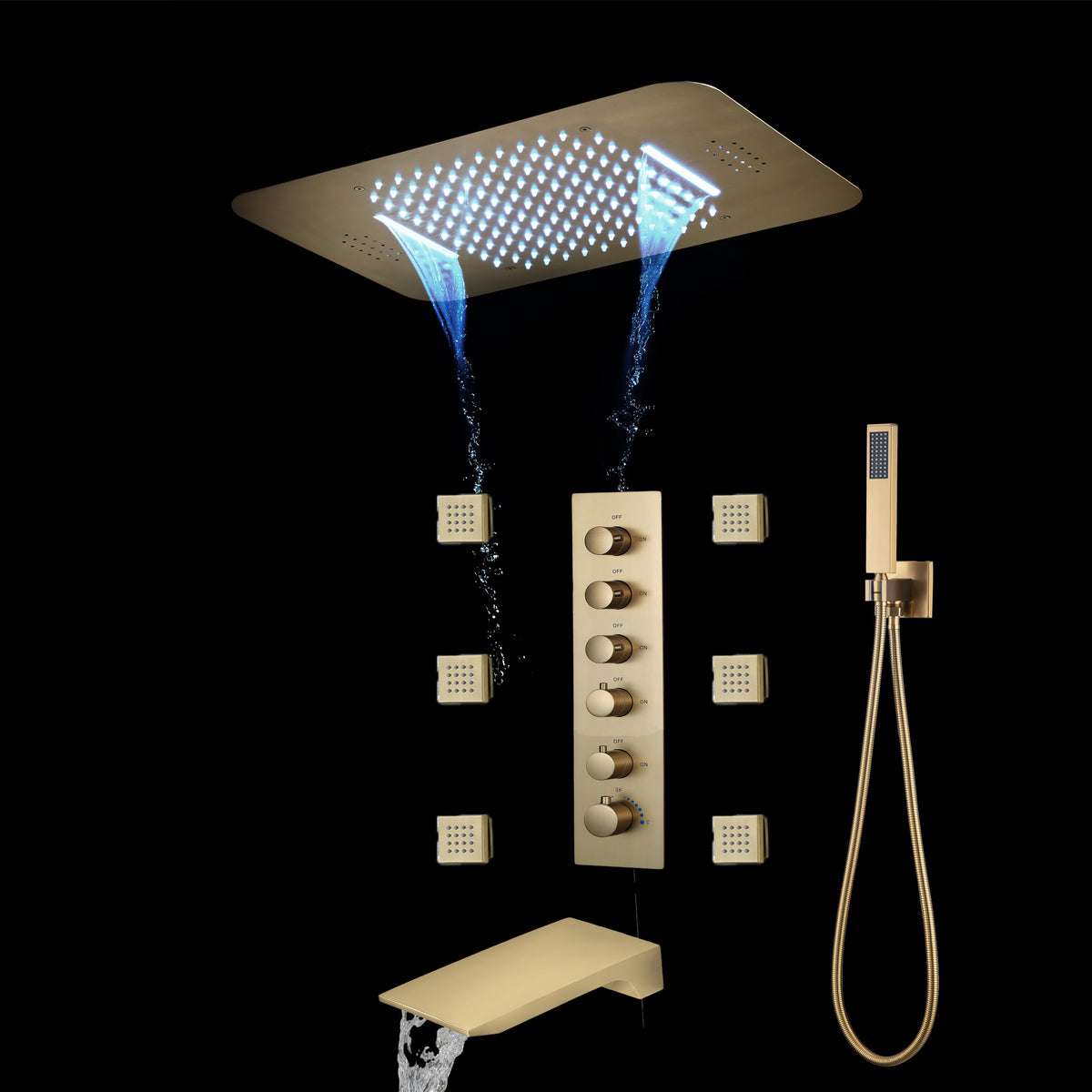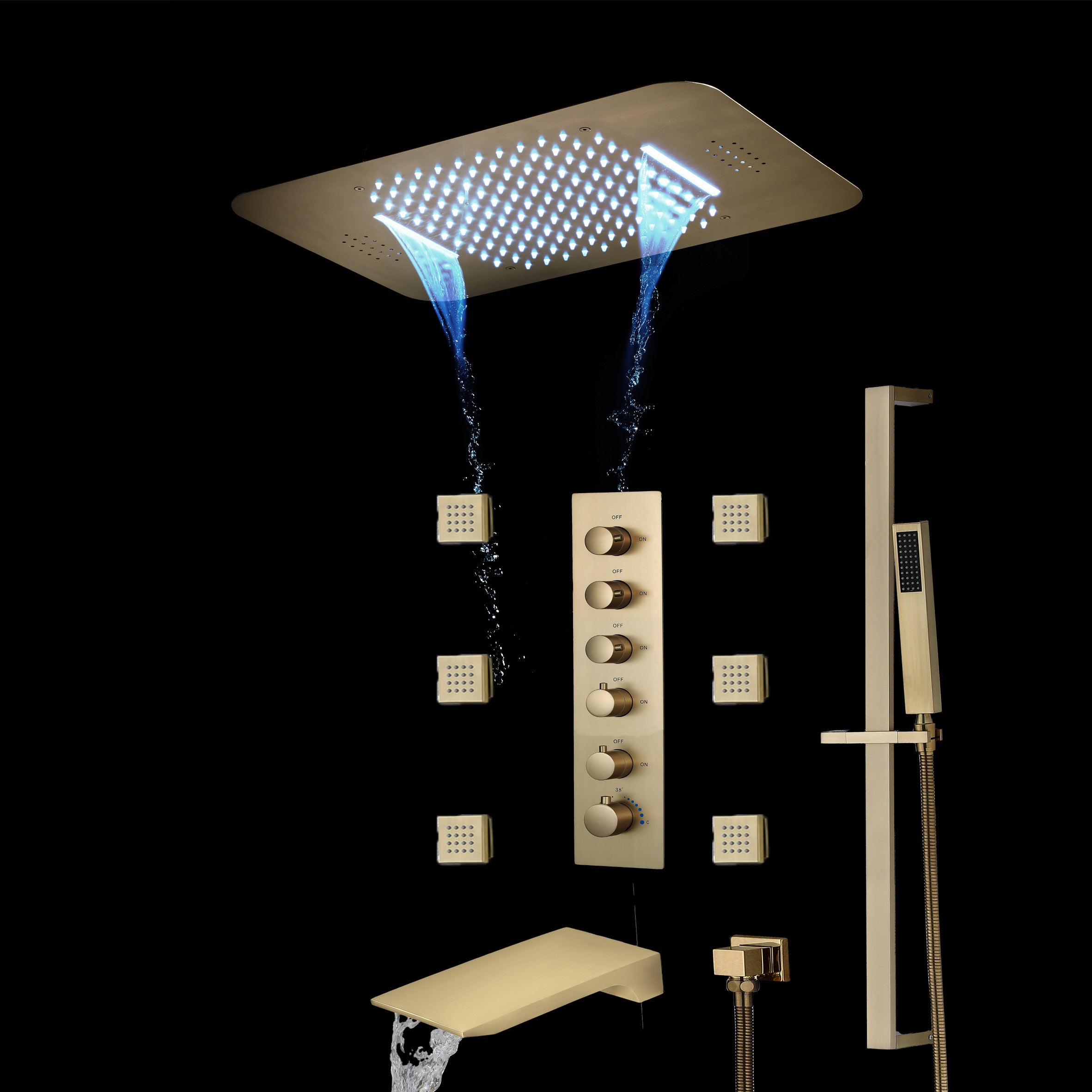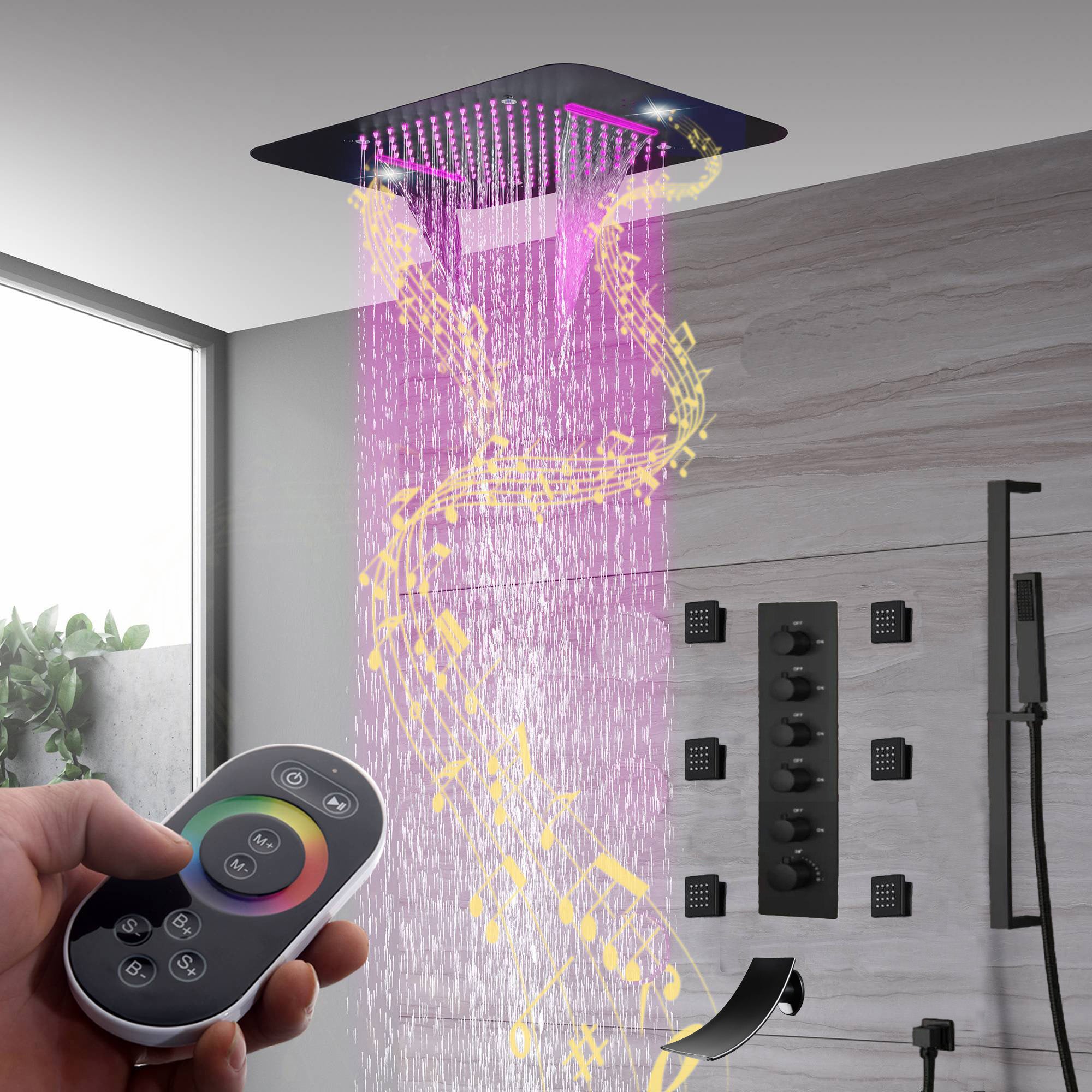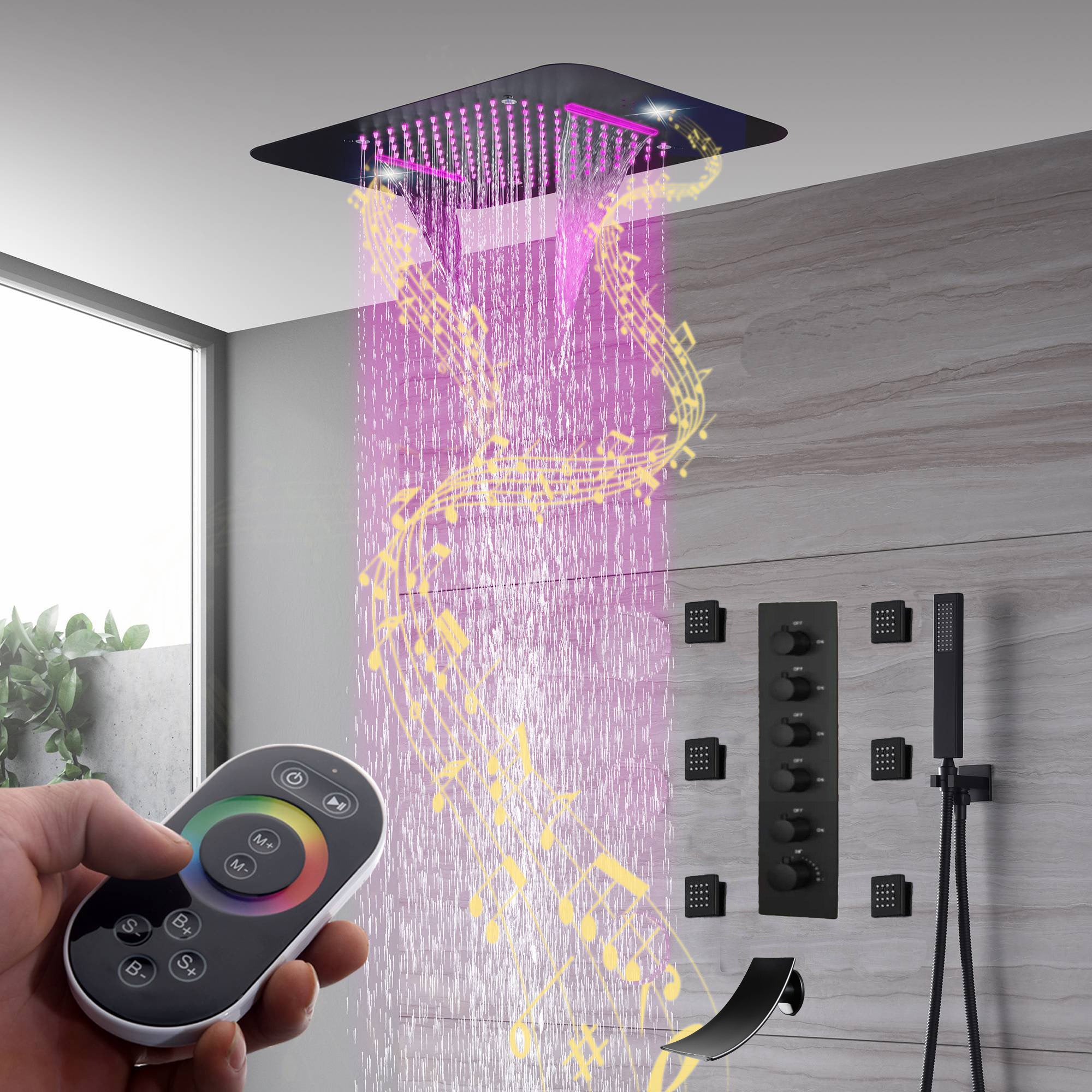 Brushed Gold Or Brushed Nickel Or Matte Black Or Chrome 23x15" LED Music Shower Head with 5-Way Thermostatic Faucet With Tub Spout