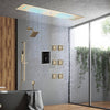 LED Waterfall, Rainfall, and Water Column Shower Head: The flush-mounted 35.4" x 11.8" shower head features waterfall, rainfall, and water column functions, 64 LED lights, and Bluetooth music. Control the LED lights via a touch panel and manage the music from your cell phone—even while showering.