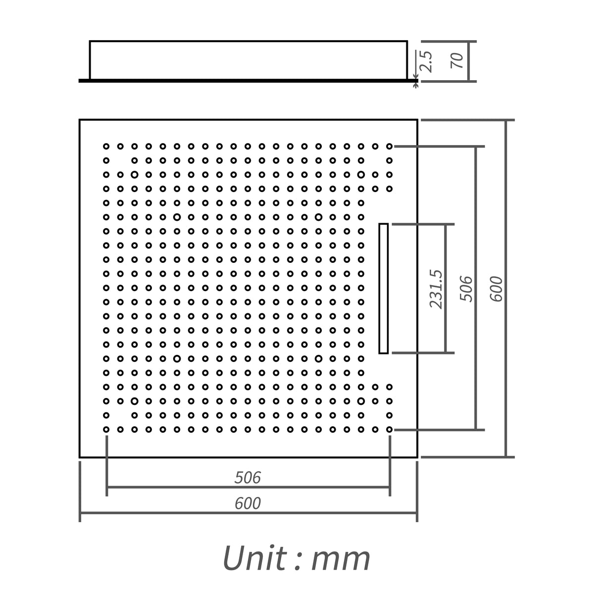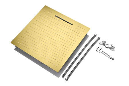 The 20-inch flush mount shower head with 64 LED lights is designed for easy and simple installation on the ceiling, providing a flush mount appearance, and the LED lights are powered electronically. We also offer a 24-inch flush-mount rainfall and waterfall shower head with no music and no lights.