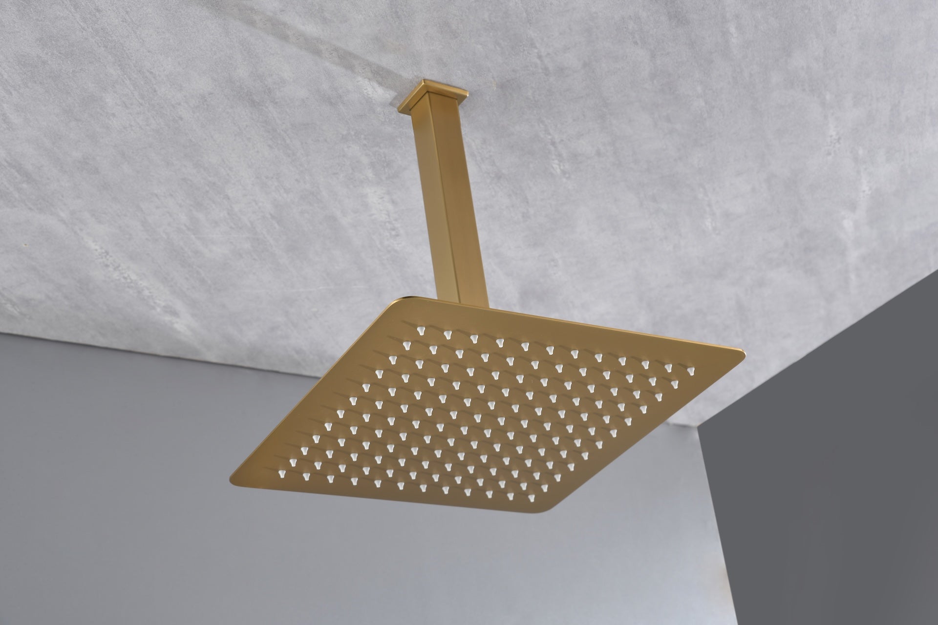 Brushed Gold Ceiling-Mounted 3 Way Shower Faucet with or without Digital Display, Optional 16'' or 12'' Rain Head with Dual Handle Showers
