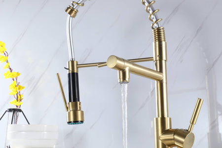 Brushed Gold High Arc brass Kitchen Sink Faucet Pull Down Spray with lock ring and deck plate