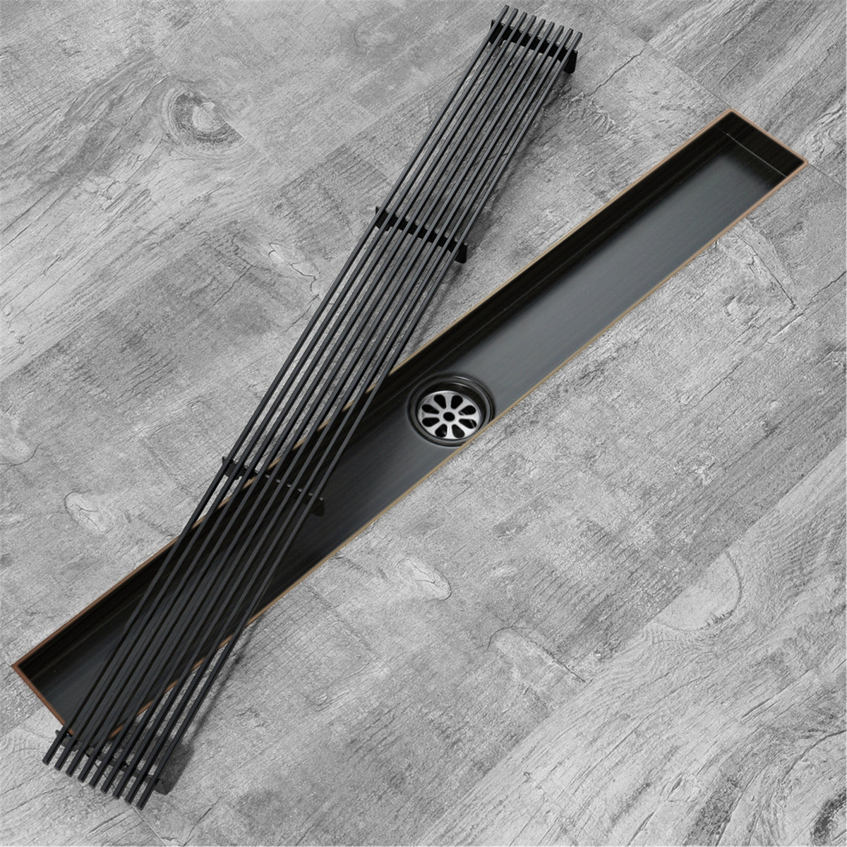 Oil Rubber Bronze Linear shower drain stainless steel material 24 inch with tile insert 2-in-1 cover with hair strainer and adjustment feet