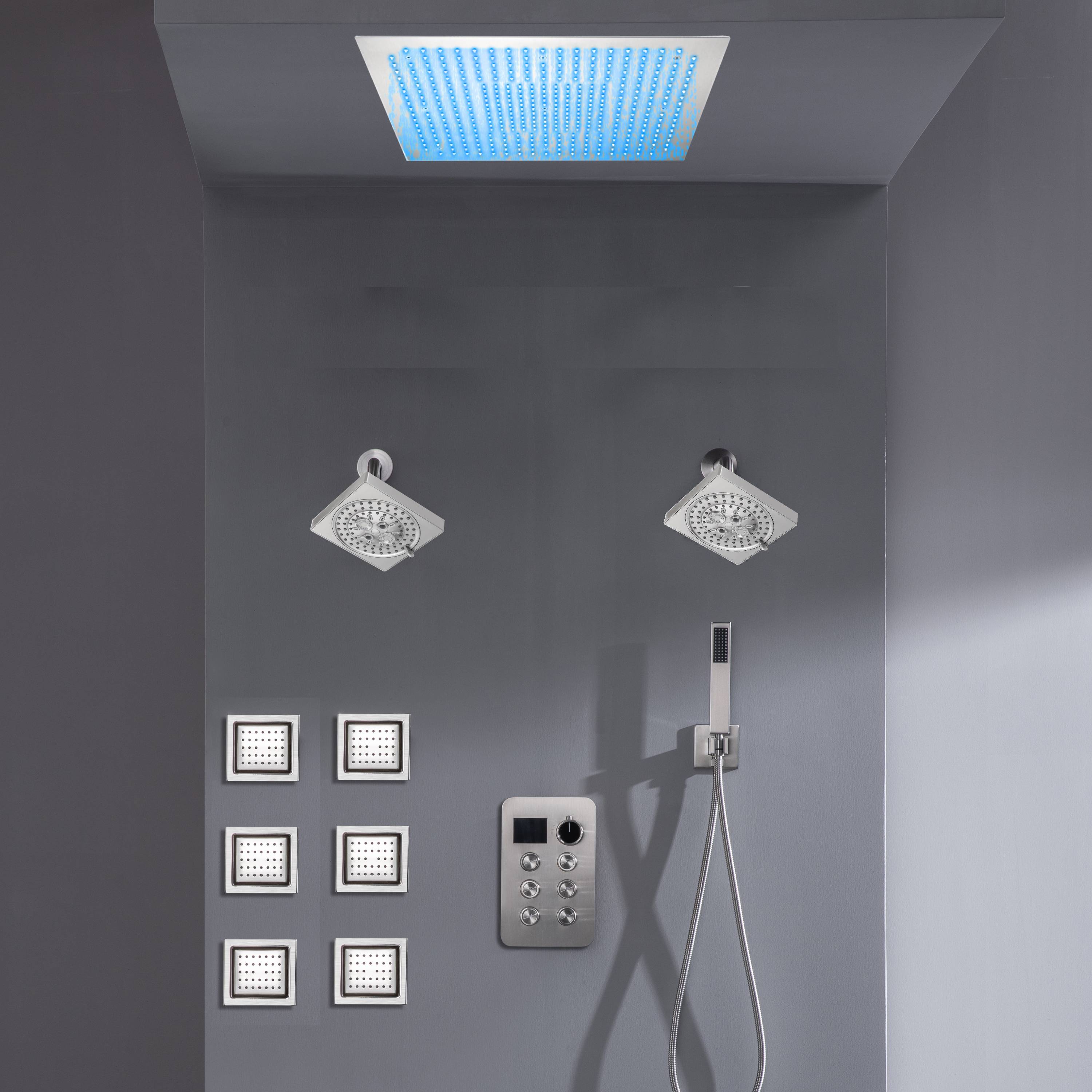 Flush Mount Shower Head with 6-Way Digital Faucet, Dual 6" Regular Head, 6 Body Jets