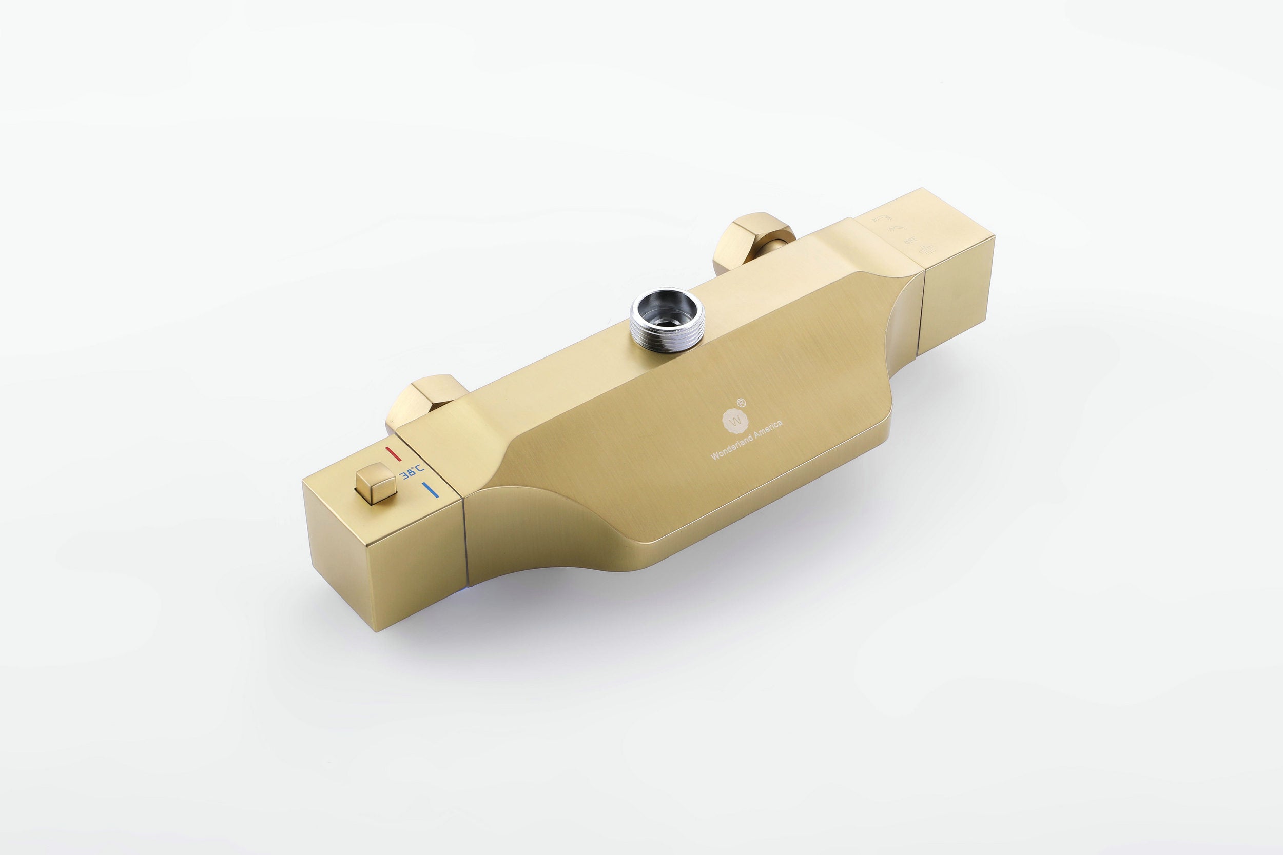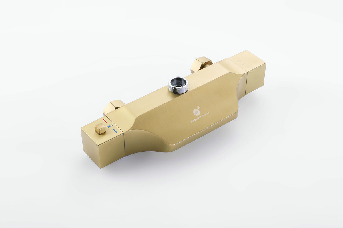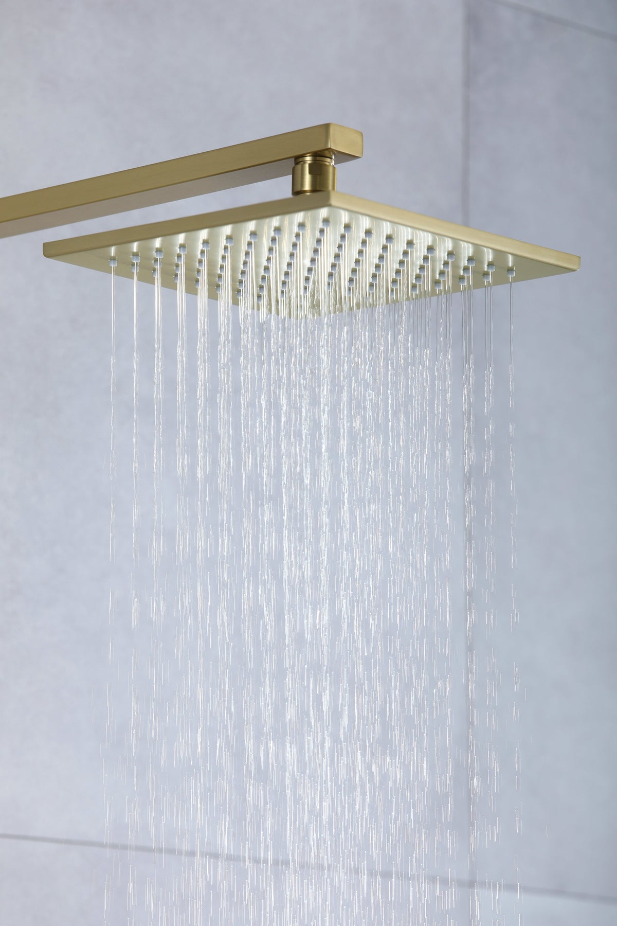 In a non-concealed style, this shower set is a statement piece that is not just functional but also adds to the aesthetic appeal of your bathroom. Upgrade your shower experience with our Brushed Gold Wall-Mounted Thermostatic Rain Shower Set.