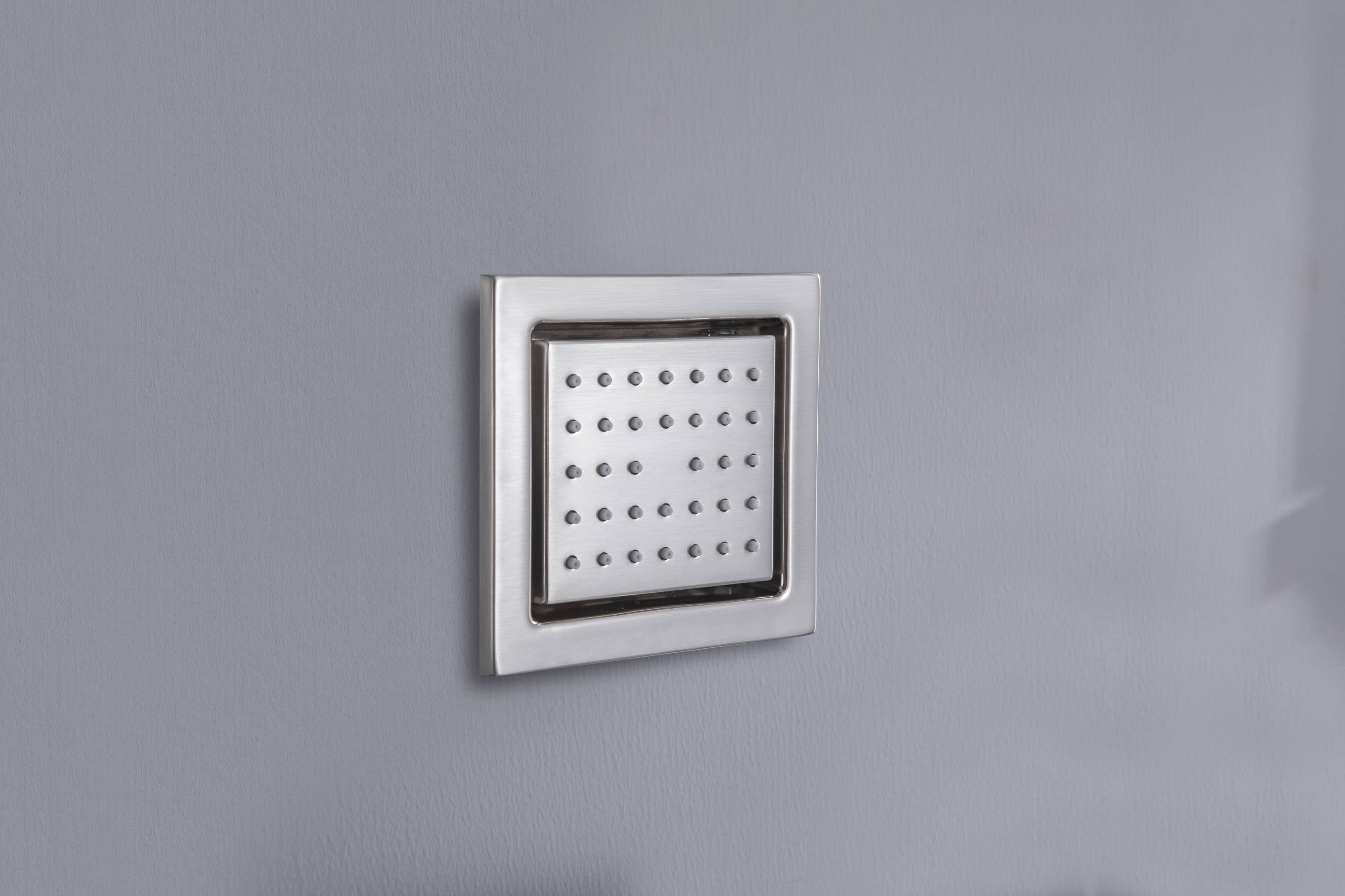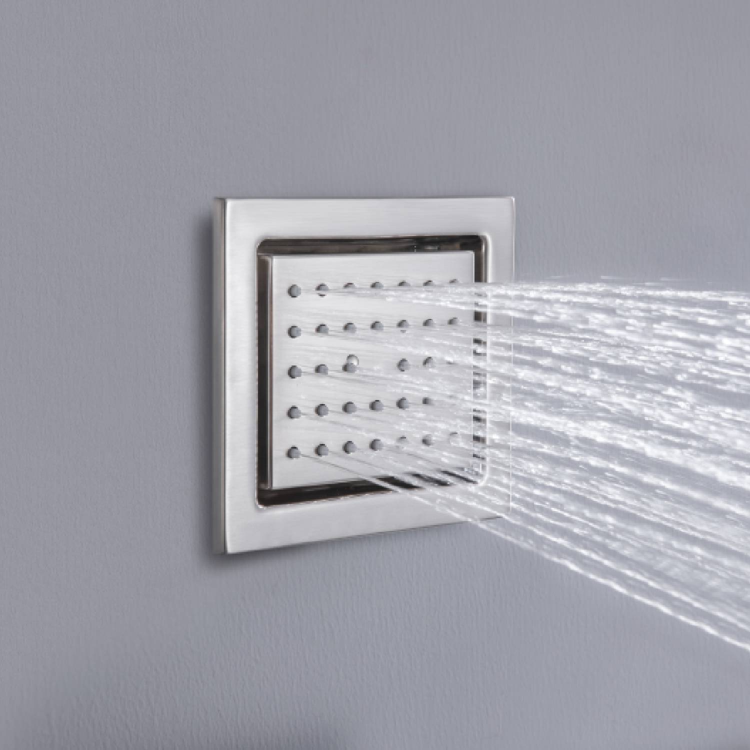 6 Shower Body Jets: These brass body jets offer a massage feature with a 360-degree adjustable swivel angle for a personalized experience. Connection: NPT 1/2" nipple Standards.