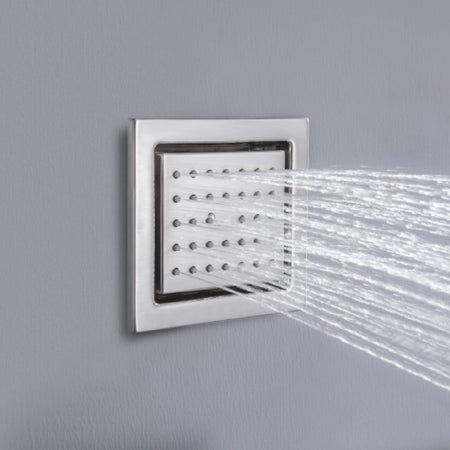 Experience the ultimate in showering luxury with our brushed nickel rain shower system. This comprehensive kit includes a 12" or 16" rain shower head, a 16" shower arm, a handheld shower head, a 24" sliding bar, a 3-way thermostatic mixer valve control, six shower body jets, and a 59" shower hose.