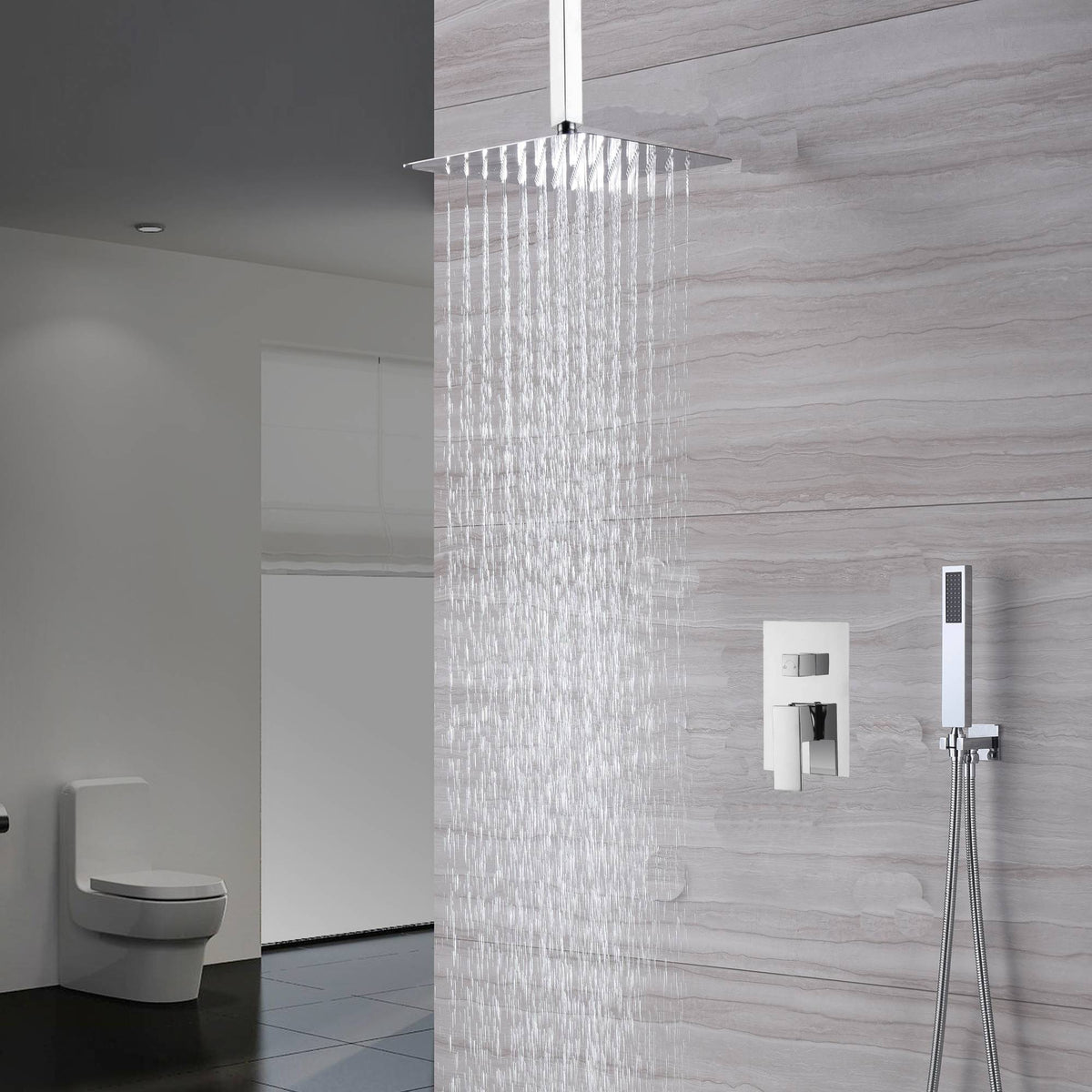 Chrome Ceiling-Mounted Rainfall Shower Head Two-Way Shower Faucet and Handle Sprayer Included