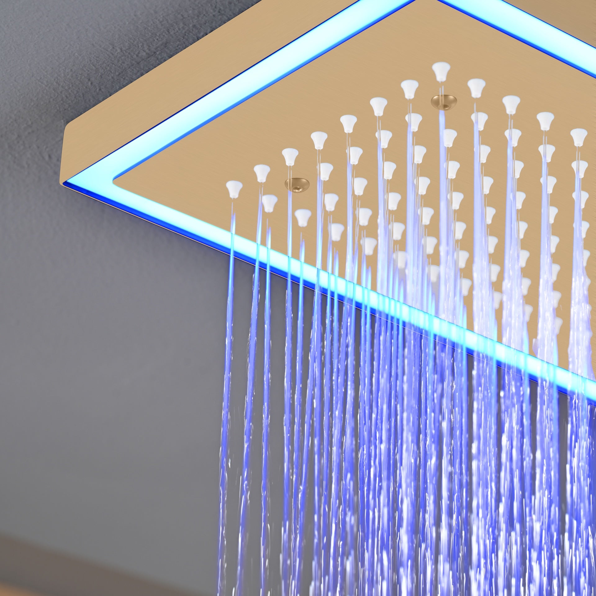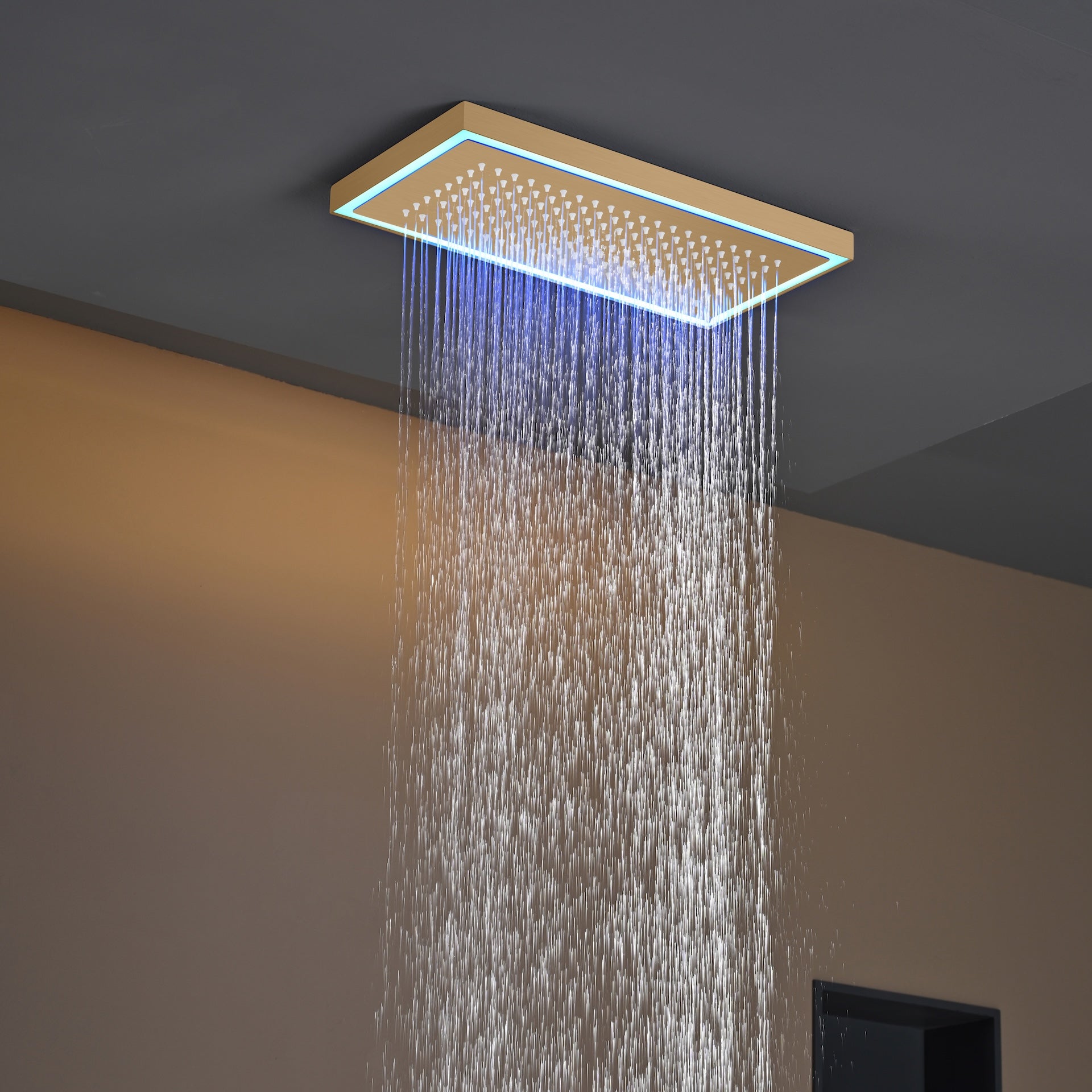 The second shower head is available in 16 x 16ย inch size or 32 x 8 inch , constructed from durable stainless steel, Flush mount ceiling and 64 led light work by 6~12 V electronic power.(ย includes 2 pieces 16X8 inch rainfall shower head)ย