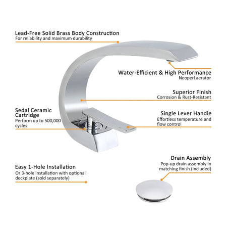Popup Overflow Brass Drain: The included popup overflow brass drain adds convenience and functionality to the faucet. This feature ensures proper water drainage in your sink, preventing overflow and potential water damage.