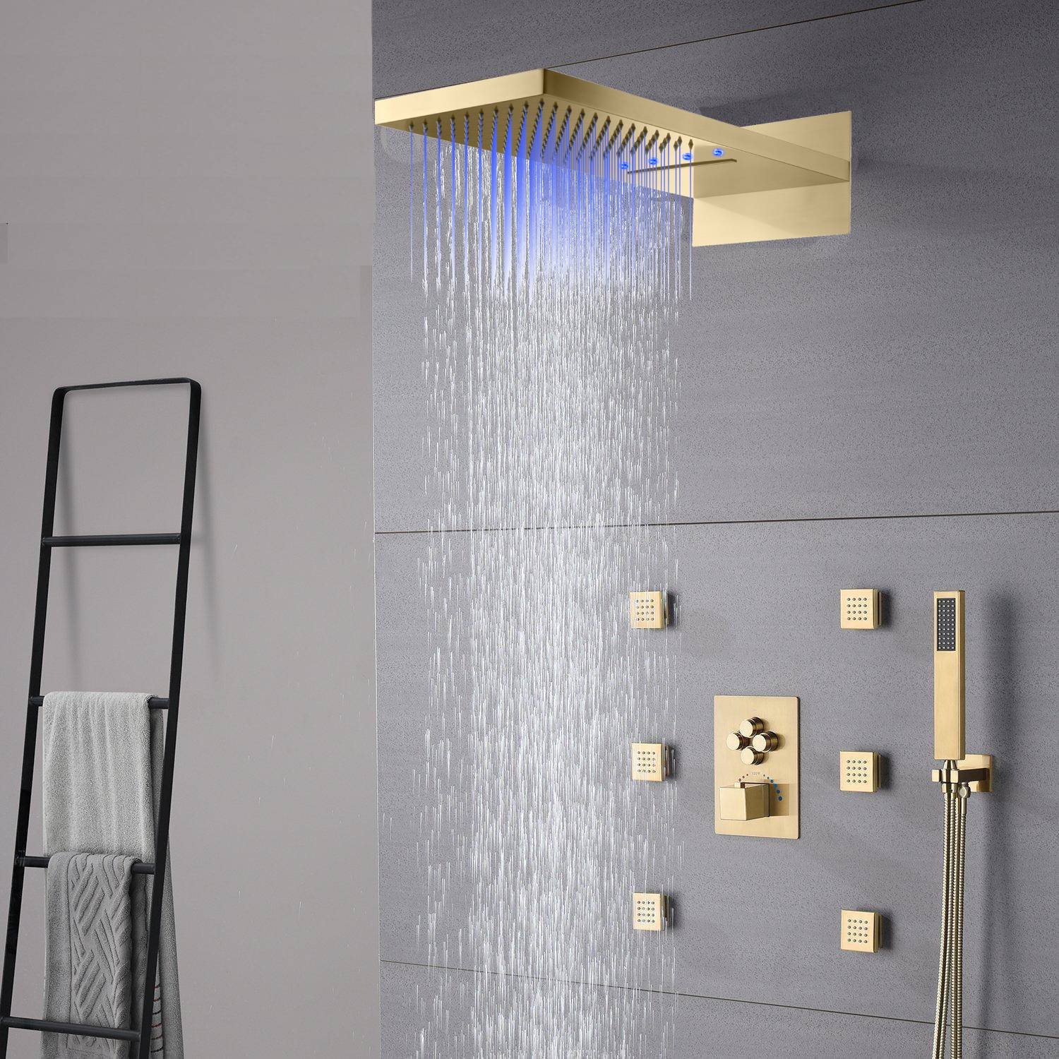 22inch Brushed gold 4 way Thermostatic Shower valve system that each function run all together and separately