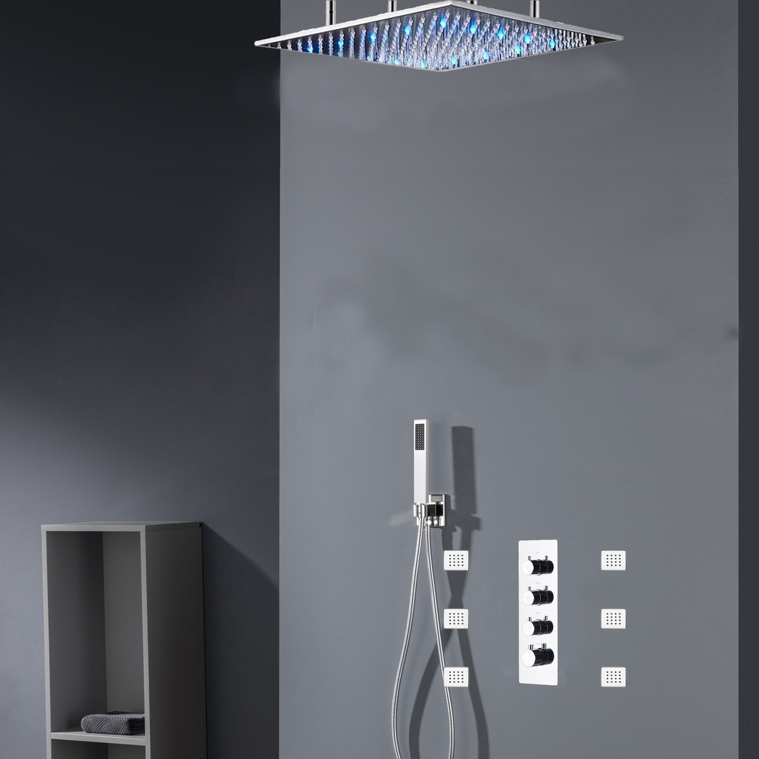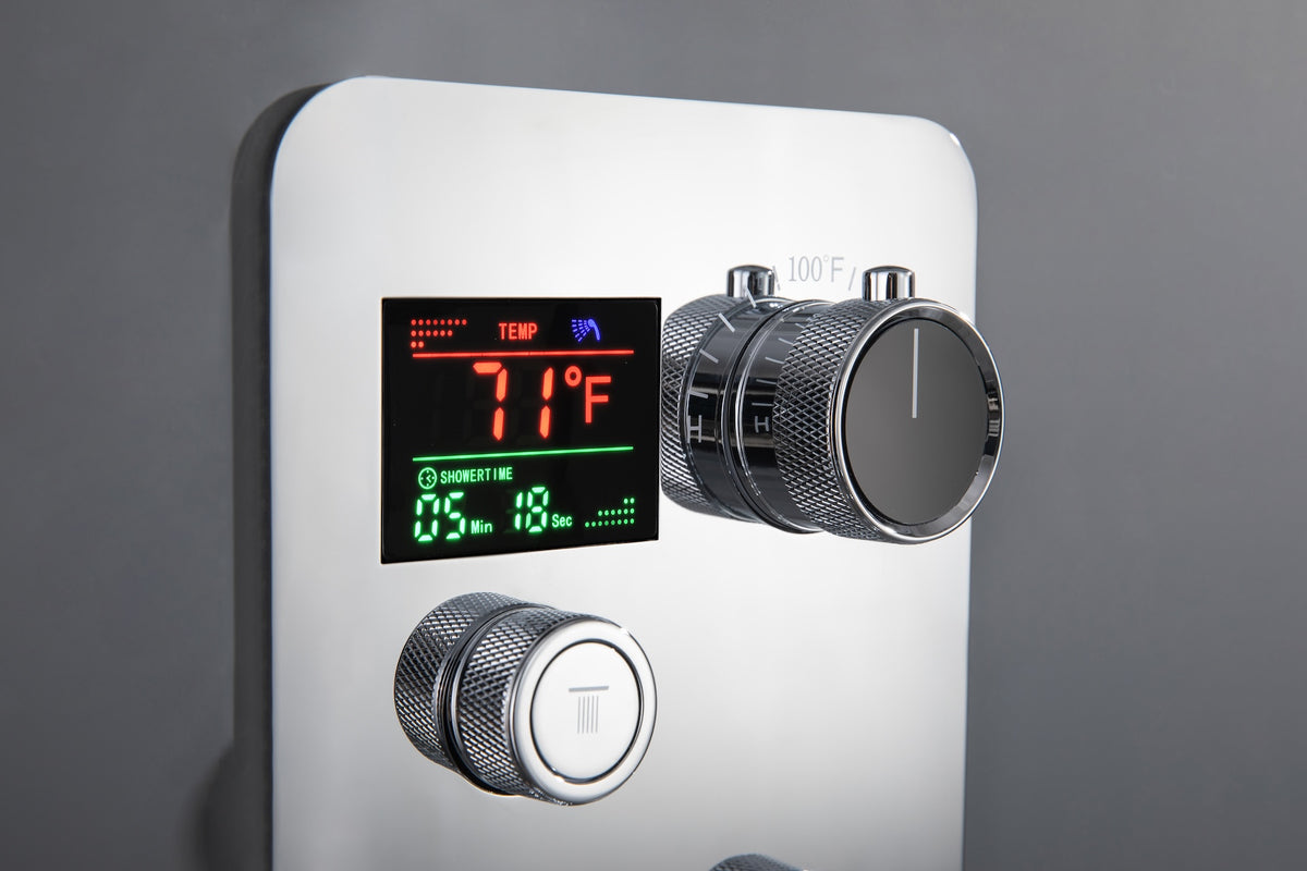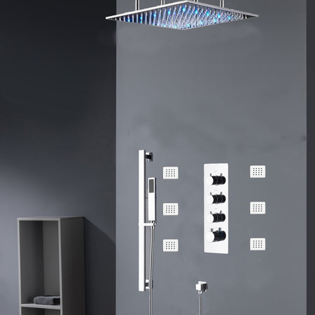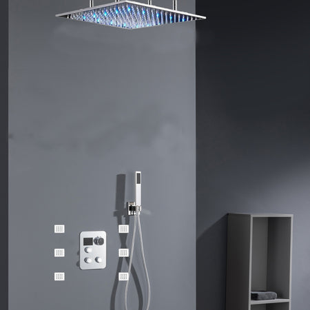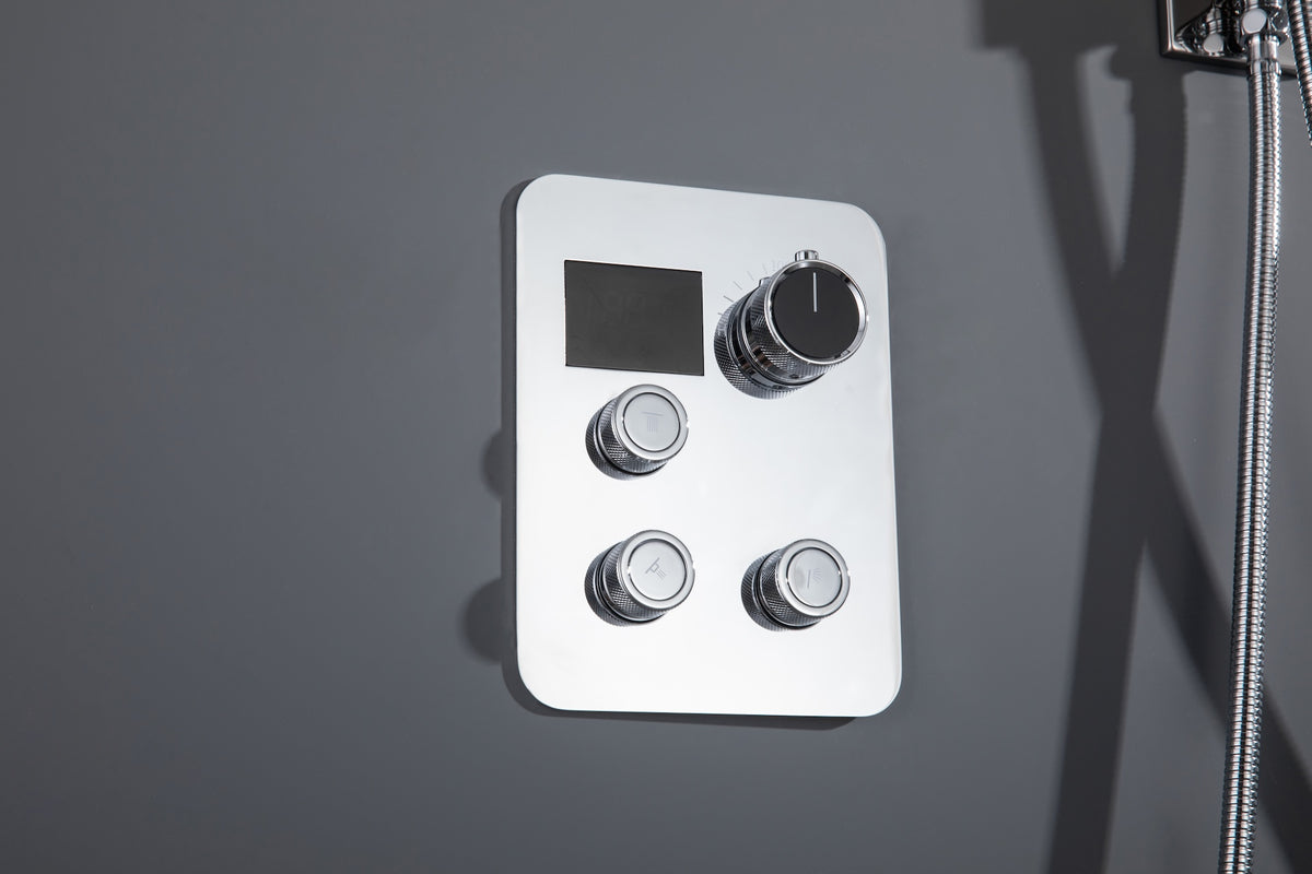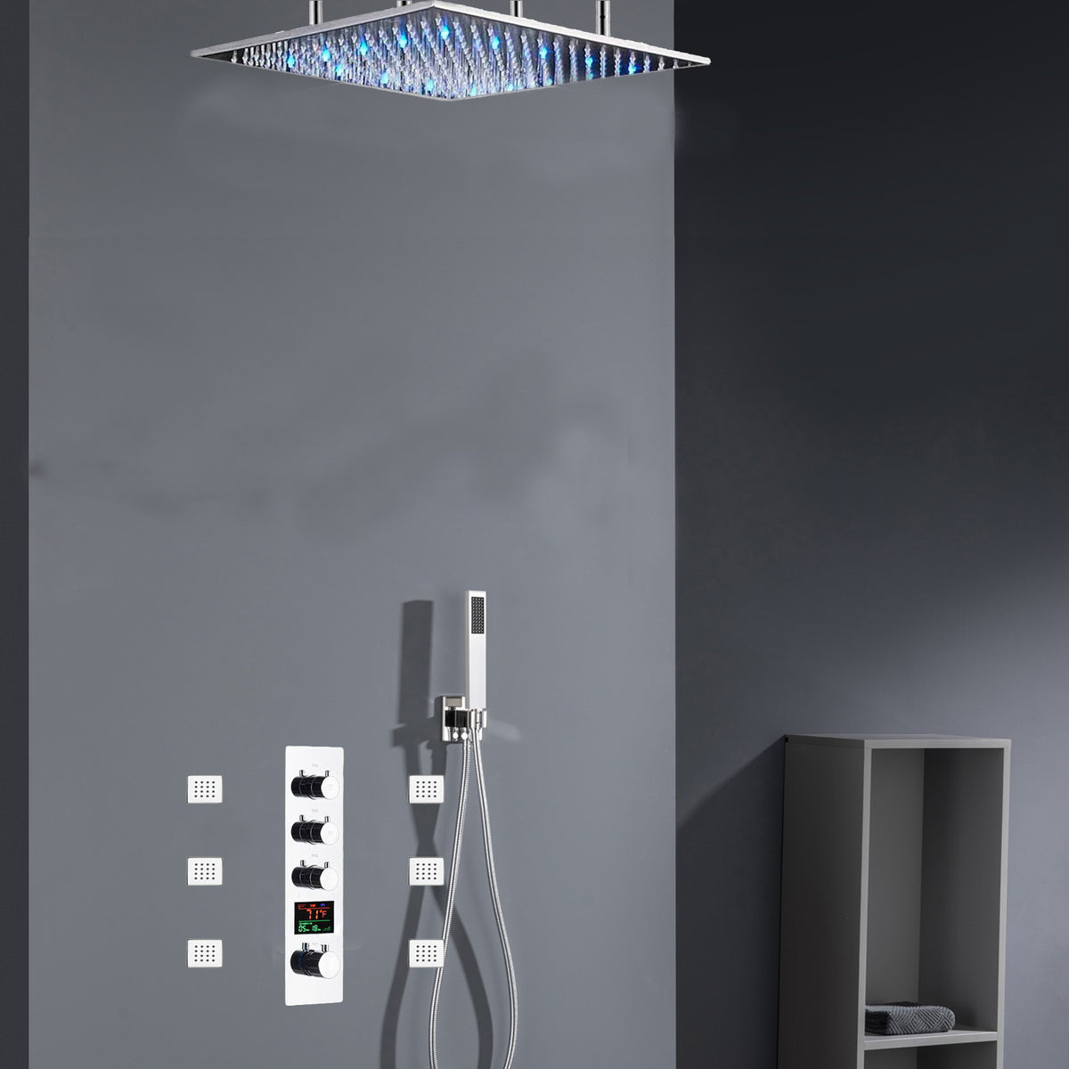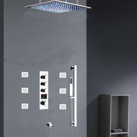 Chrome 20inch Or 24 inch rain head 3 way digital thermostatic shower faucet with 6 body jets and sliding bar
