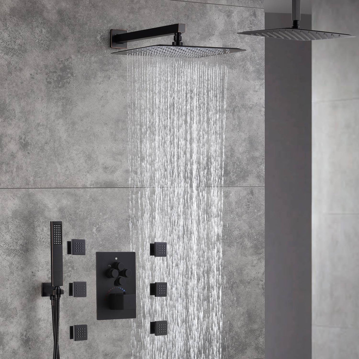 Experience the epitome of shower luxury with our outstanding shower system. Enjoy the invigorating rainfall-like shower, the flexibility of the handheld shower, the soothing body jets, and the precise temperature control provided by the 4-way thermostatic valve. Elevate your shower routine to new levels of comfort, style, and functionality with this remarkable shower system.